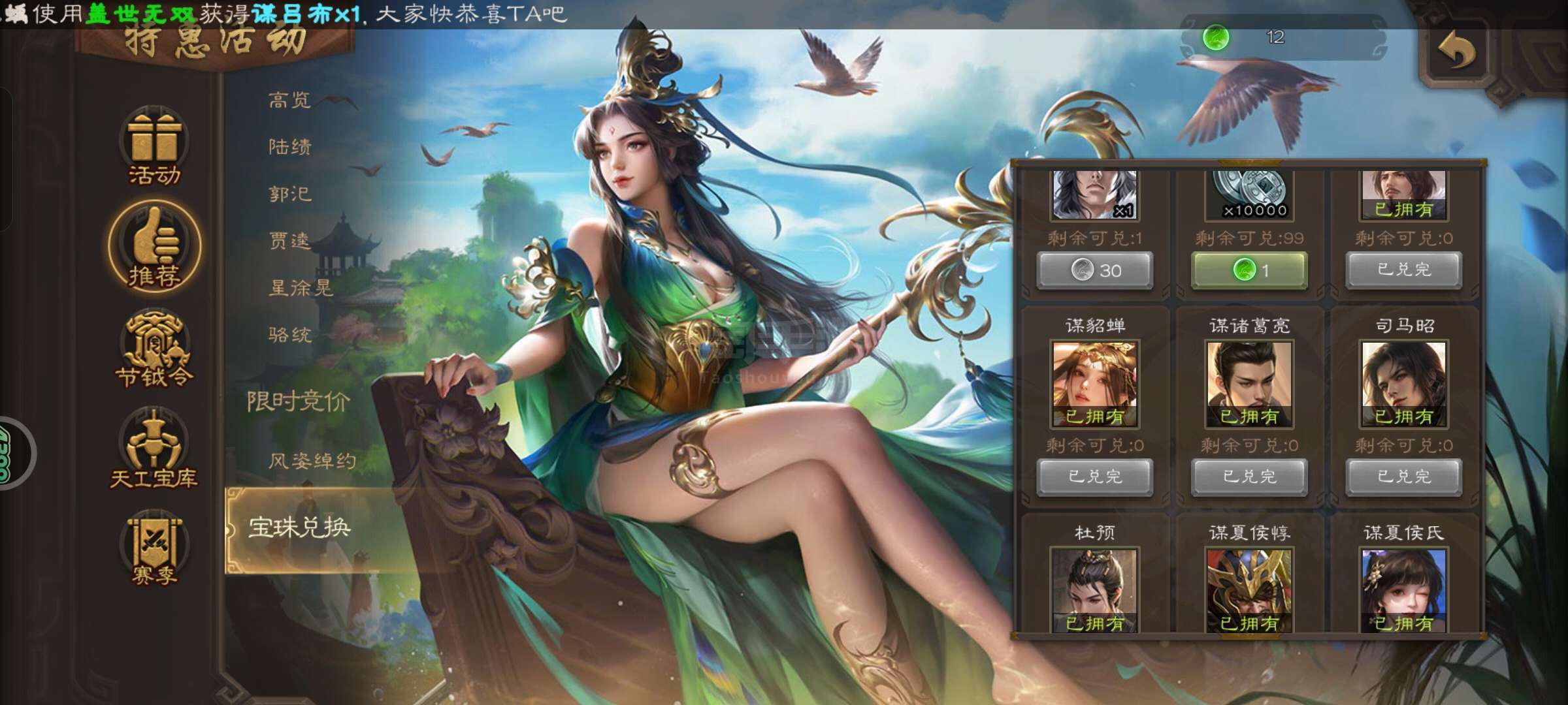 31史诗25动态1w5将魂11w羽毛12宝珠