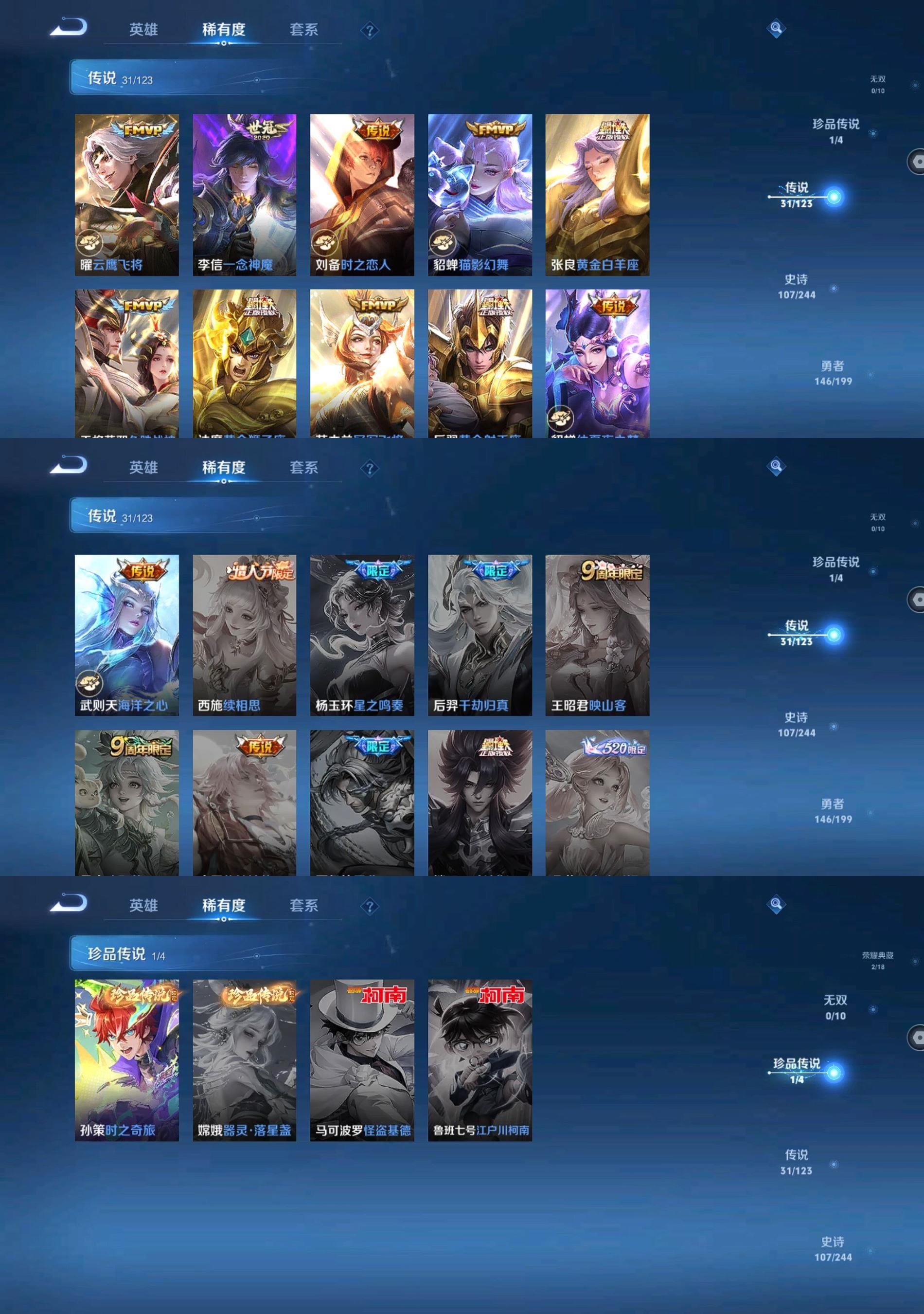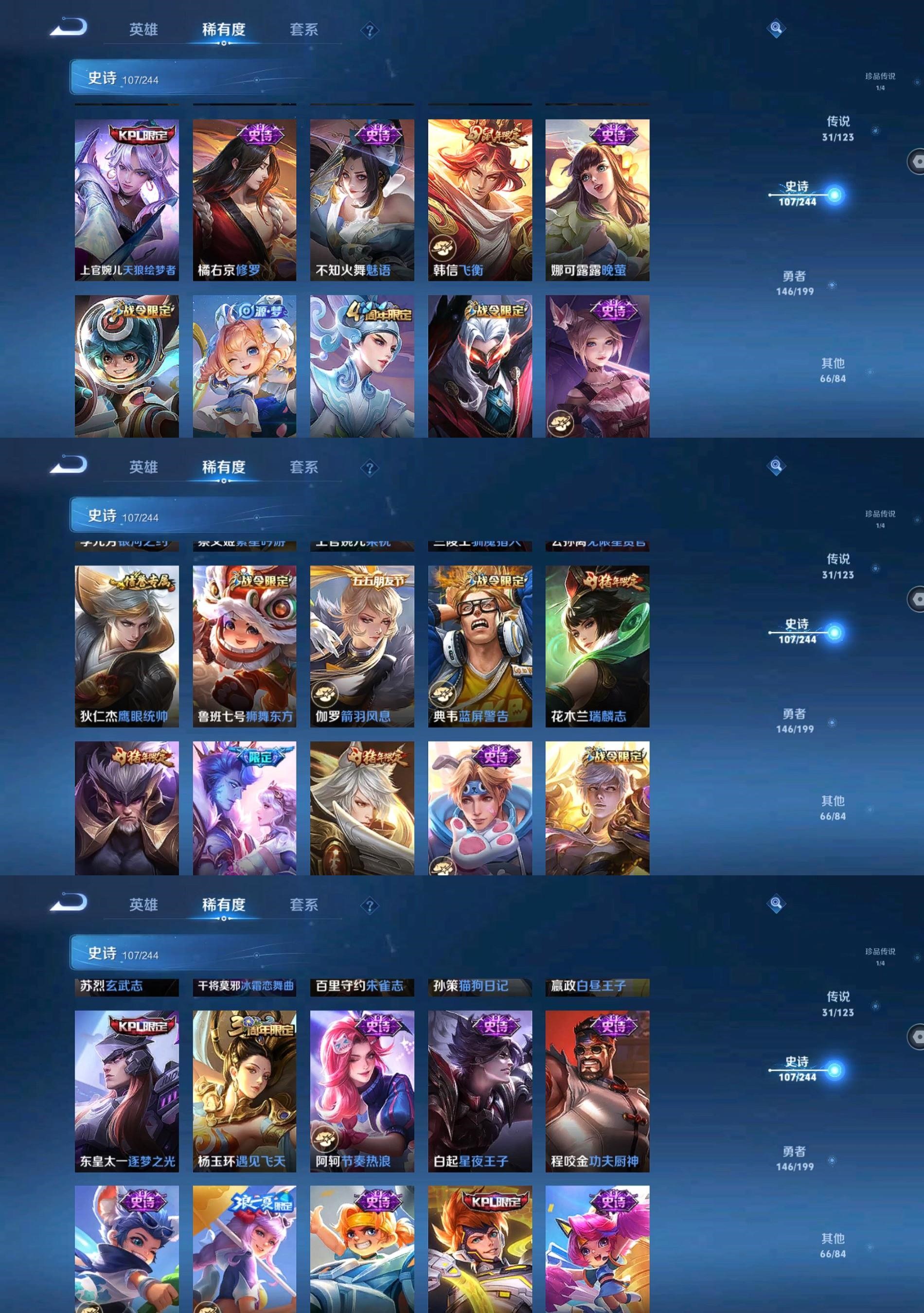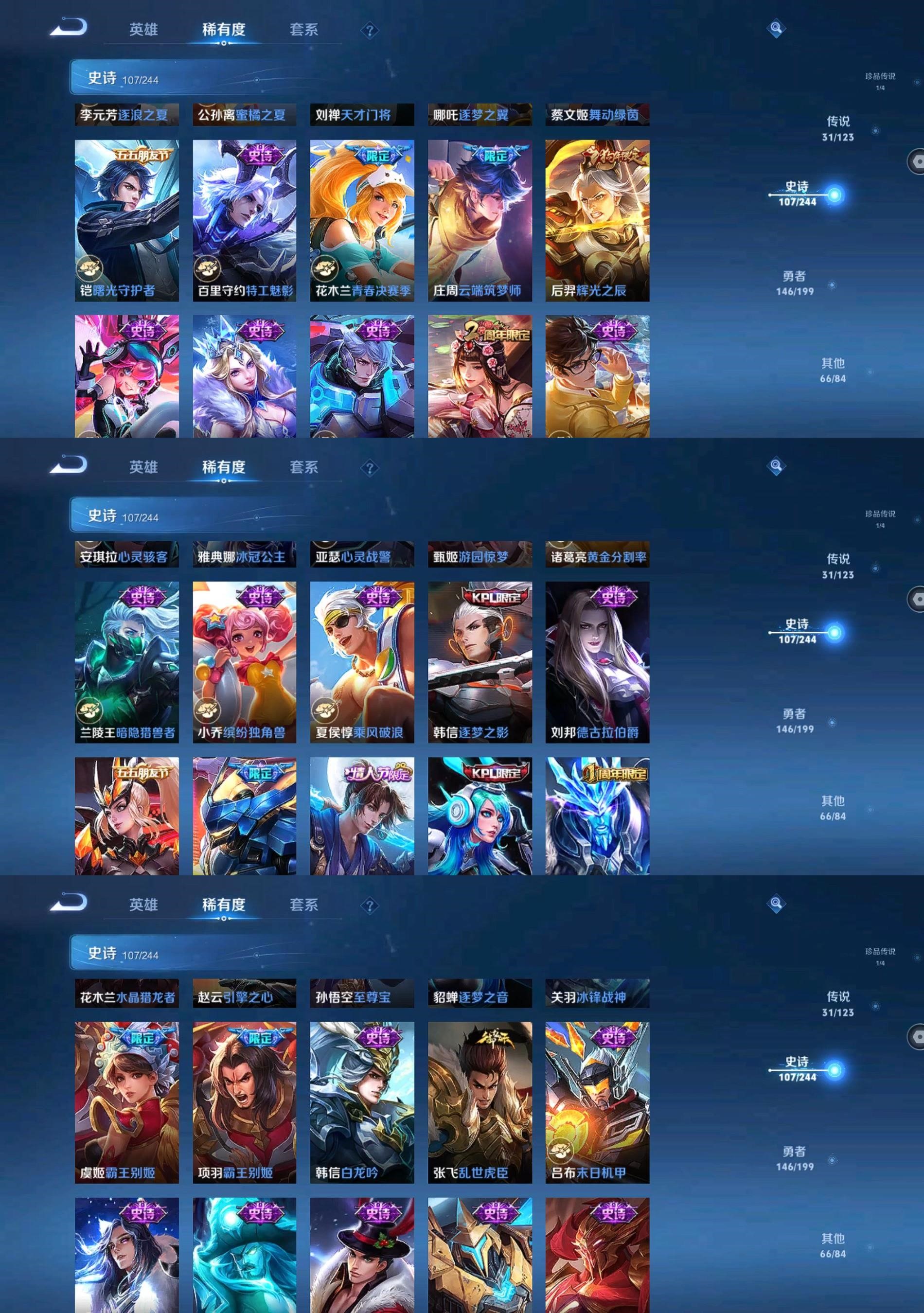 [王者荣耀]V92典藏31传说107史诗354皮肤永恒钻石IV