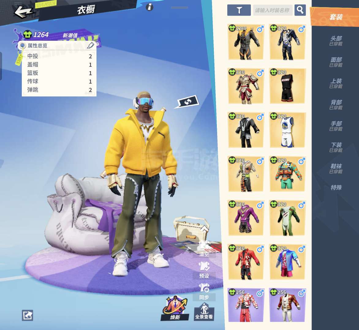 基本都有时装球鞋大圣套香蕉船三套专属慕斯司机布朗,2套球队勇士➕热火!!要玩就要尽兴转手卖出也划得来
