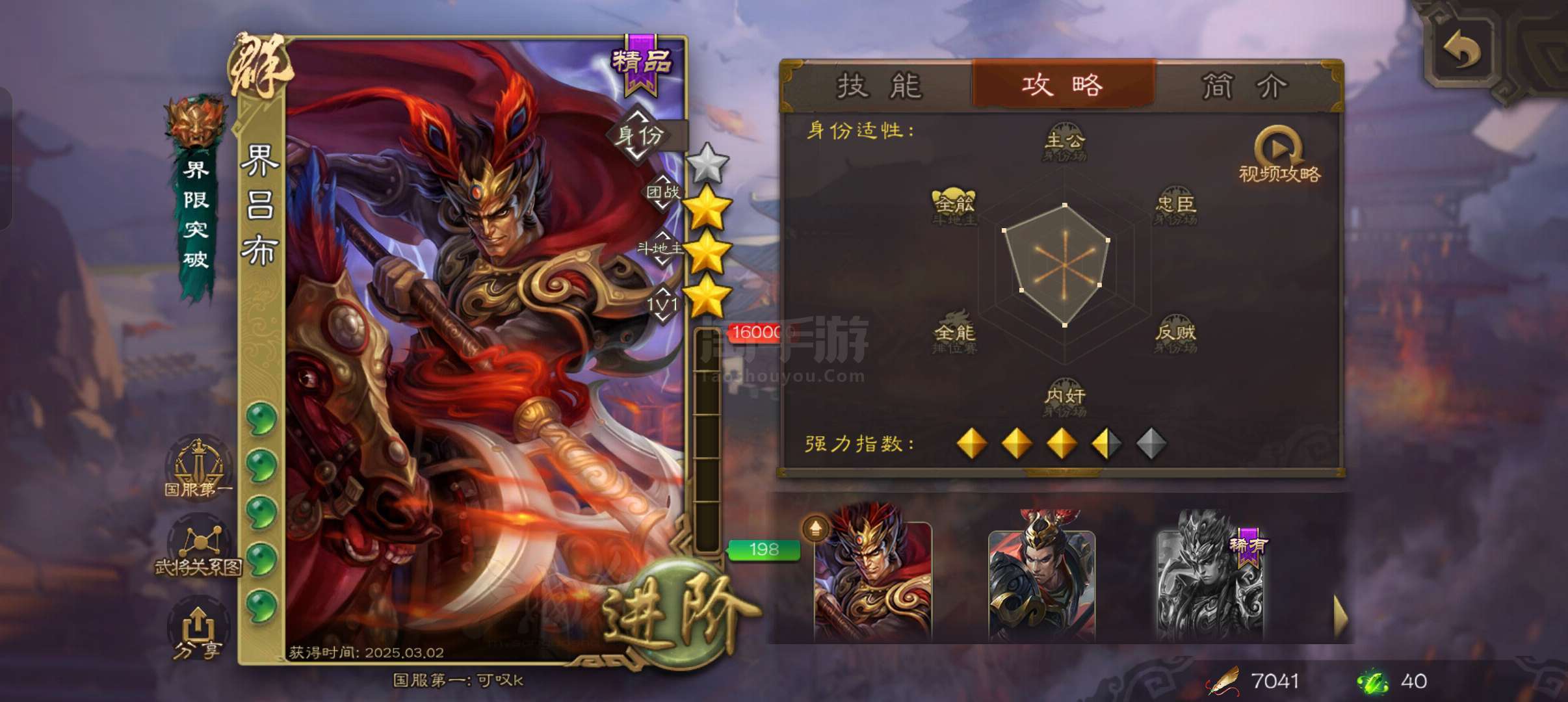 5.3万豆,天工木鹿大王,回廊动白马神吕布贺齐3史诗先锋,界吕布界全琮139将