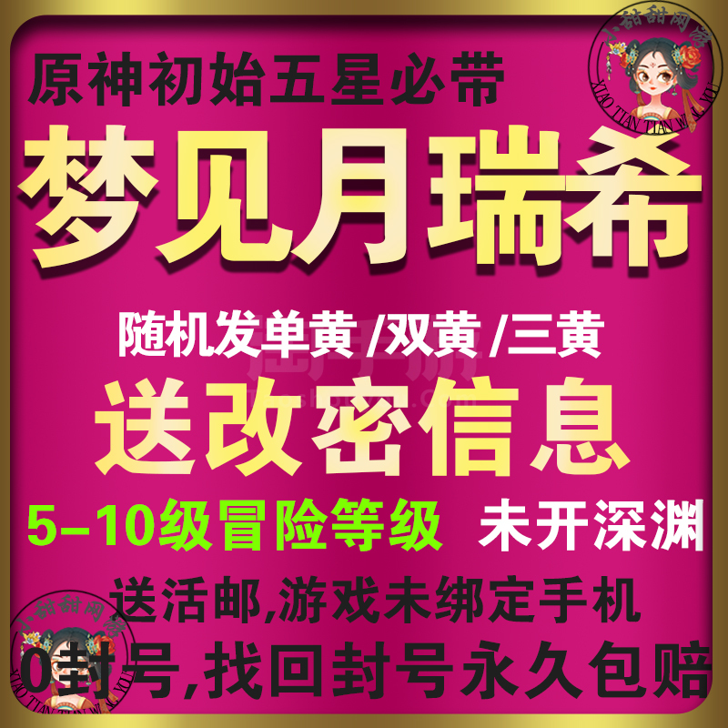 【梦见月瑞希】+随机五星/5-10级冒险等级/深渊未开/送改密信息,活邮可绑手机可改密