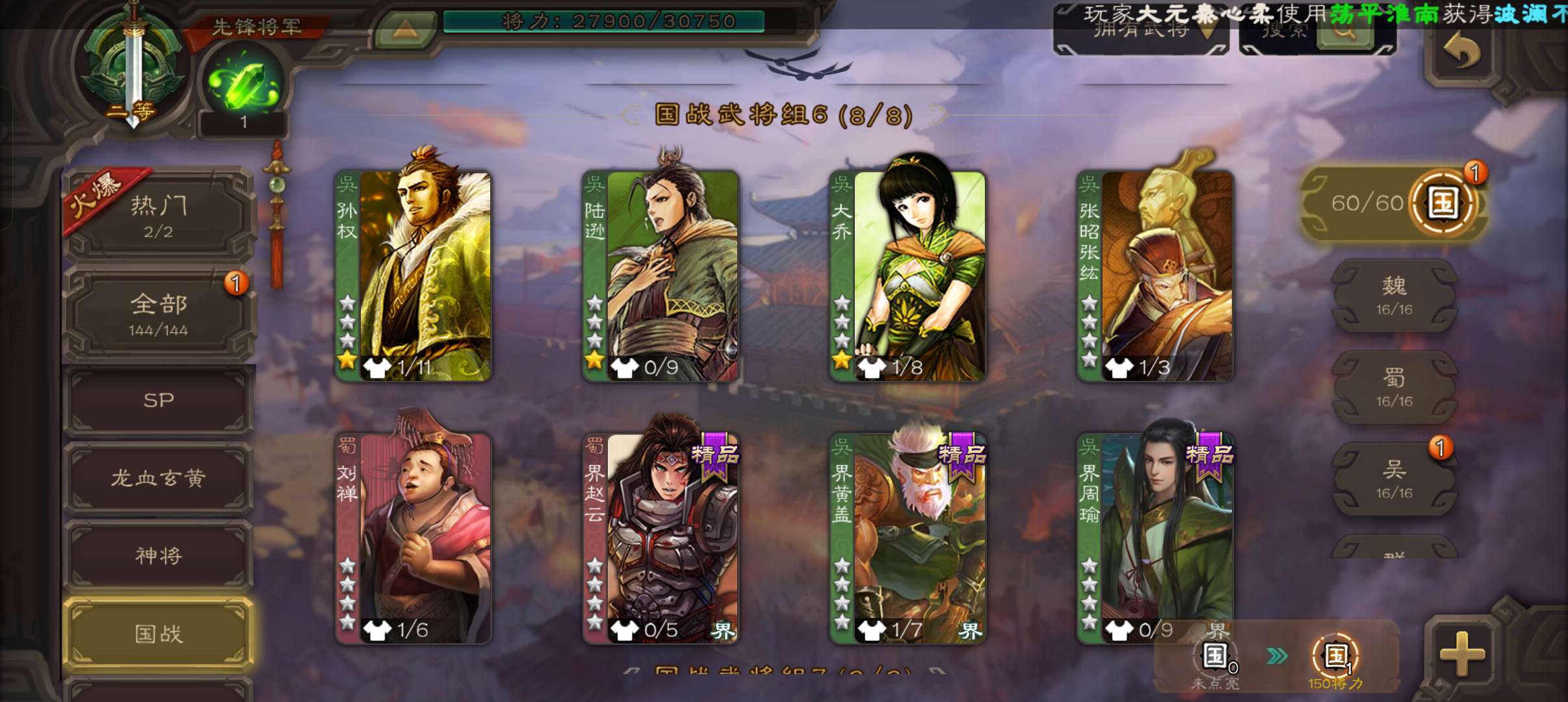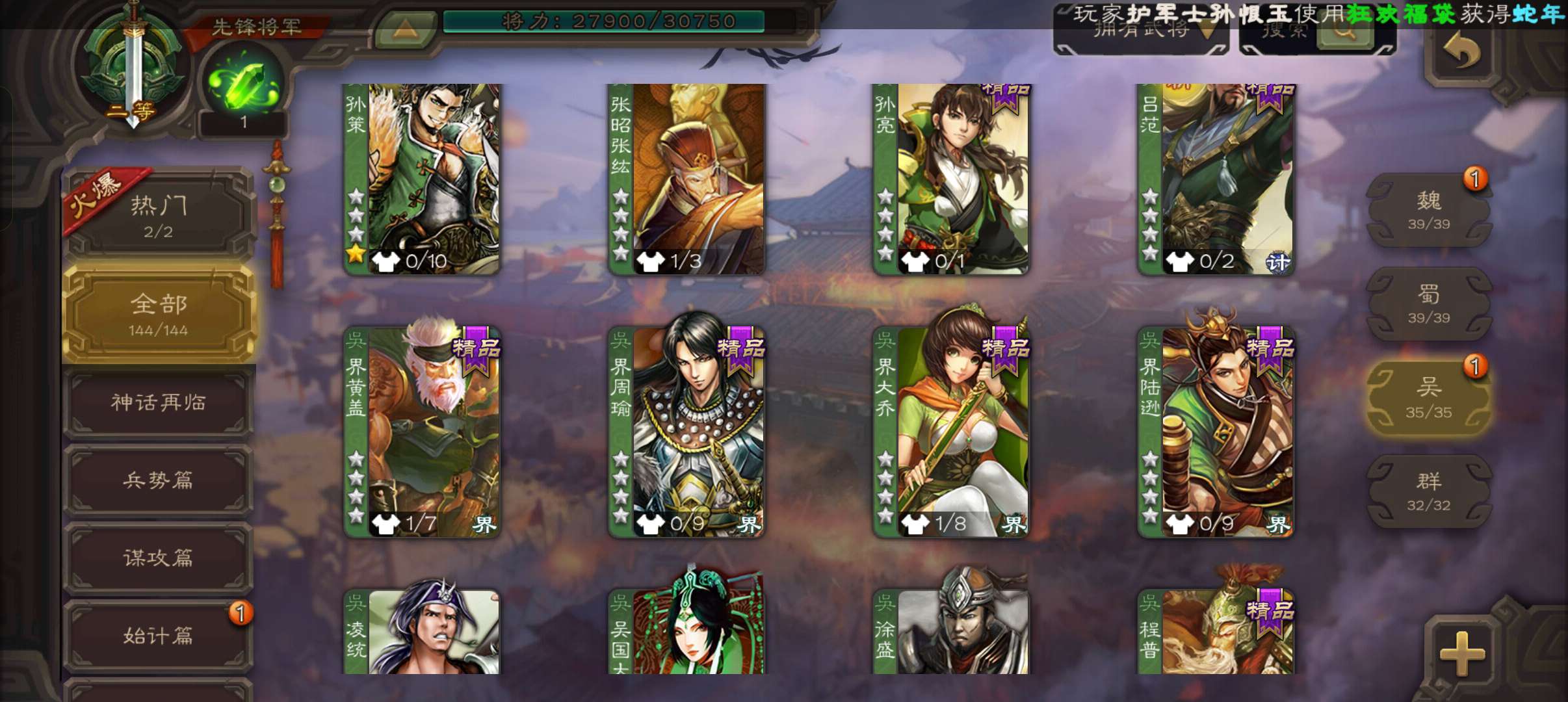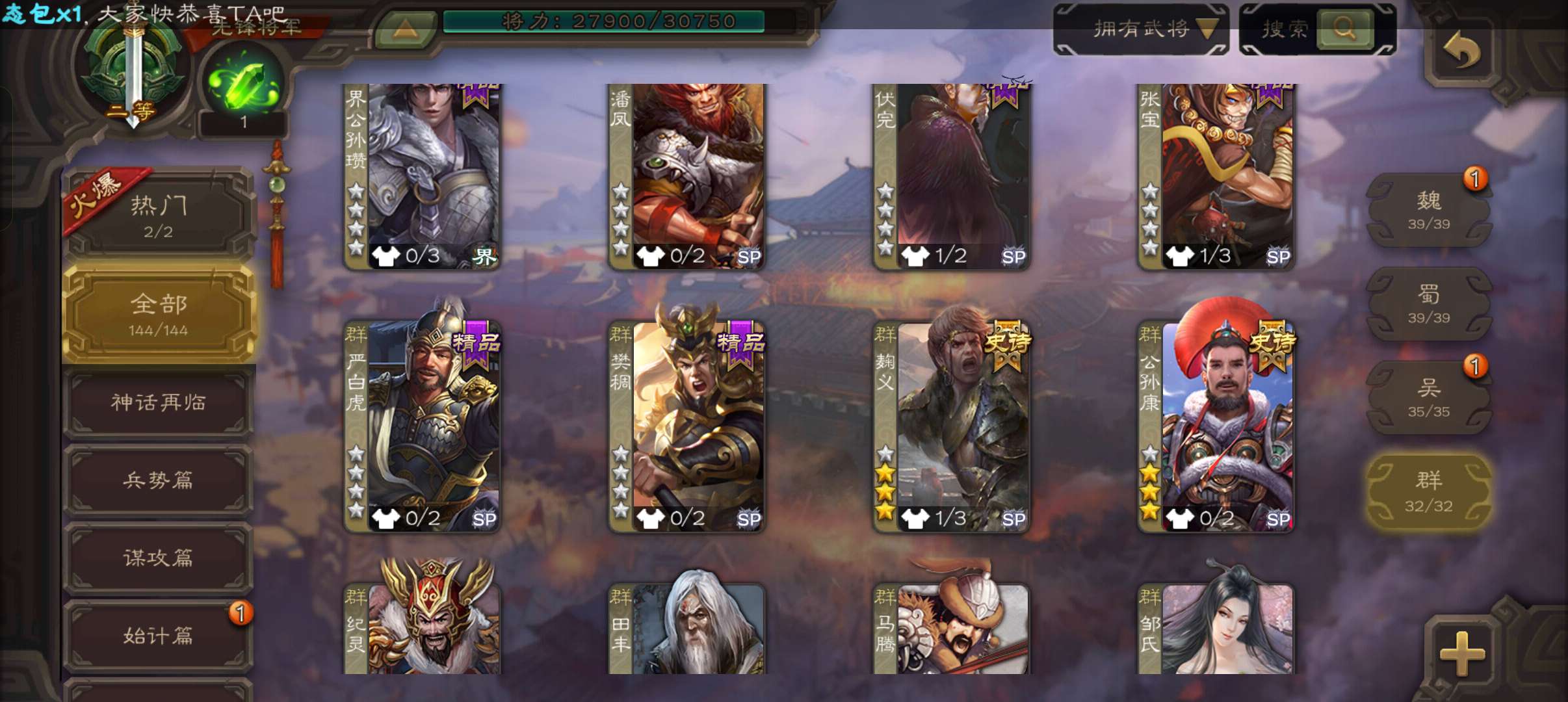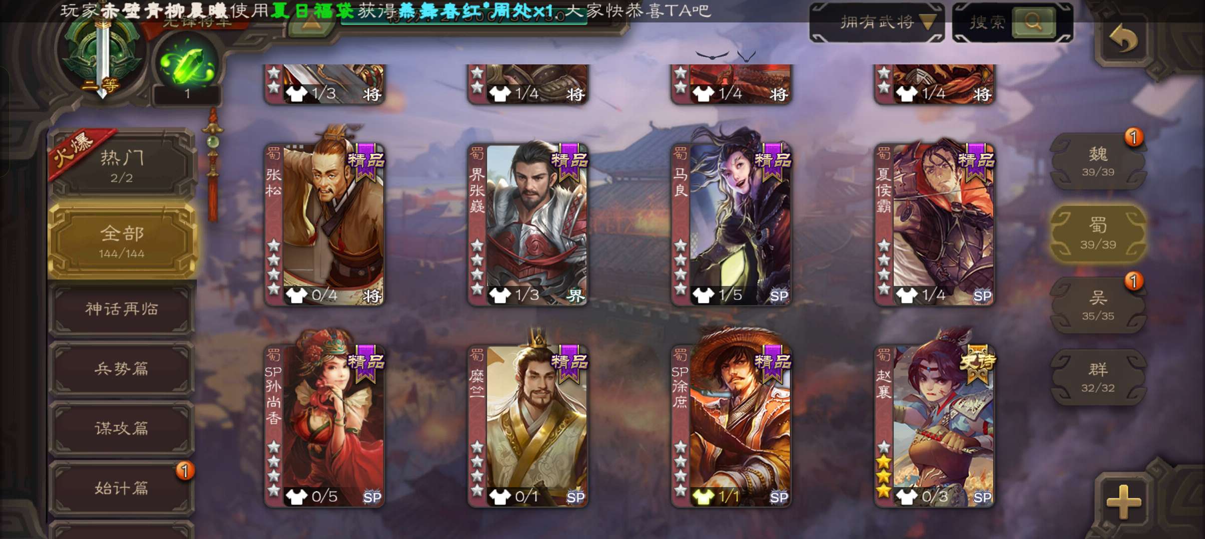 回廊动白马公孙康谯周赵襄杨修贺齐6史诗先锋,费祎金皮界曹植金皮界王异彭恙144将