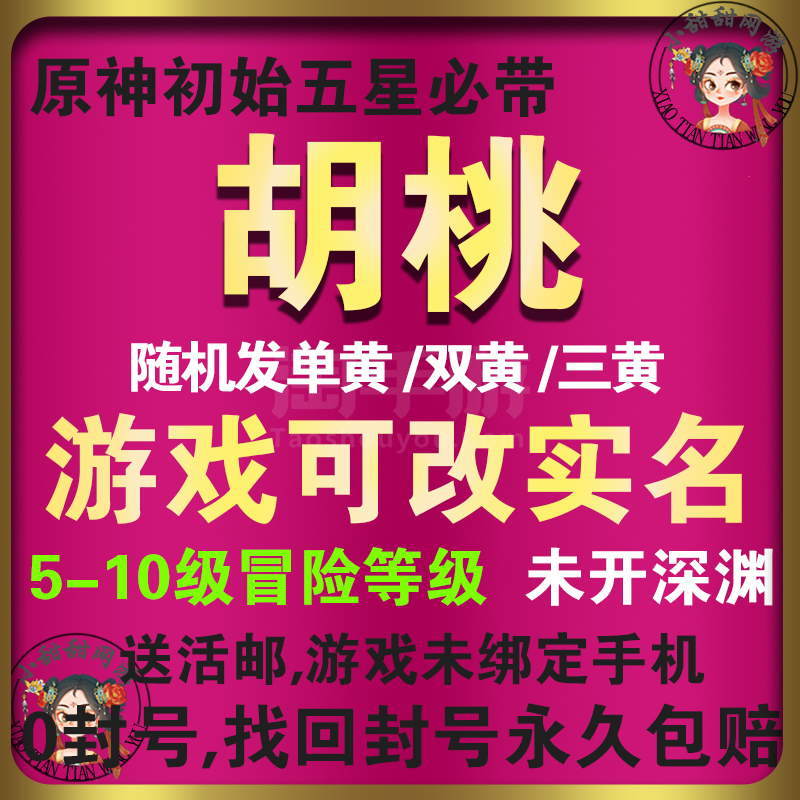 【胡桃】+行秋+匣里灭尘【可改游戏实名】5-10级冒险,深渊未开,可绑手机可改密