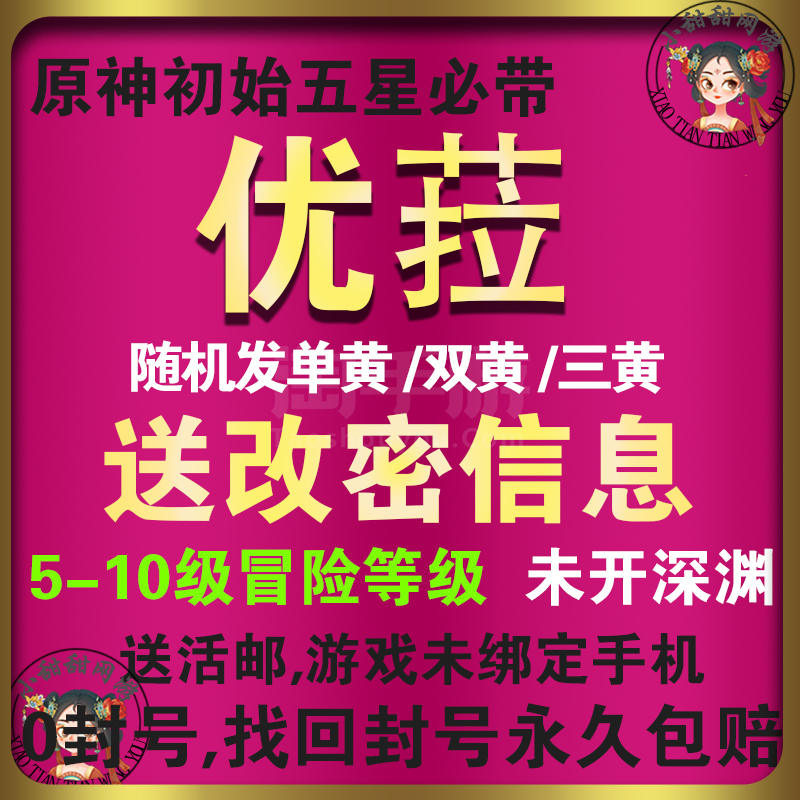 【优菈】5-10级冒险等级/深渊未开/送改密信息,活邮可绑手机可改密