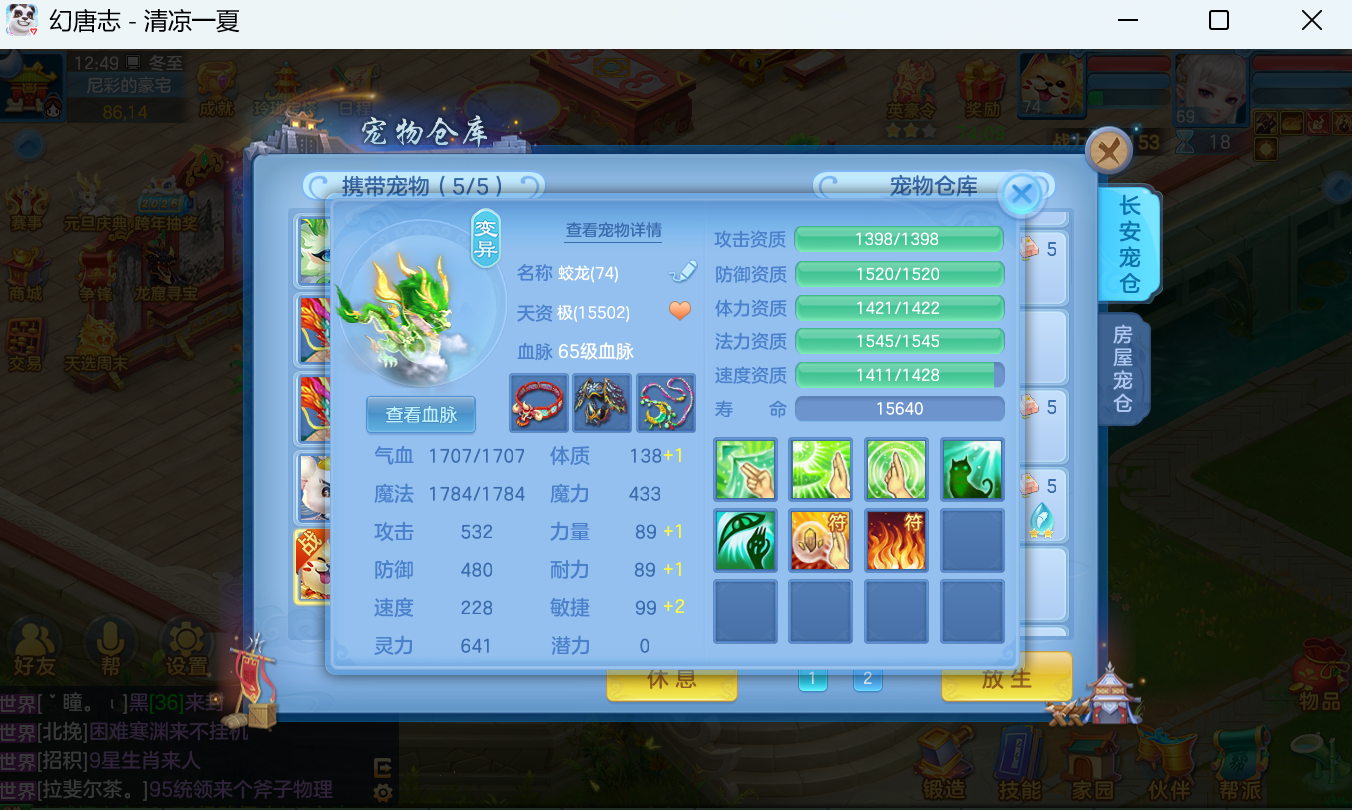 69级宠物神兽2个满技能功法龙各一个血宠都有