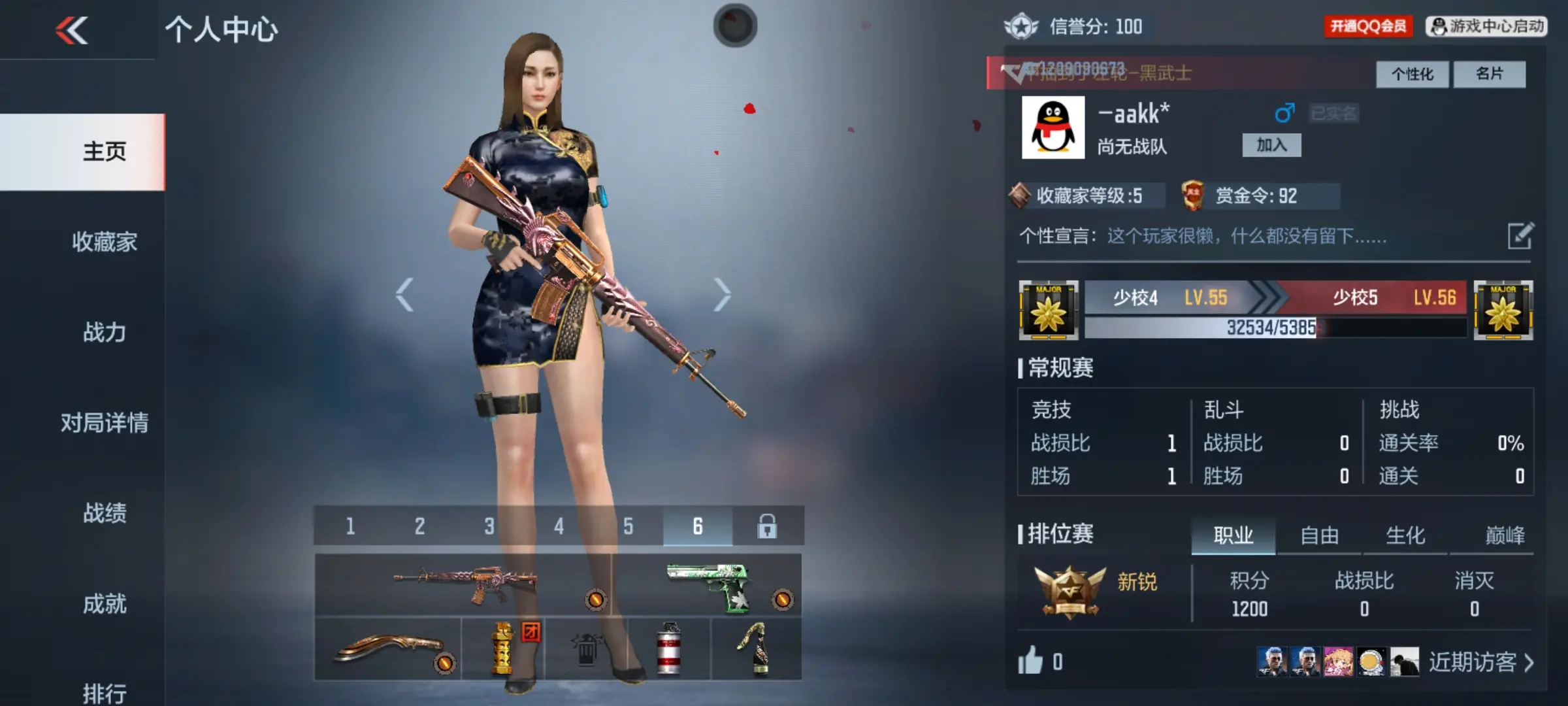 MLY201487号 新手挑战竞技狙王烈星神双开花入门号丨V1-10V1王者丨王者之烈丨QBZ金色蔷