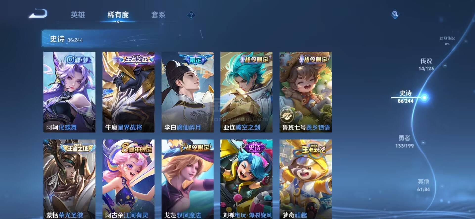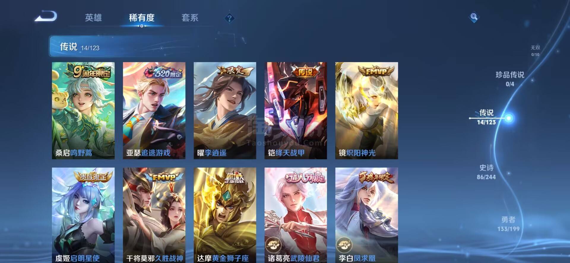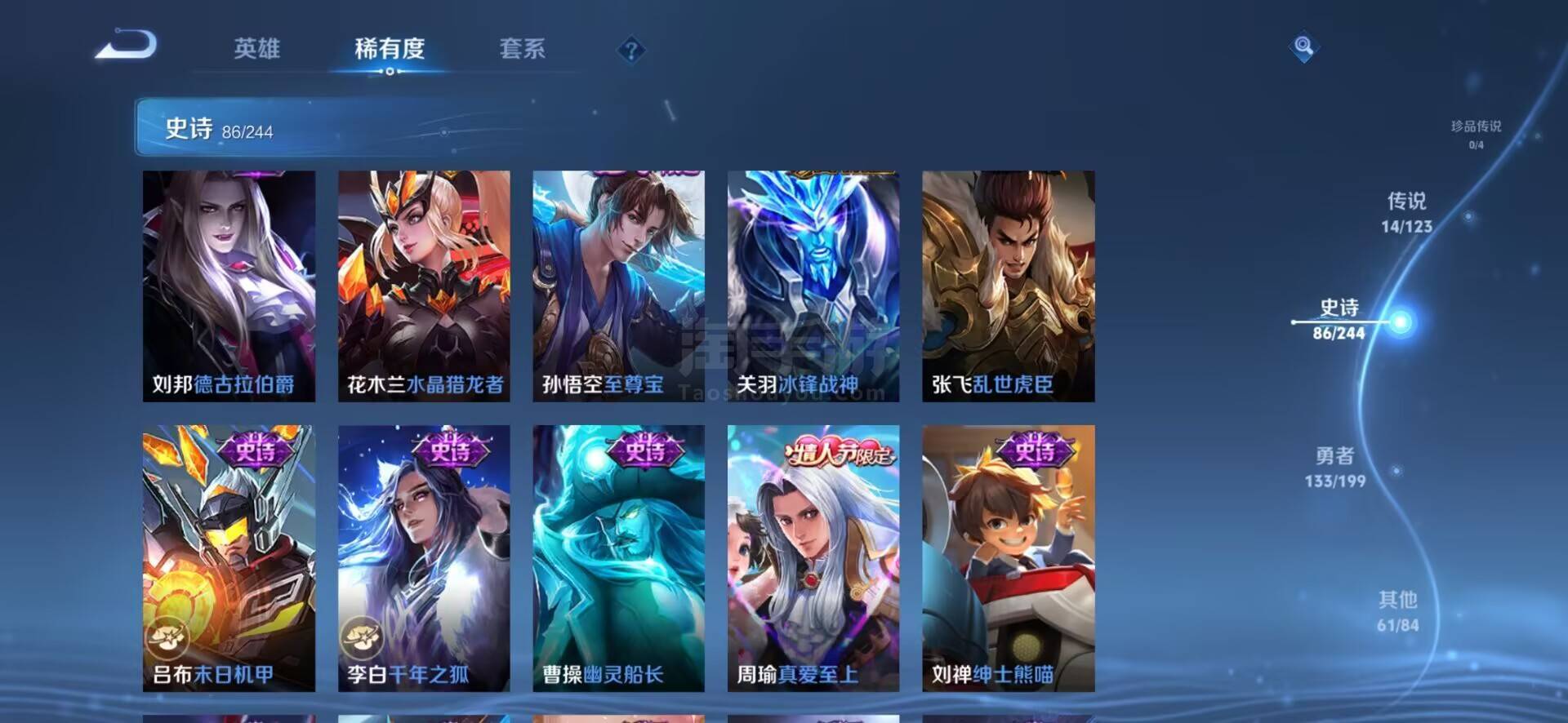 【商品标题】:安卓Q-V8-最强王者段位-121英雄-297皮肤-2典藏-0无双-0珍品传说-14传说-86史诗