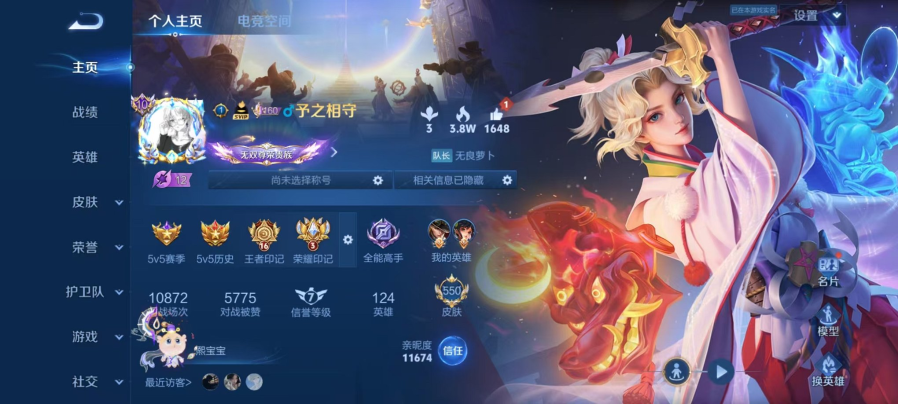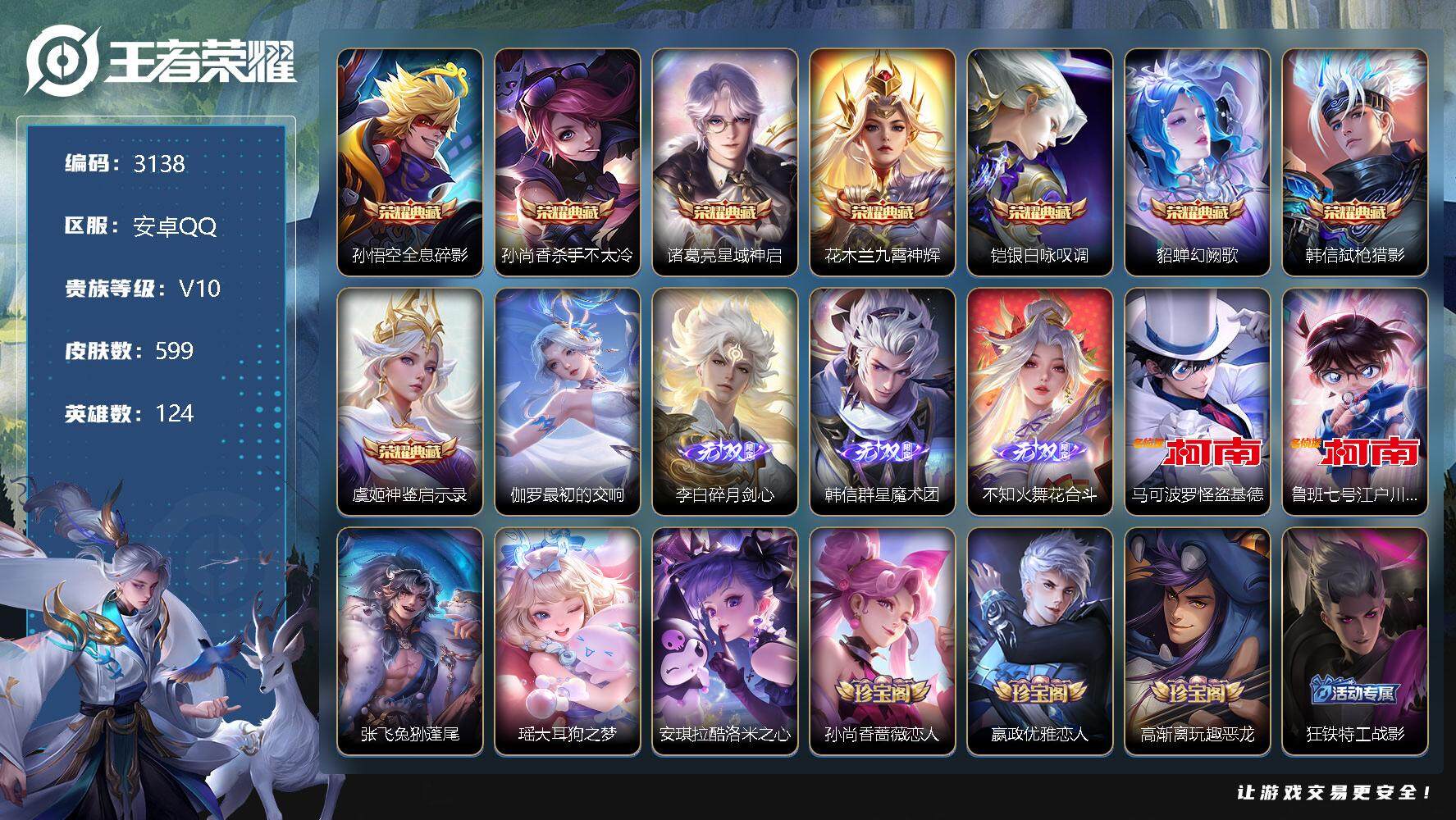 王者荣耀【苹果QQ】WZ732安卓Q/可二次/-贵族10-贵族积分33万-123英雄-409皮肤17典藏/1无双/2珍品