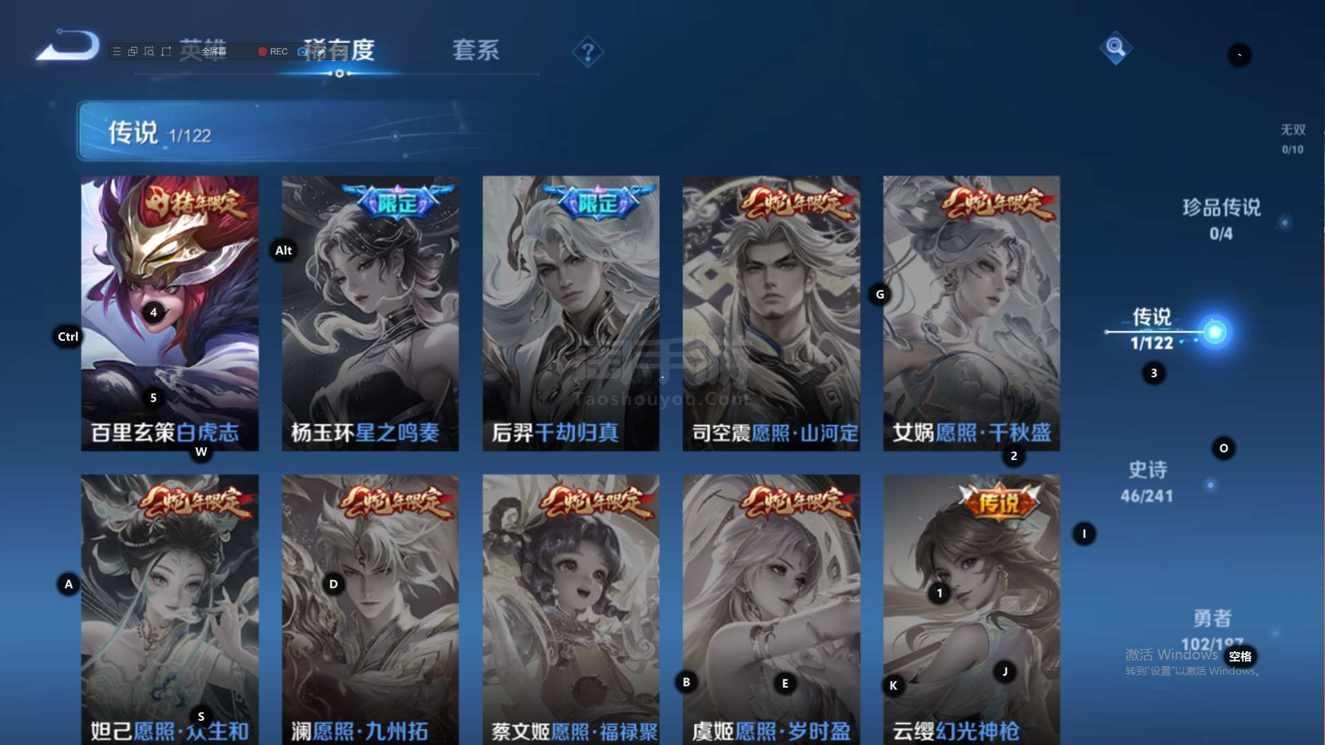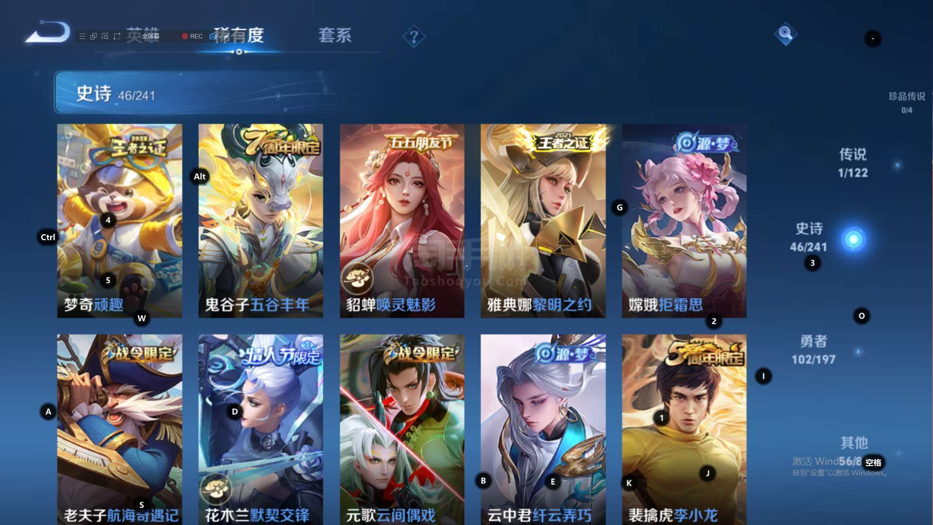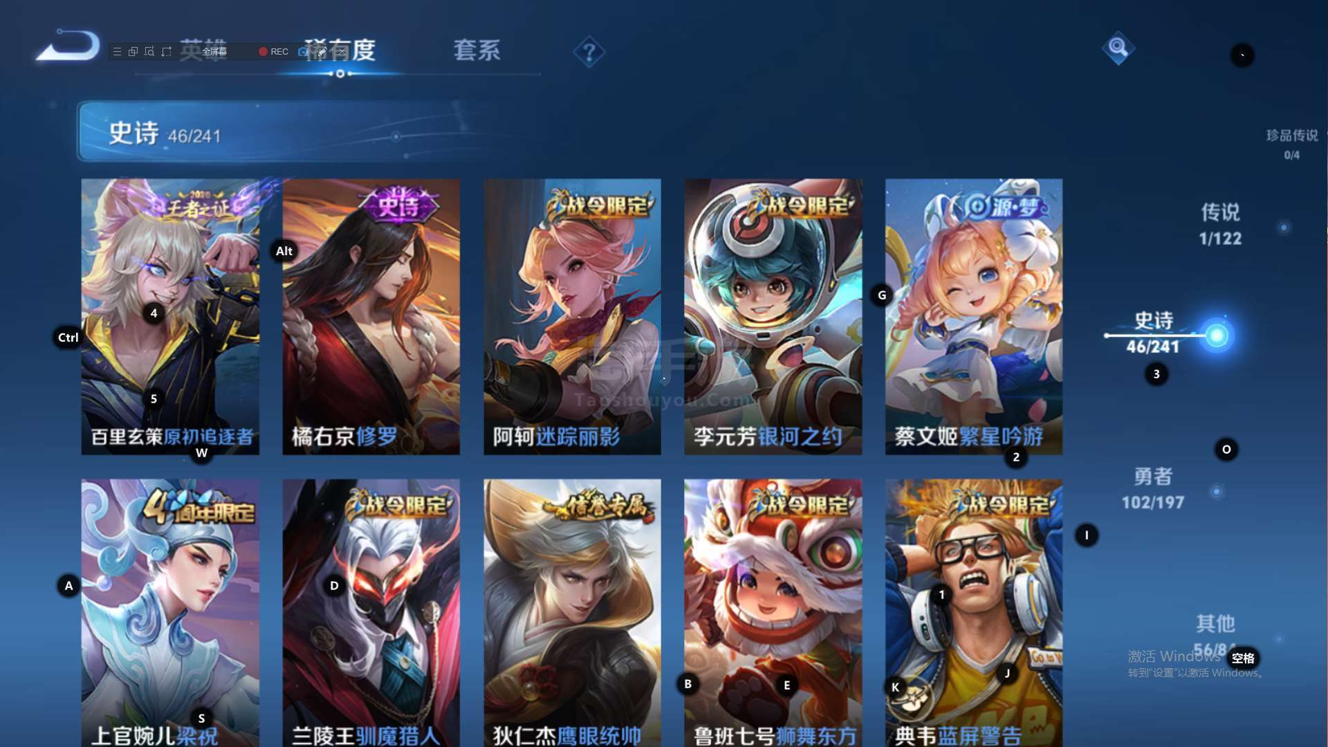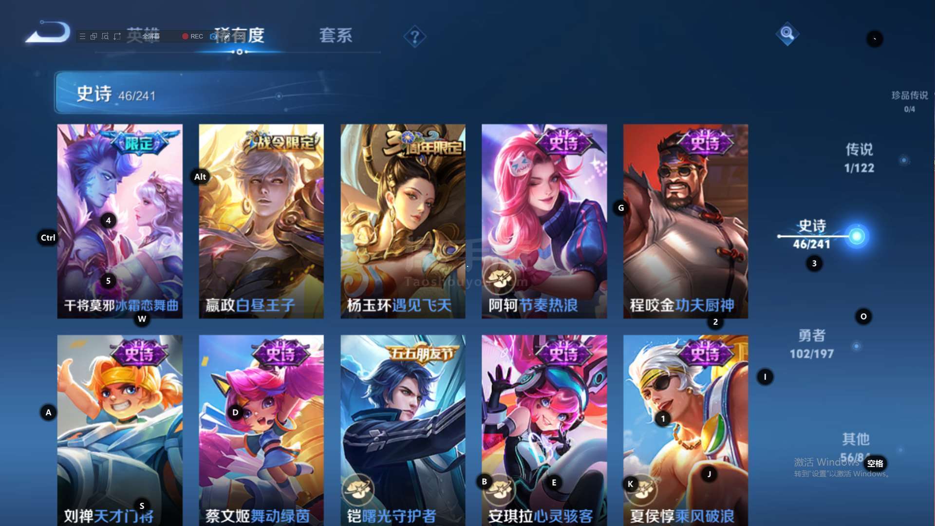 【119英雄/205皮肤】【1传说】【百里玄策白虎志】【五谷丰年+貂蝉唤灵魅影+裴擒虎李小龙+上官婉