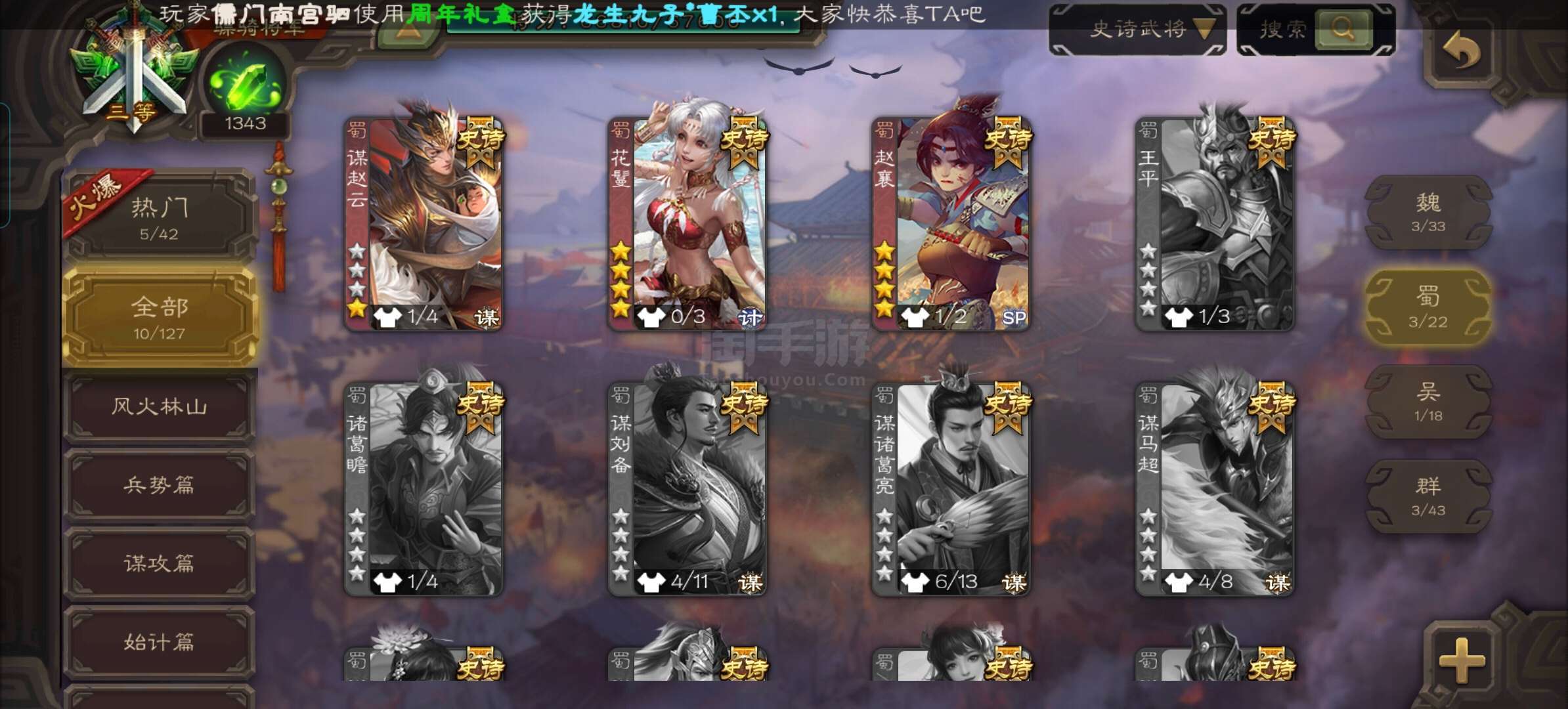 史诗武将数量: