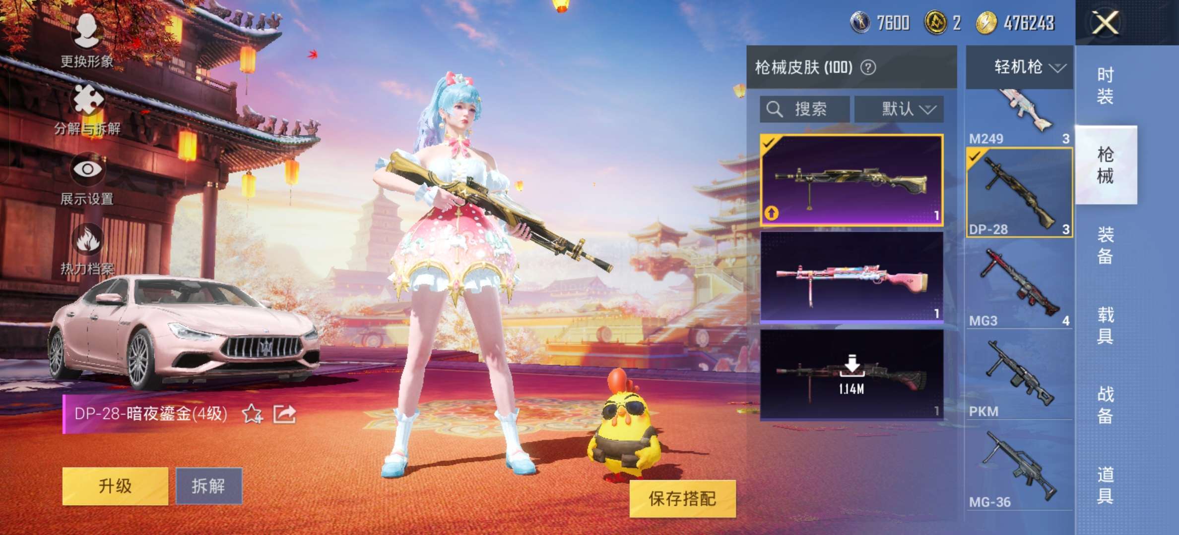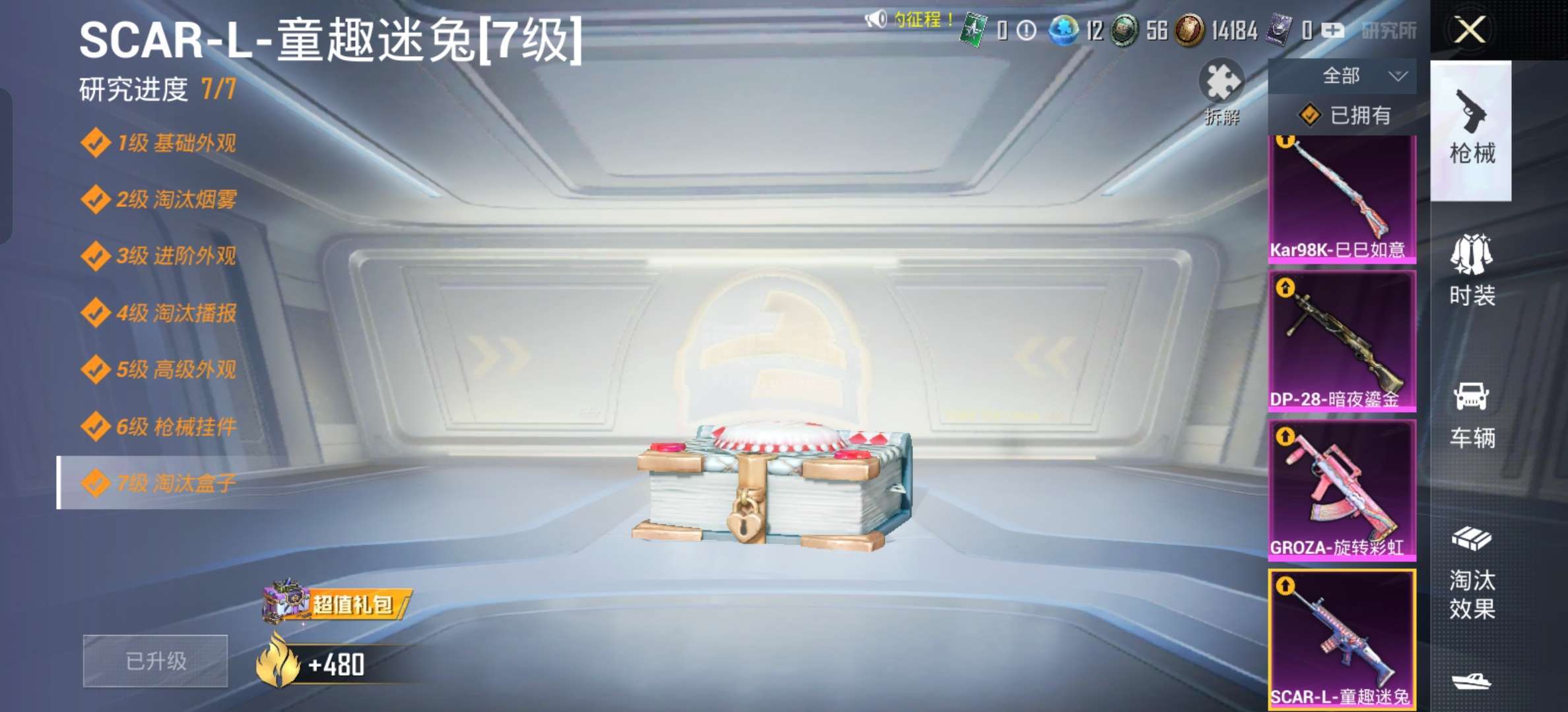 :SCAR-L-童趣迷兔,GROZA-旋转彩虹,DP-28-暗夜鎏金,退游了要的来问,可小刀