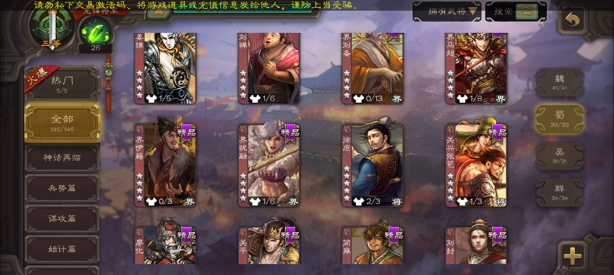 史诗武将数量: