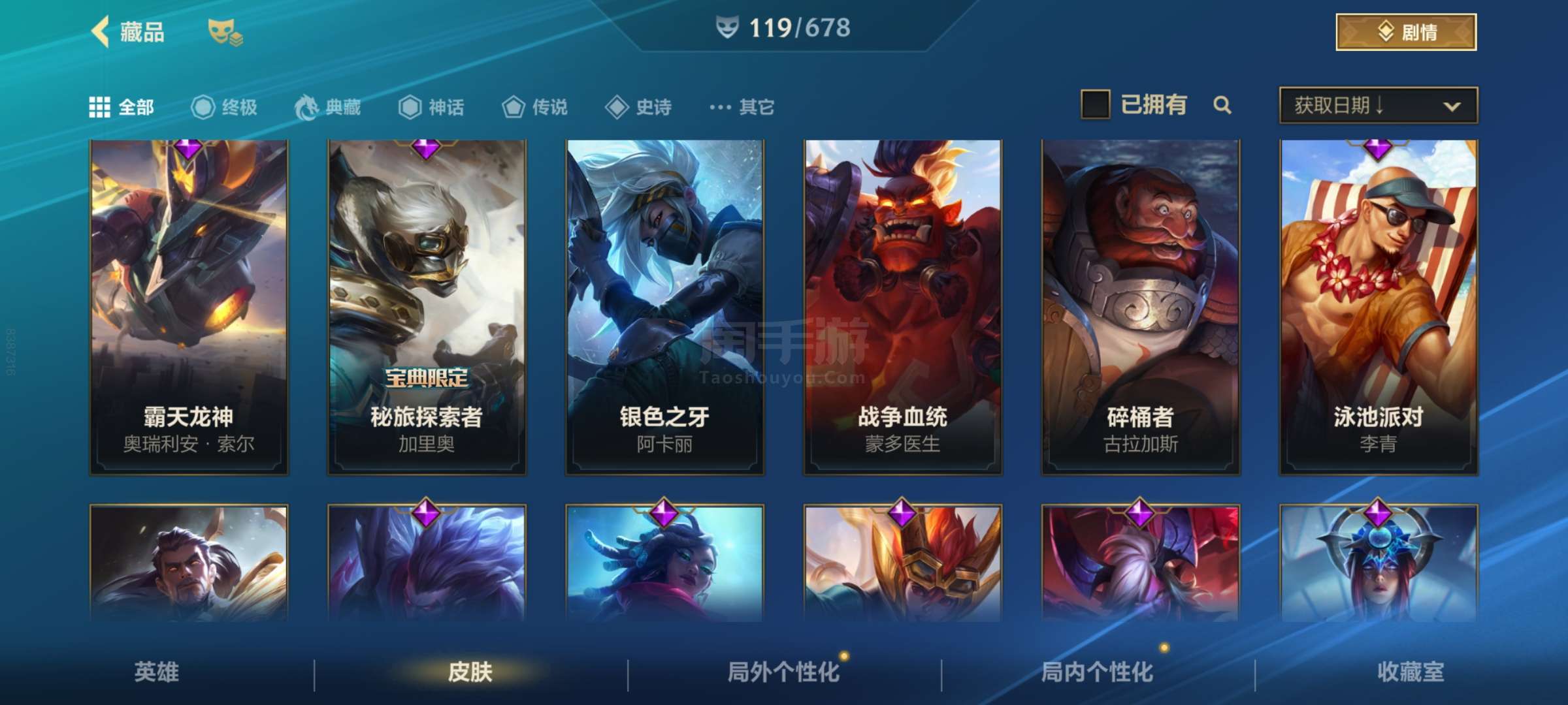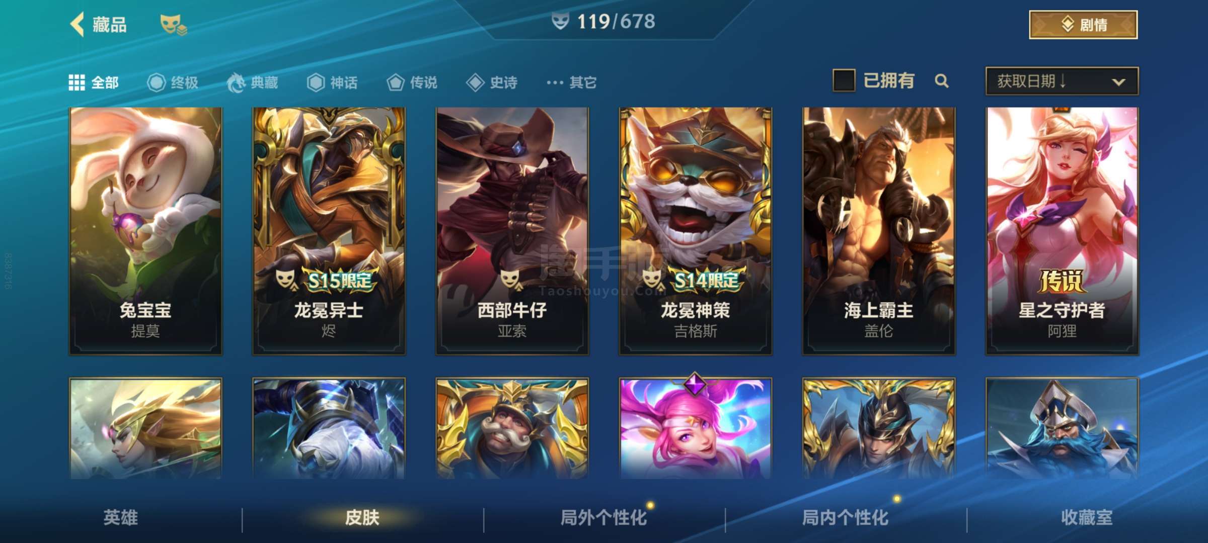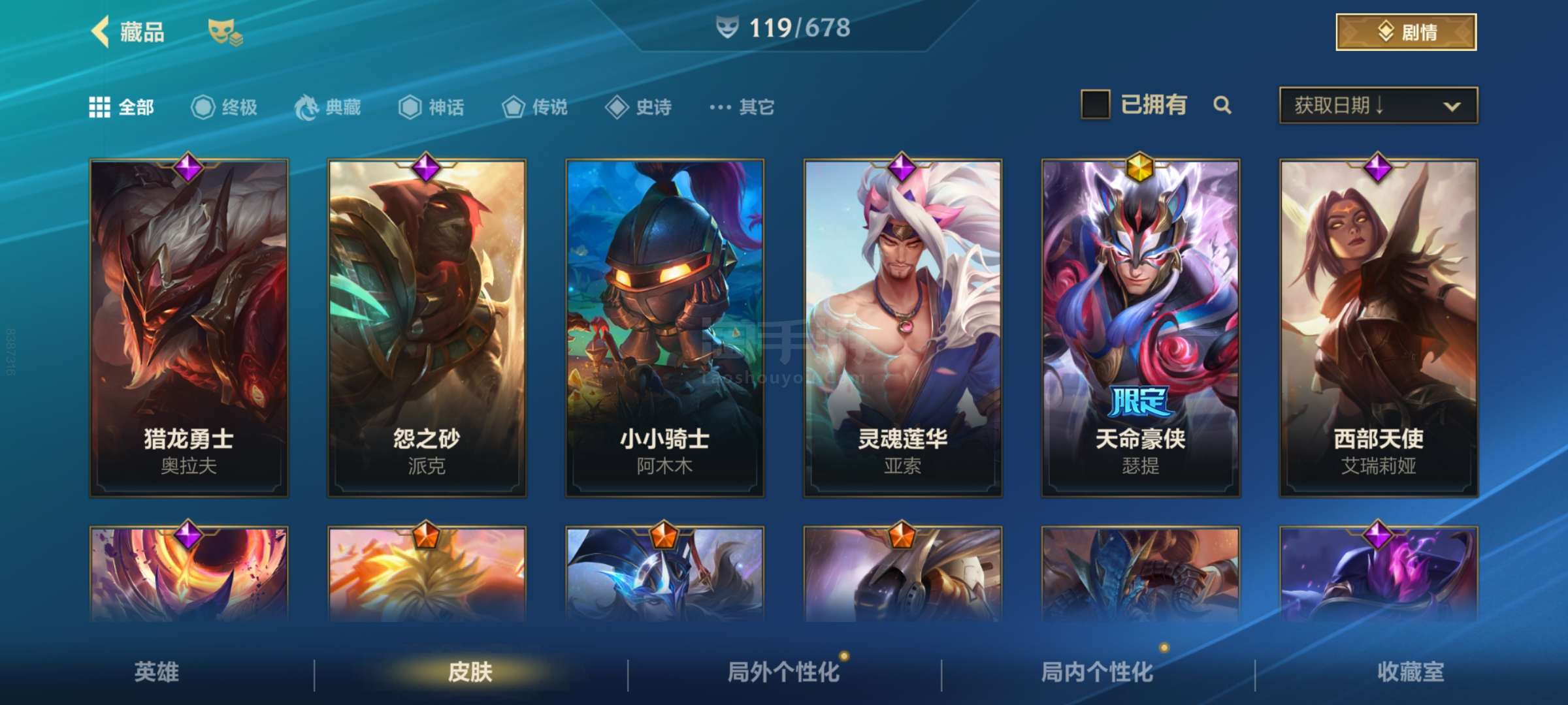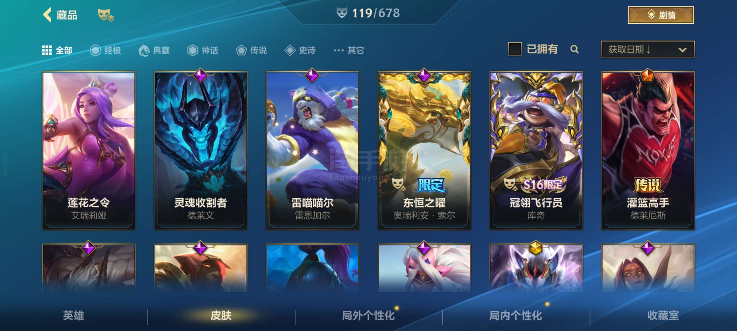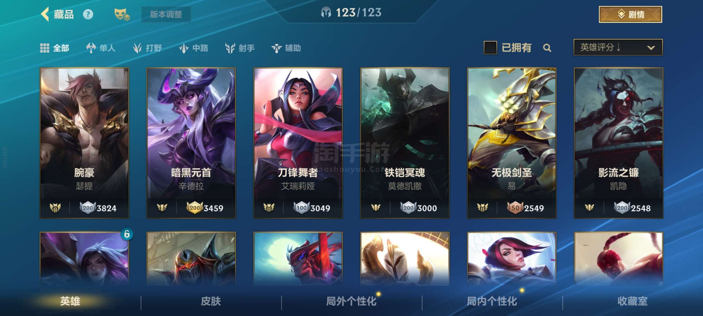 英雄联盟手游(lol)【安卓QQ】开服号全英雄,一神话8传说51史诗