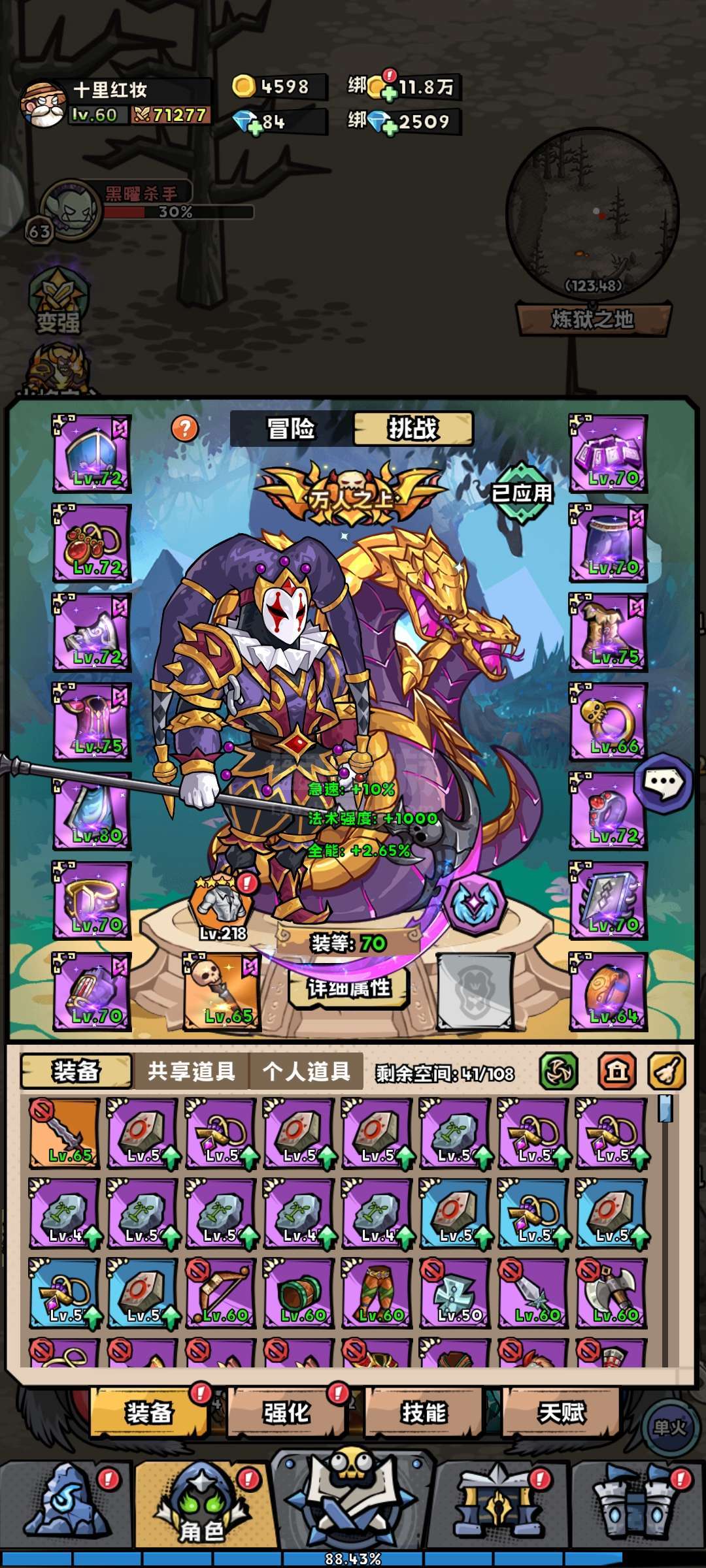 安卓Q 4典藏1无双69传说480皮 个人自玩极品v10基本所有皮肤都有了 细节亮点自己看图