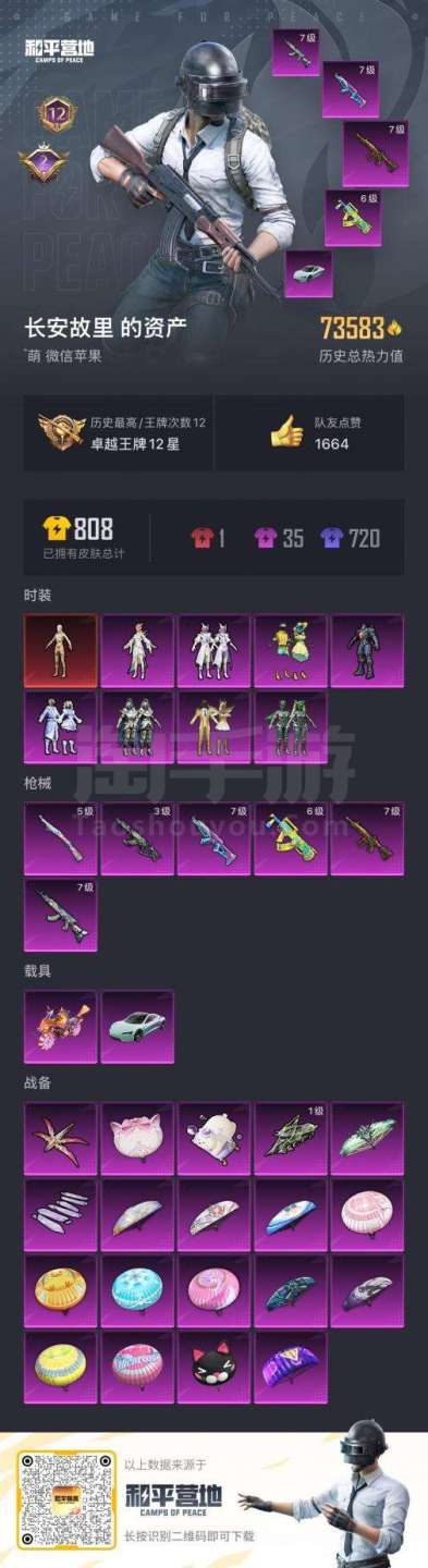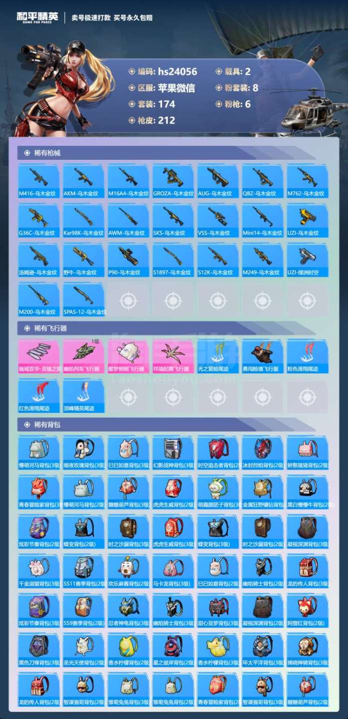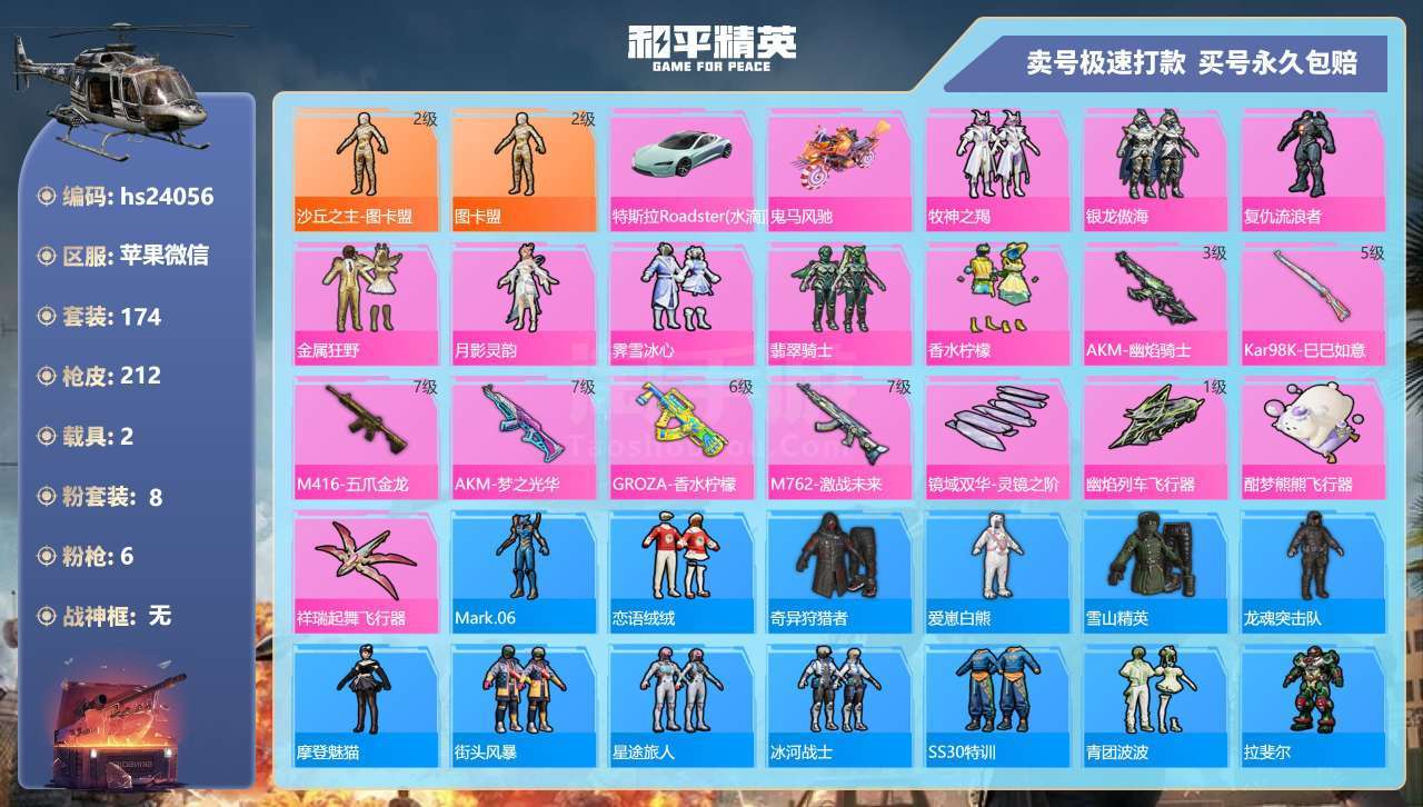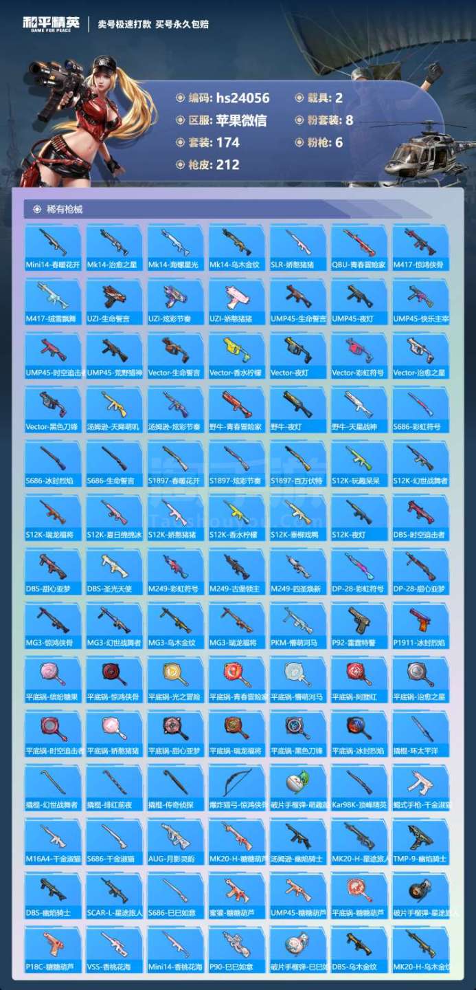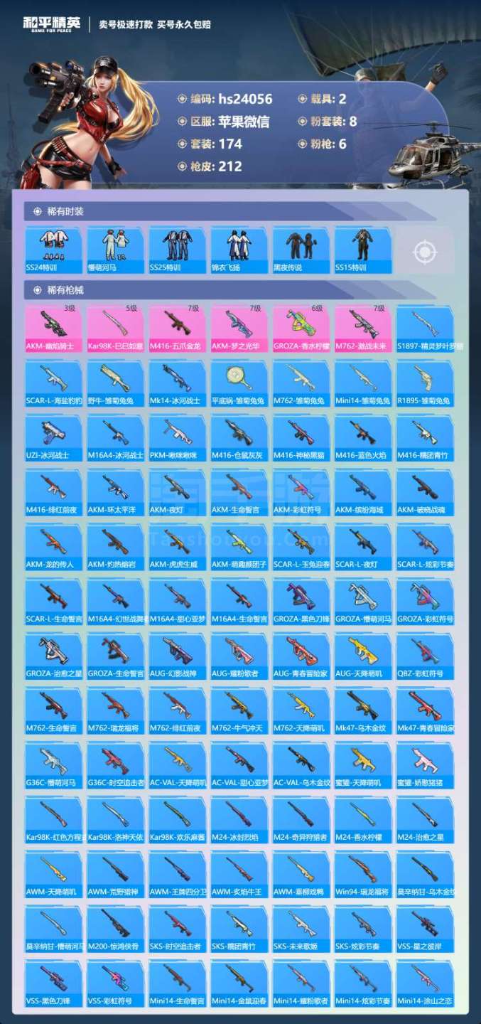 hs24056 苹果V-73740热力值 12王牌印记 历史卓越王牌12星 174套装 212枪皮