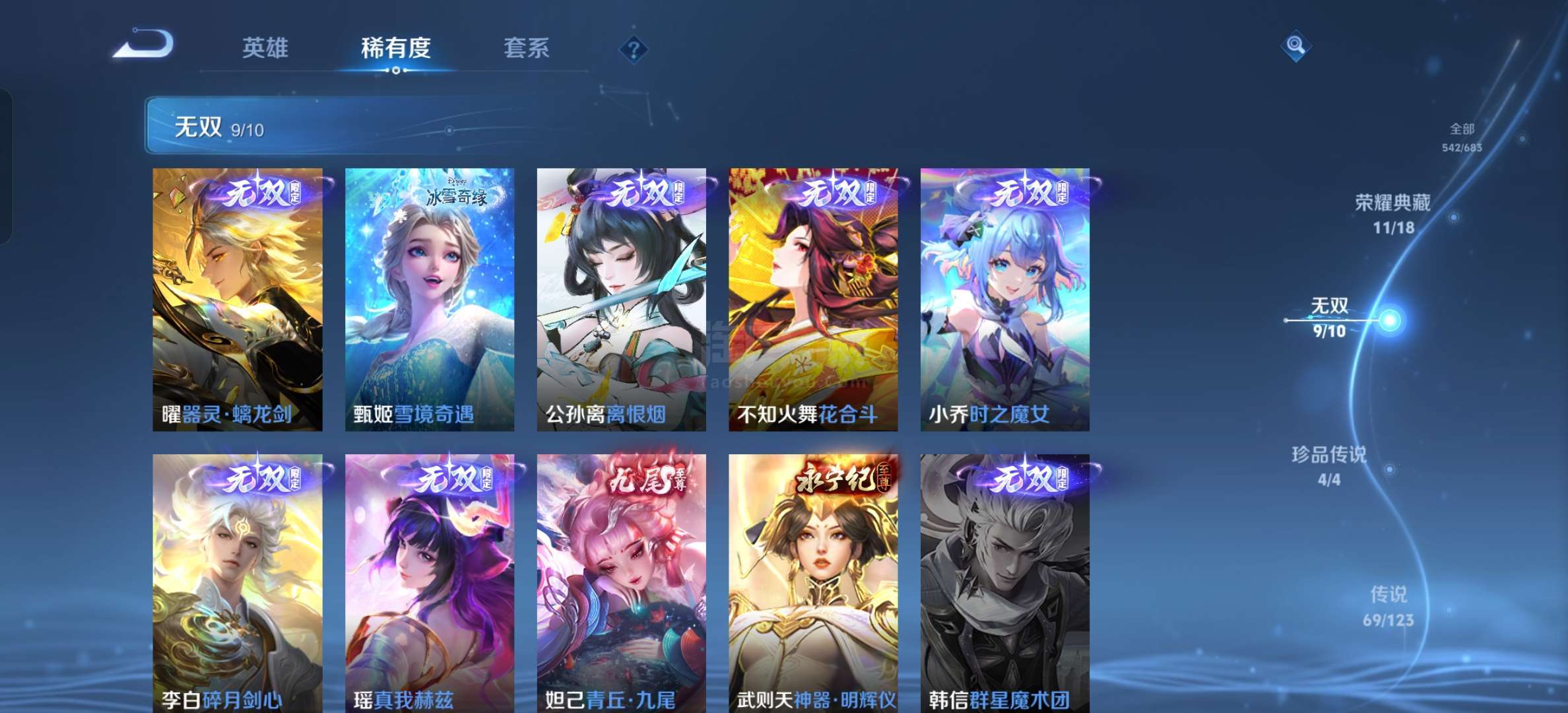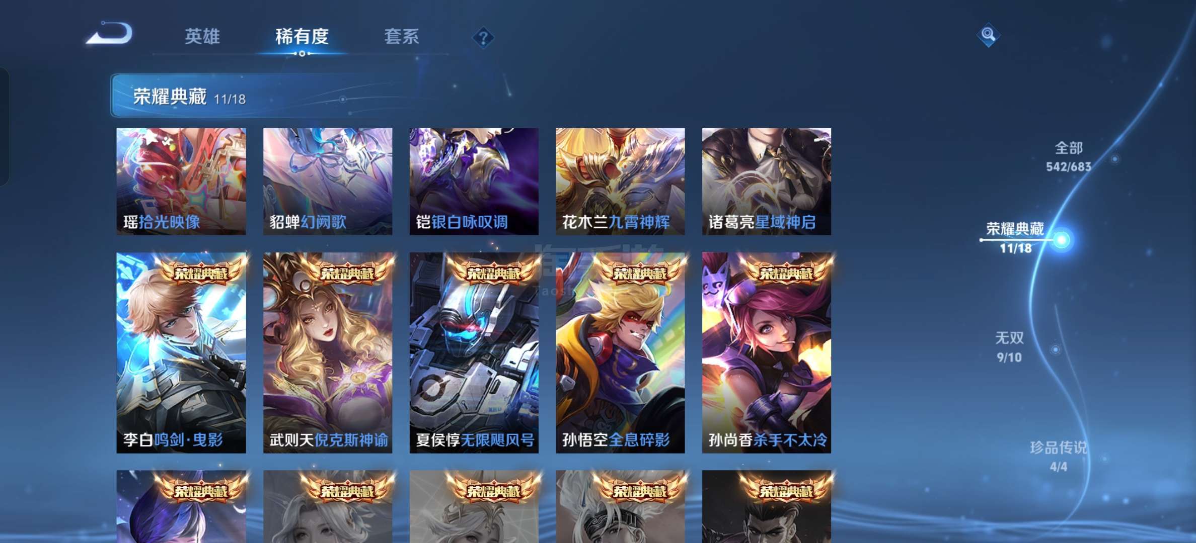 安卓QQ V10无双贵族貂蝉-幻阙歌,铠-银白咏叹调,李白-鸣剑·曳影,孙尚香-杀手不太冷,孙悟空-全息碎影,武则天-倪克斯神谕,夏侯惇-无限飓风号,小乔-天鹅之梦,诸葛亮-星域神启,瑶-拾光映像