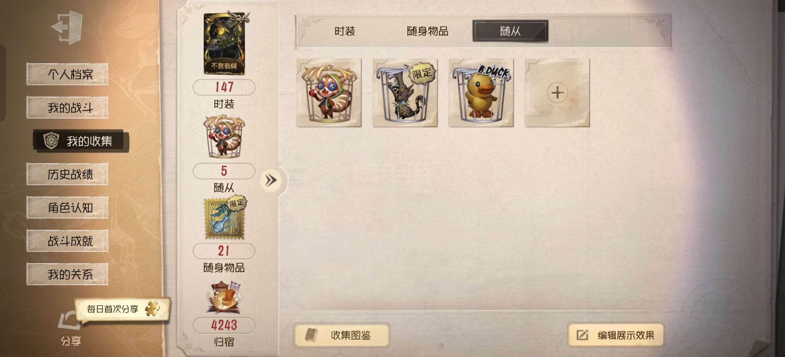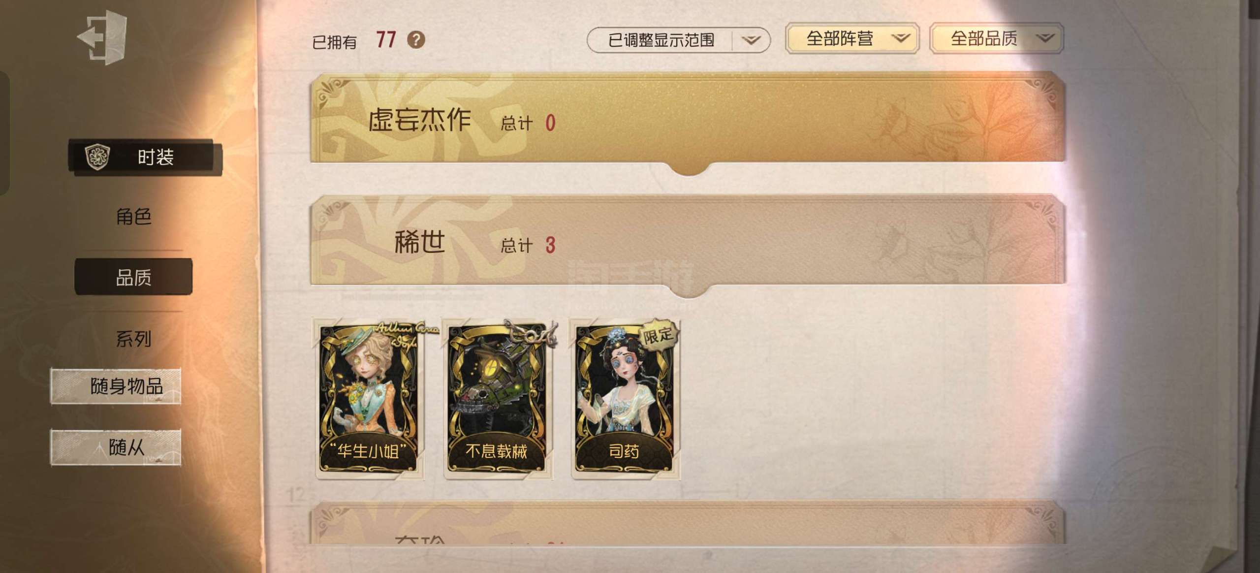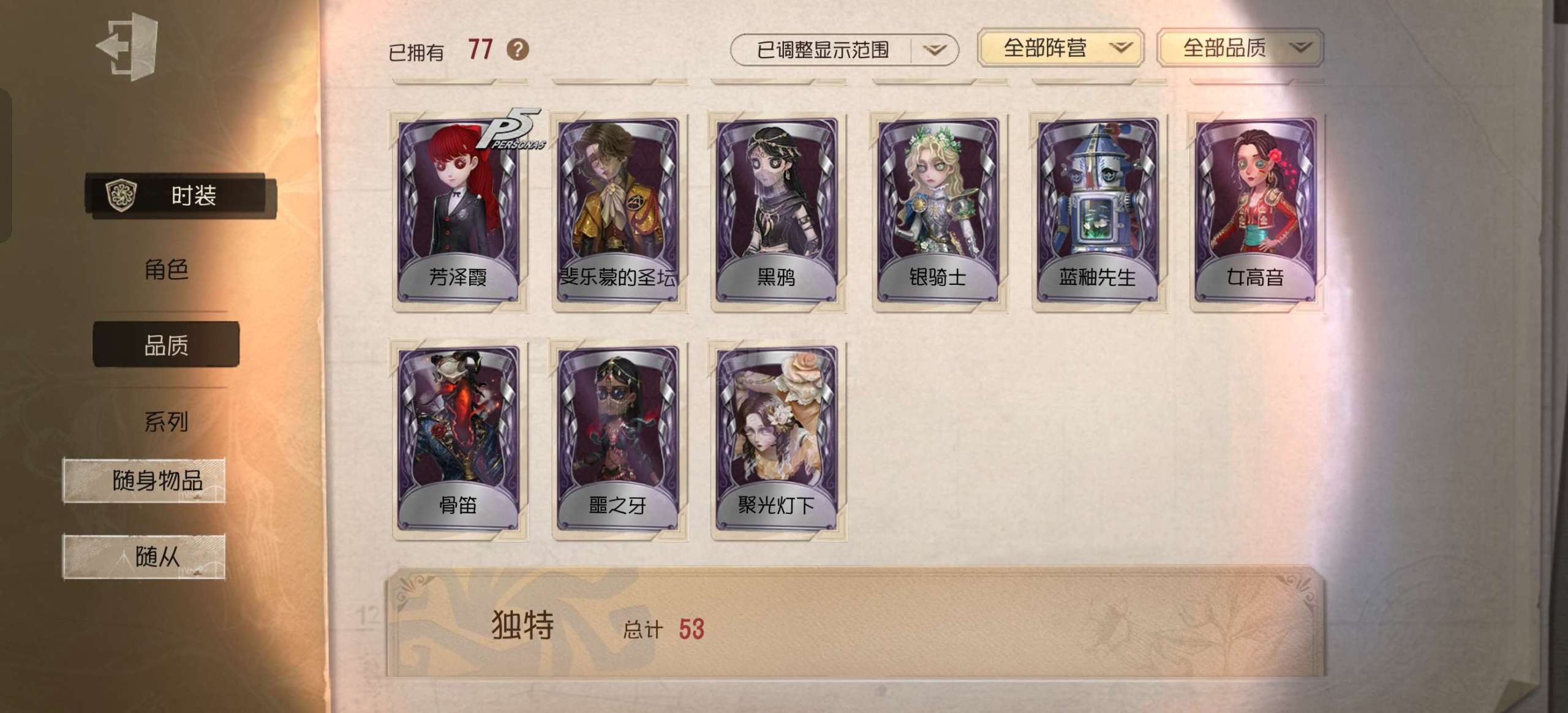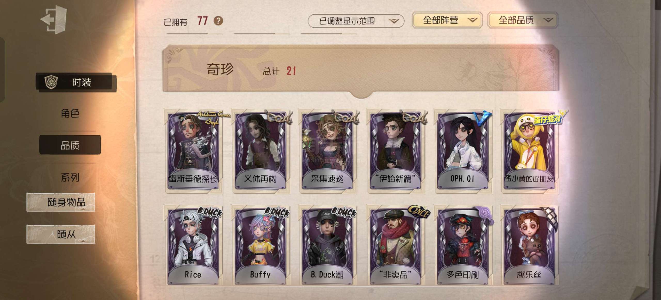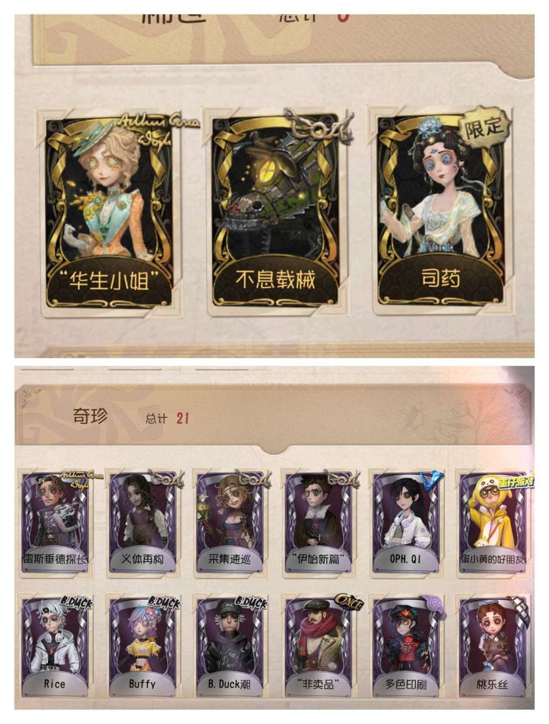 第五人格【安卓OPPO】这属于一个小情号,入手直接玩,有记者福尔摩斯华生小姐一整套,蜘蛛深渊不息载械,年限医生司药配金挂,紫