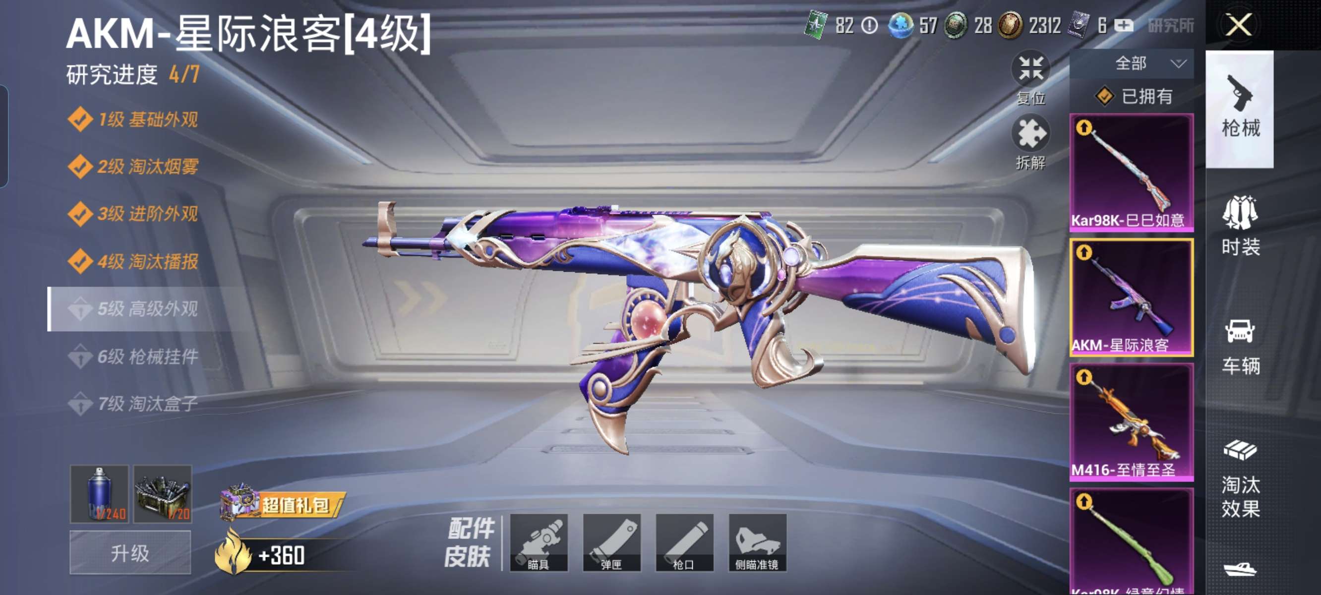 安卓qq-61级螳螂三车五特效-M416-至情至圣,AKM-星际浪客,Kar98K-绿意幻情