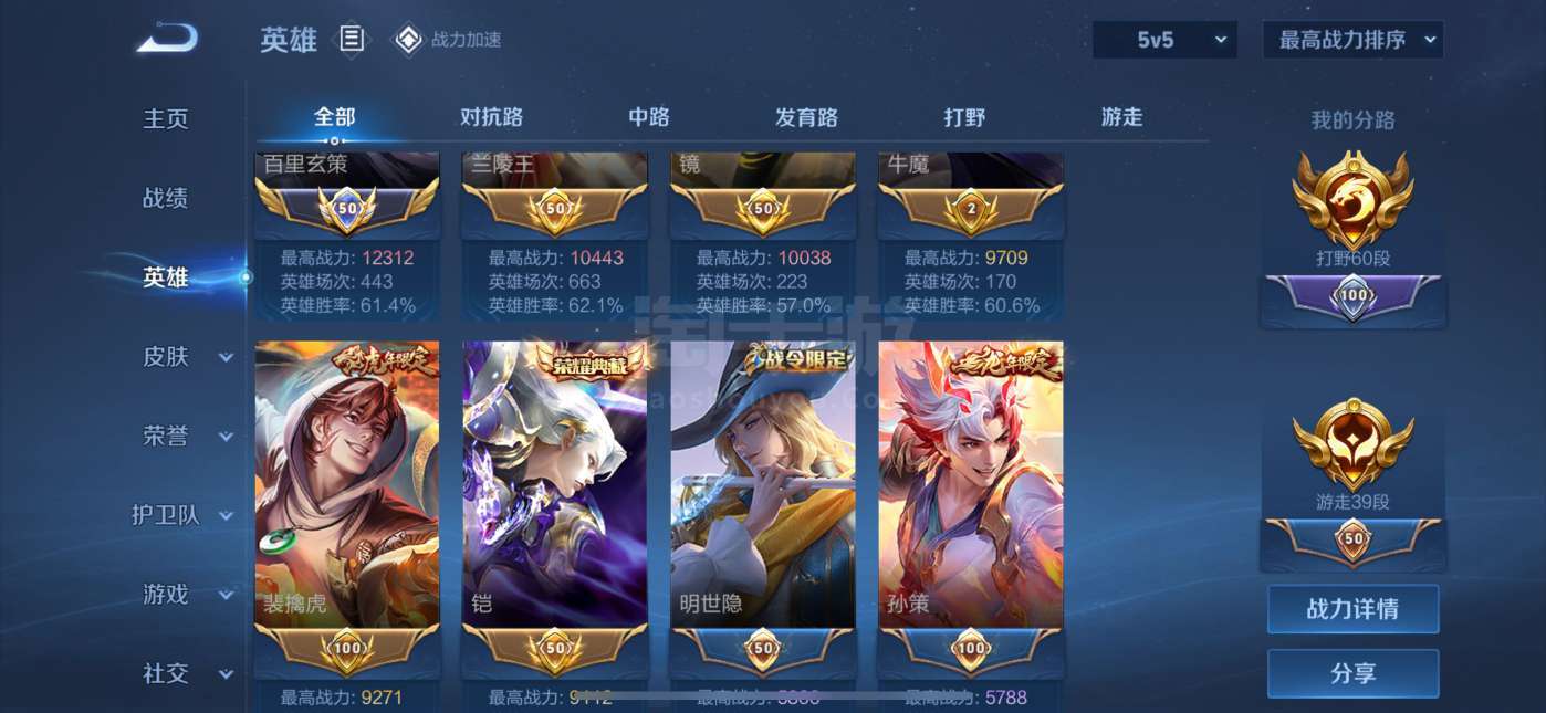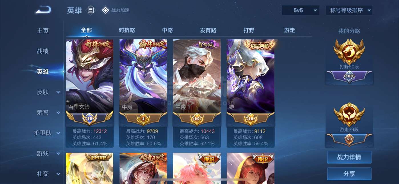 1.3w小国标钟无艳,1.2w小国标50强玄策,万战兰陵王镜60段打野,拖绑号介意勿扰可刀