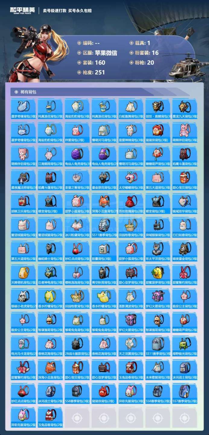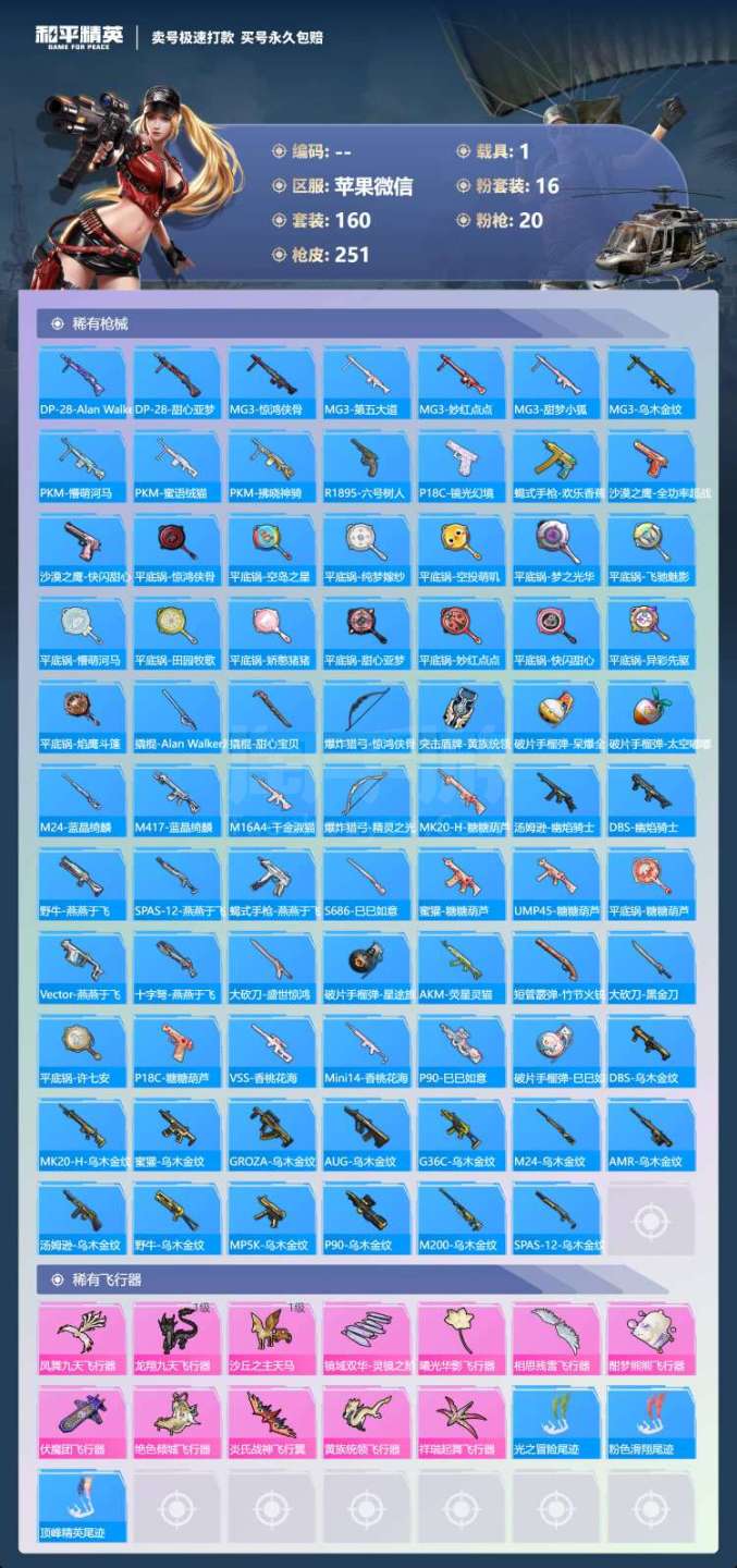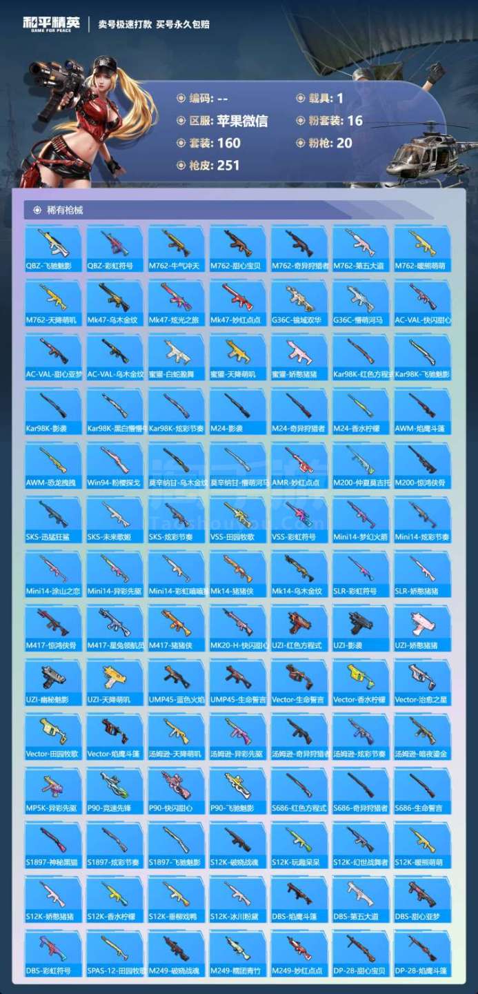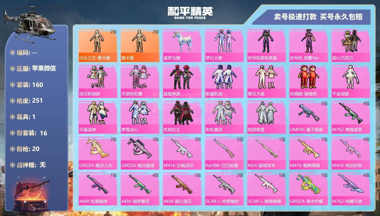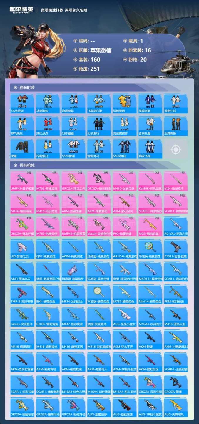 a3064/苹果微/-10王牌印记-16粉装-20特效枪-1载具-86687热力值-160套装-2