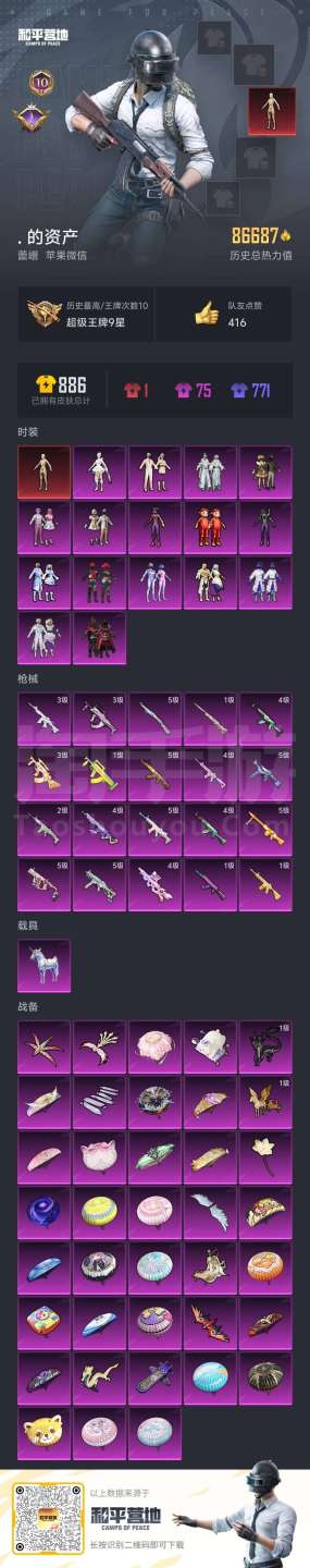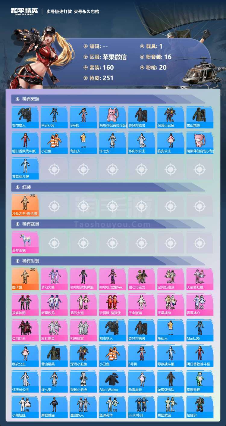 a3064/苹果微-10王牌印记-16粉装-20特效枪-1载具-86687热力值-160套装-2