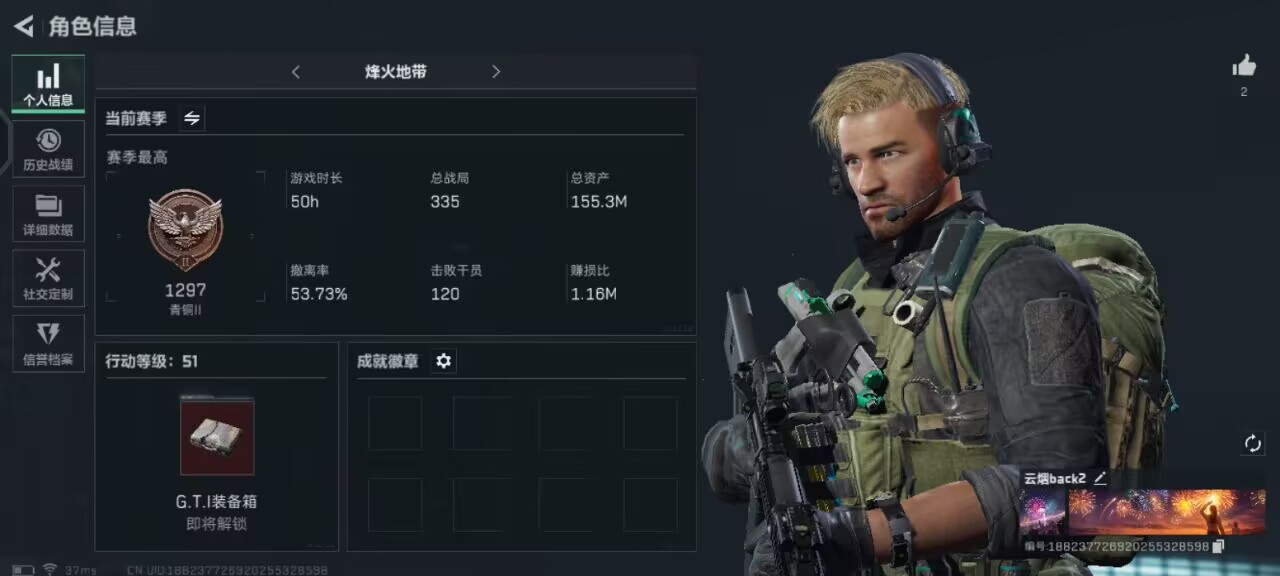 安卓q区不可二次 总资产155.3M 7729W哈夫币 380三角币