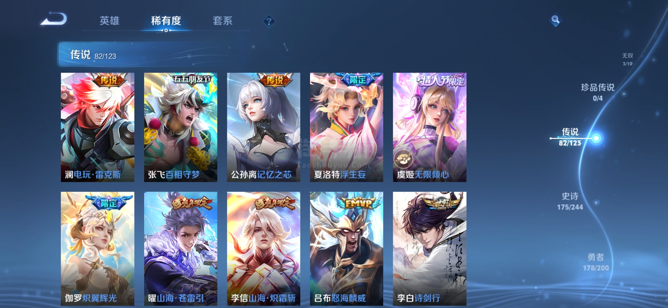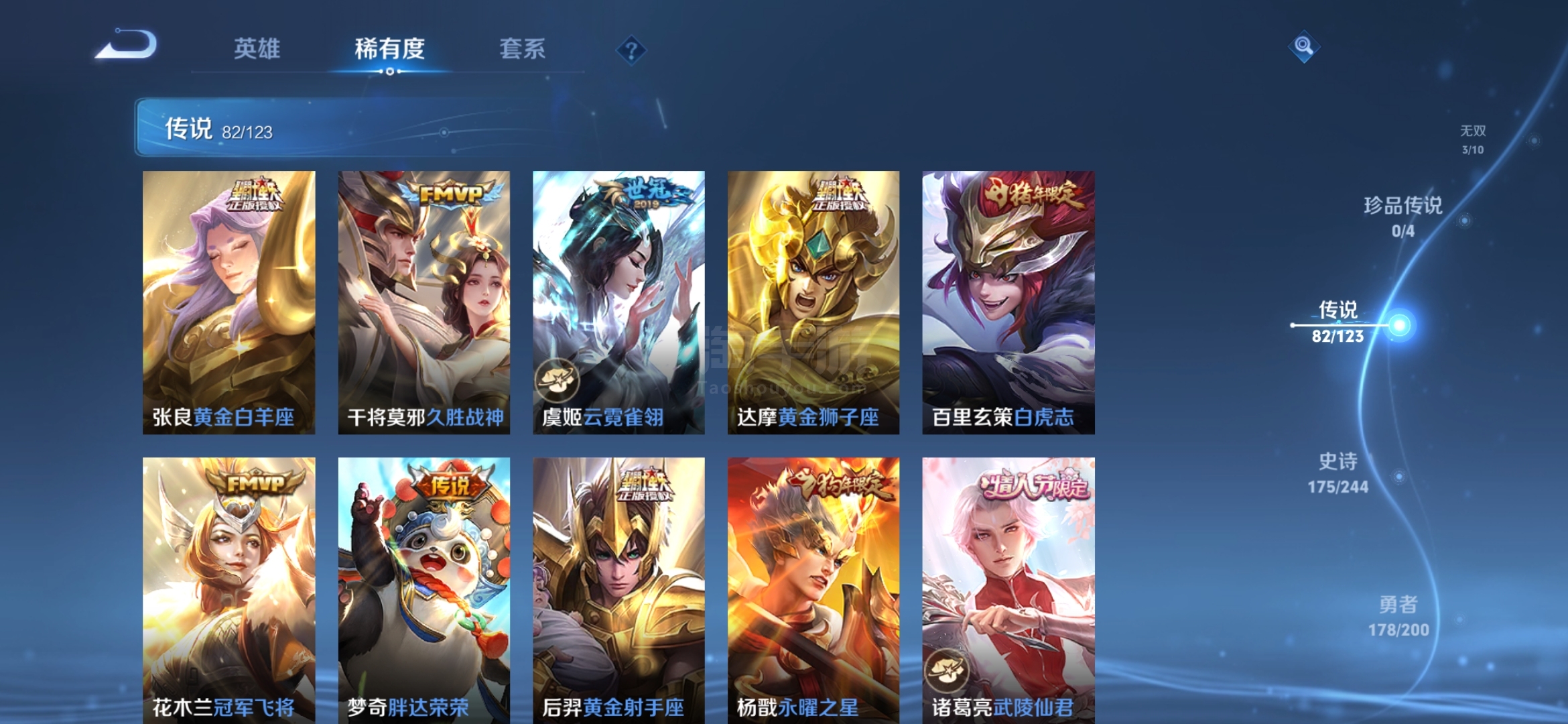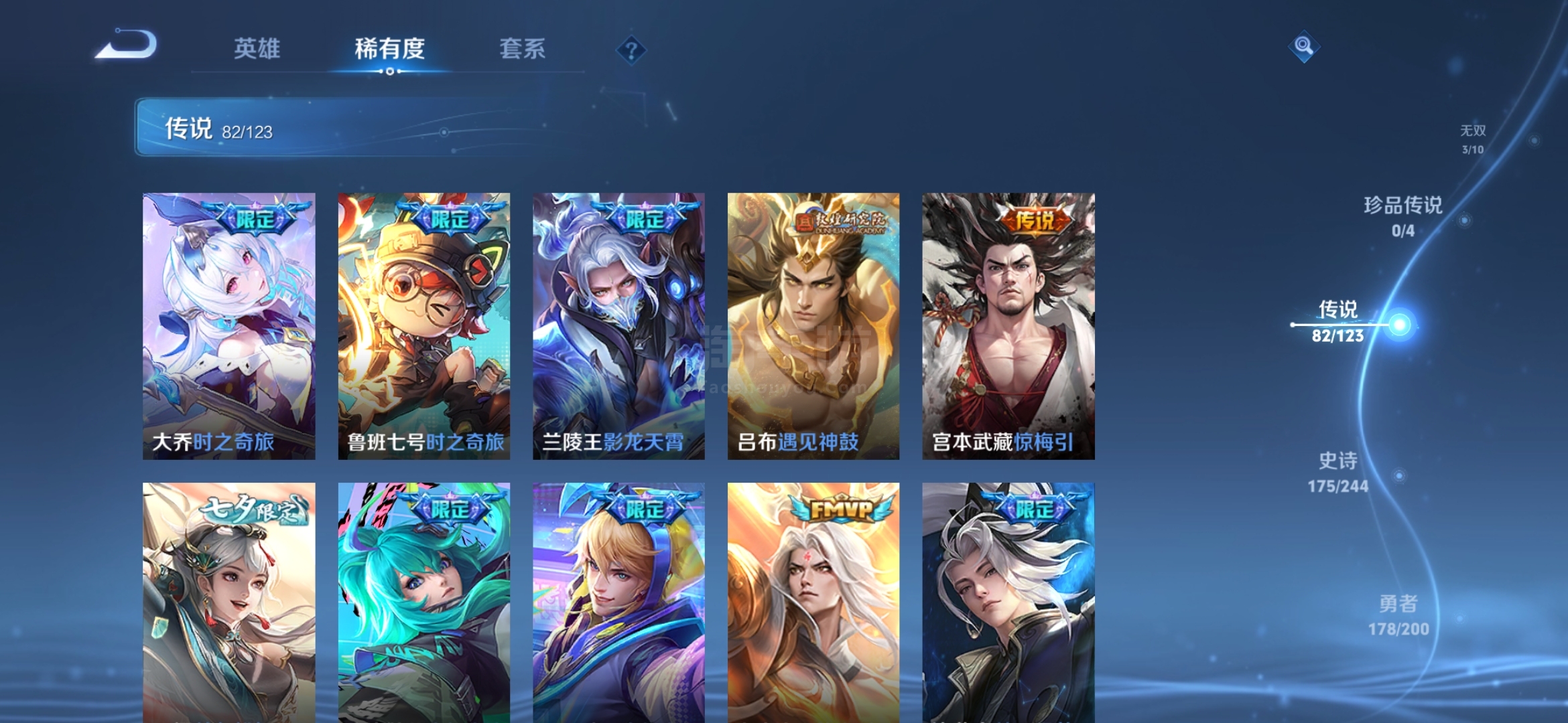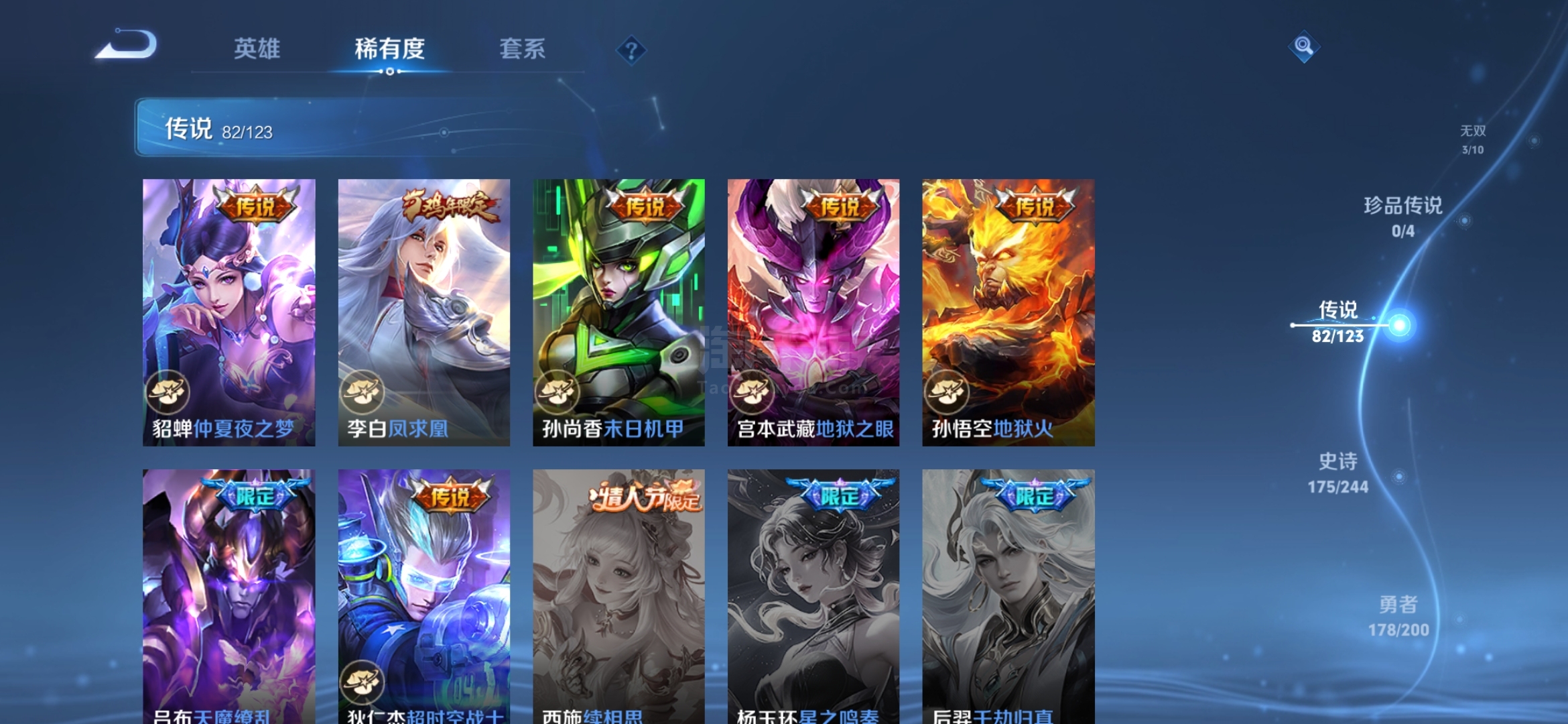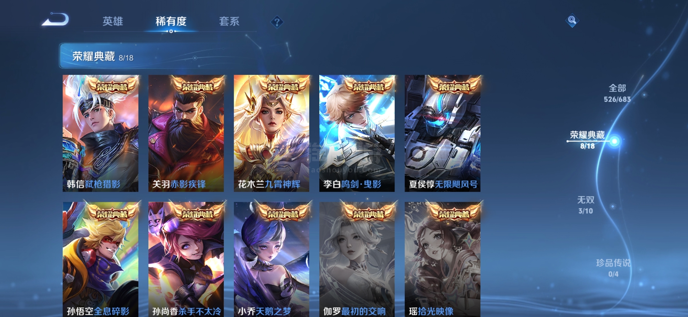 王者荣耀【安卓QQ】【526皮肤-8典藏-3无双-77传说 全铭文 v10】:安卓Q-V10-至尊