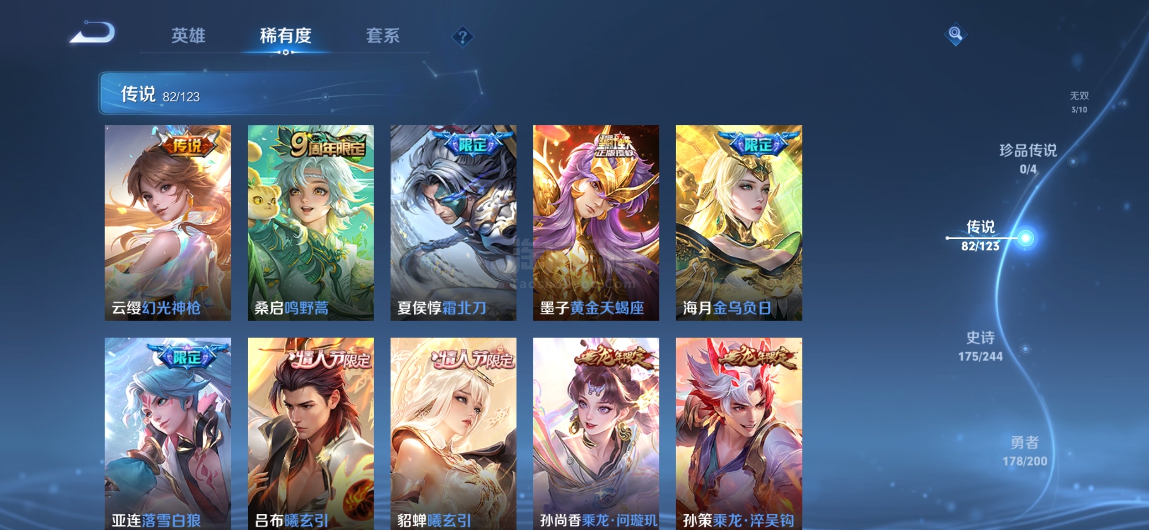 营地账号:328044064/【526皮肤-8典藏-3无双-77传说 全铭文 v10】:安卓Q-V10-至尊星耀IV段位-122英雄-526皮肤-8典藏-3无双-0珍品传说-77传说-168史诗