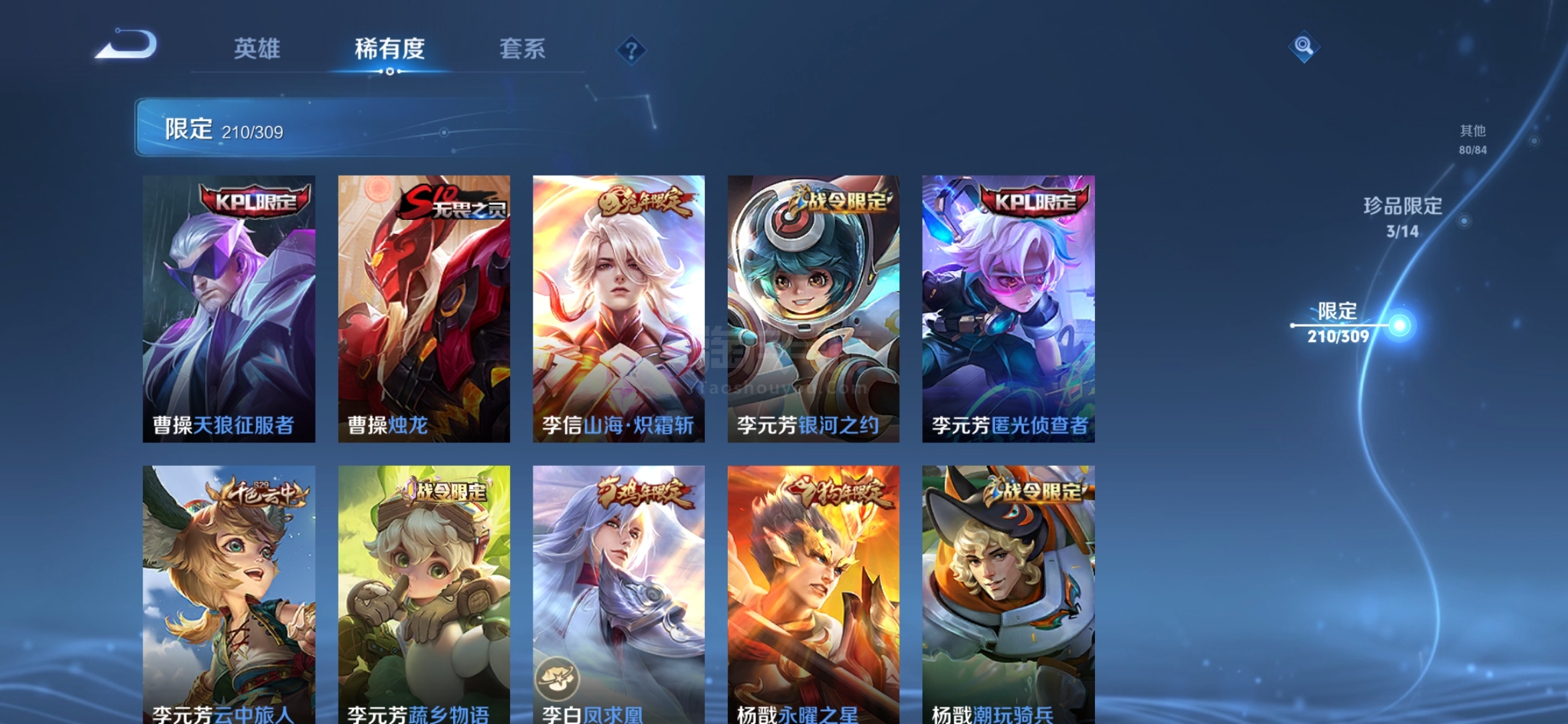 【荣耀典藏】:孙悟空全息碎影,夏侯惇无限飓风号,小乔天鹅之梦,孙尚香杀手不太冷,李白鸣剑曳影,花木兰九霄神辉,关羽赤影疾锋,韩信弑枪猎影