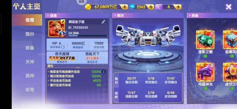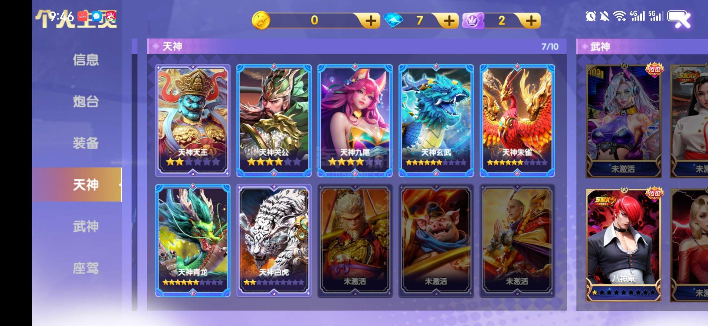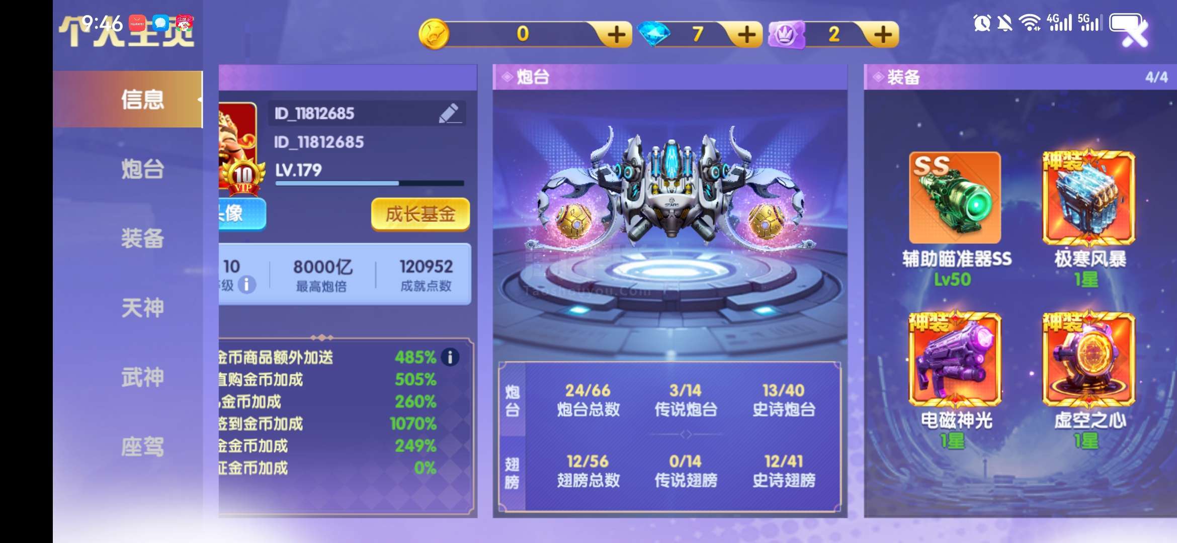 鱼乐达人【安卓华为】V10破产号便宜卖,三个神装,传说炮台好几个,传说武神3个