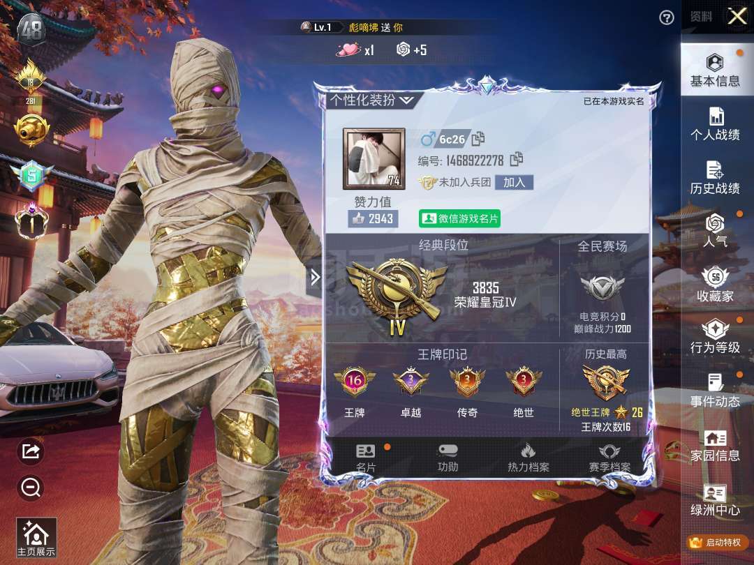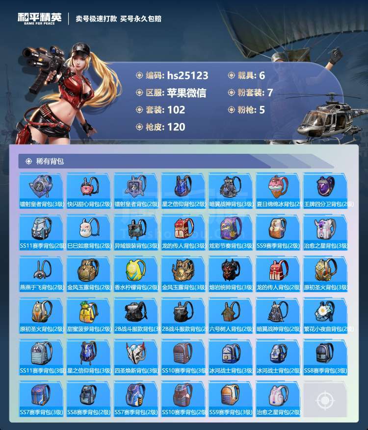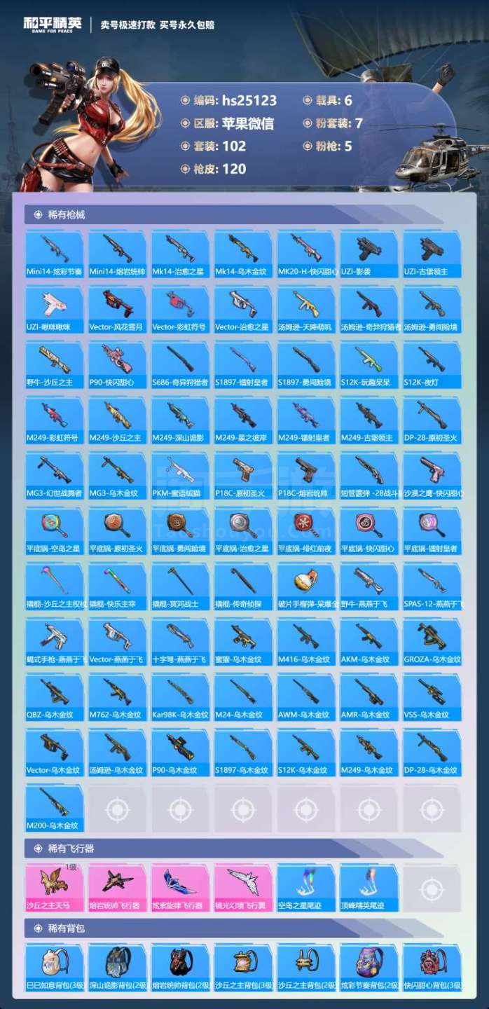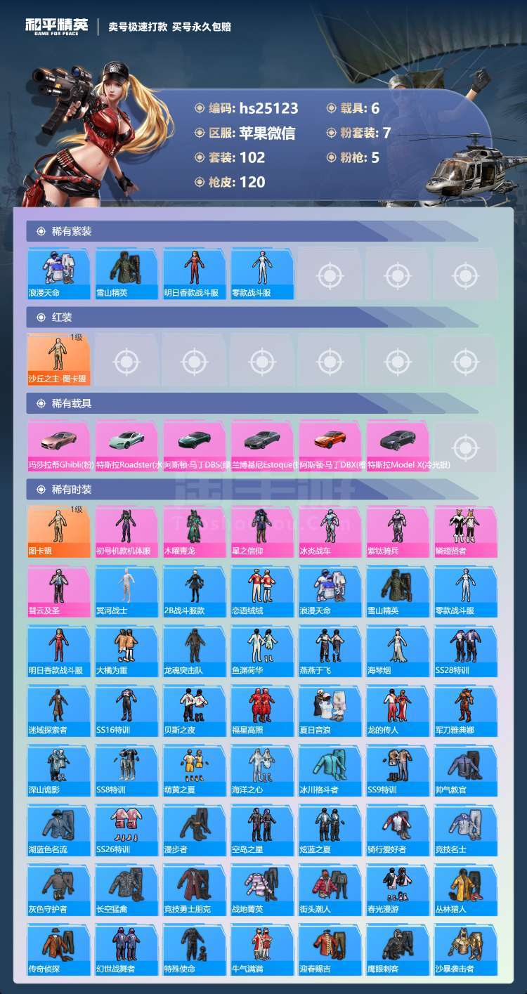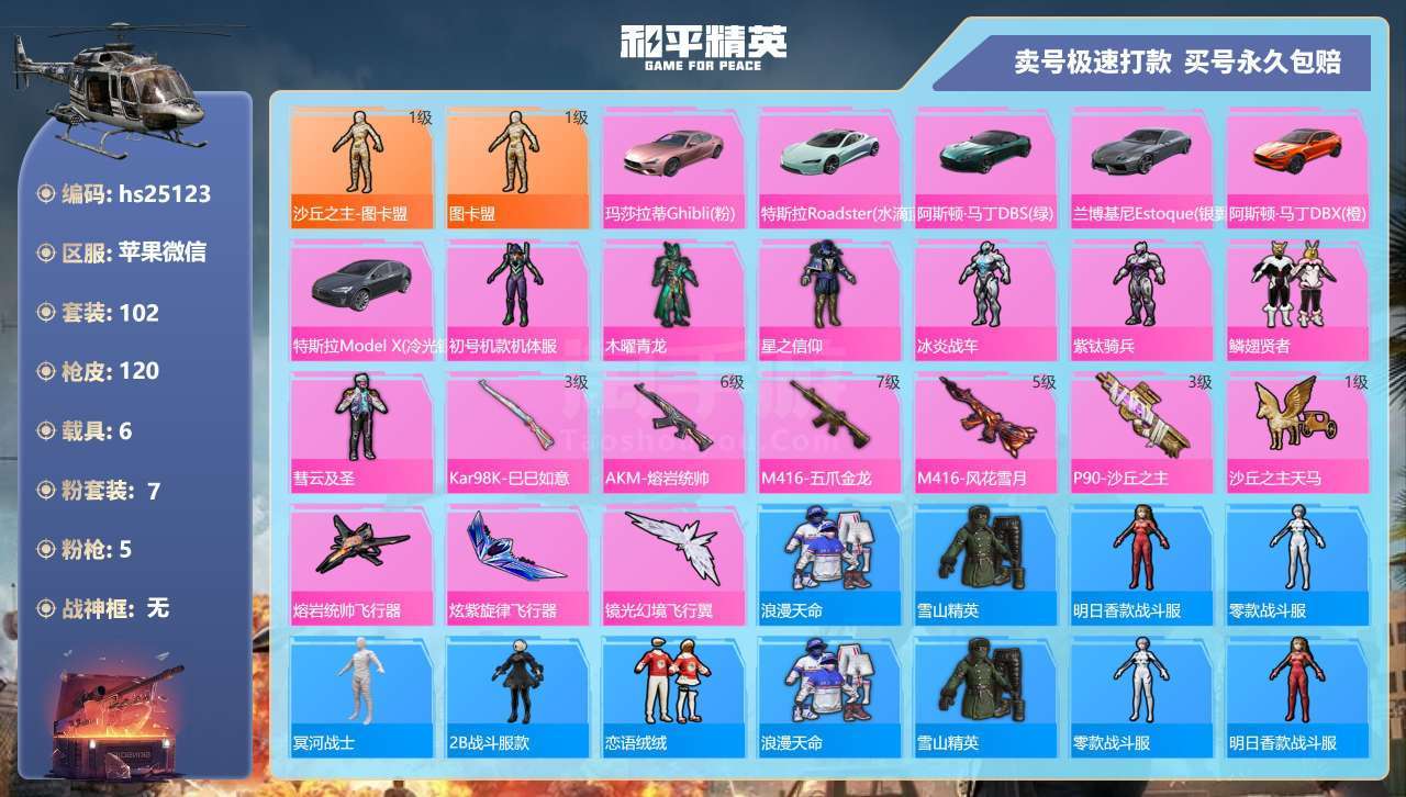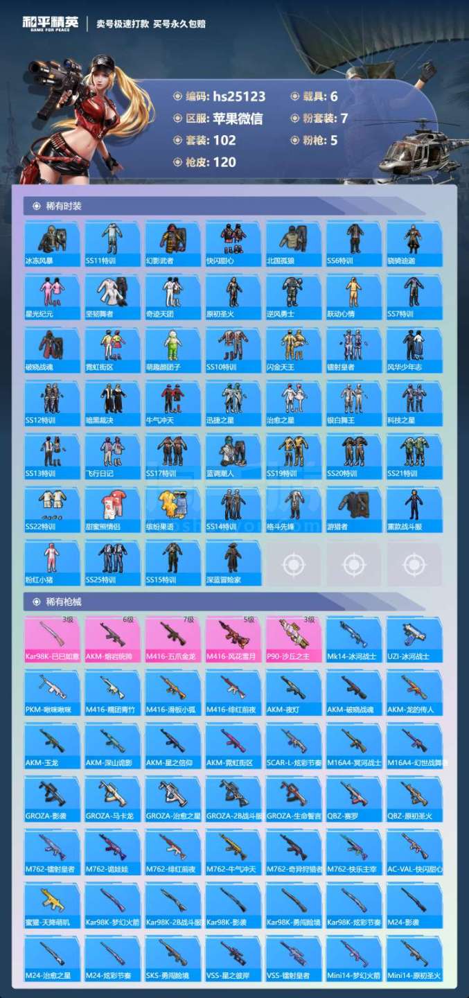 hs25123 苹果V-50753热力值 16王牌印记 历史绝世王牌26星 102套装 120枪皮