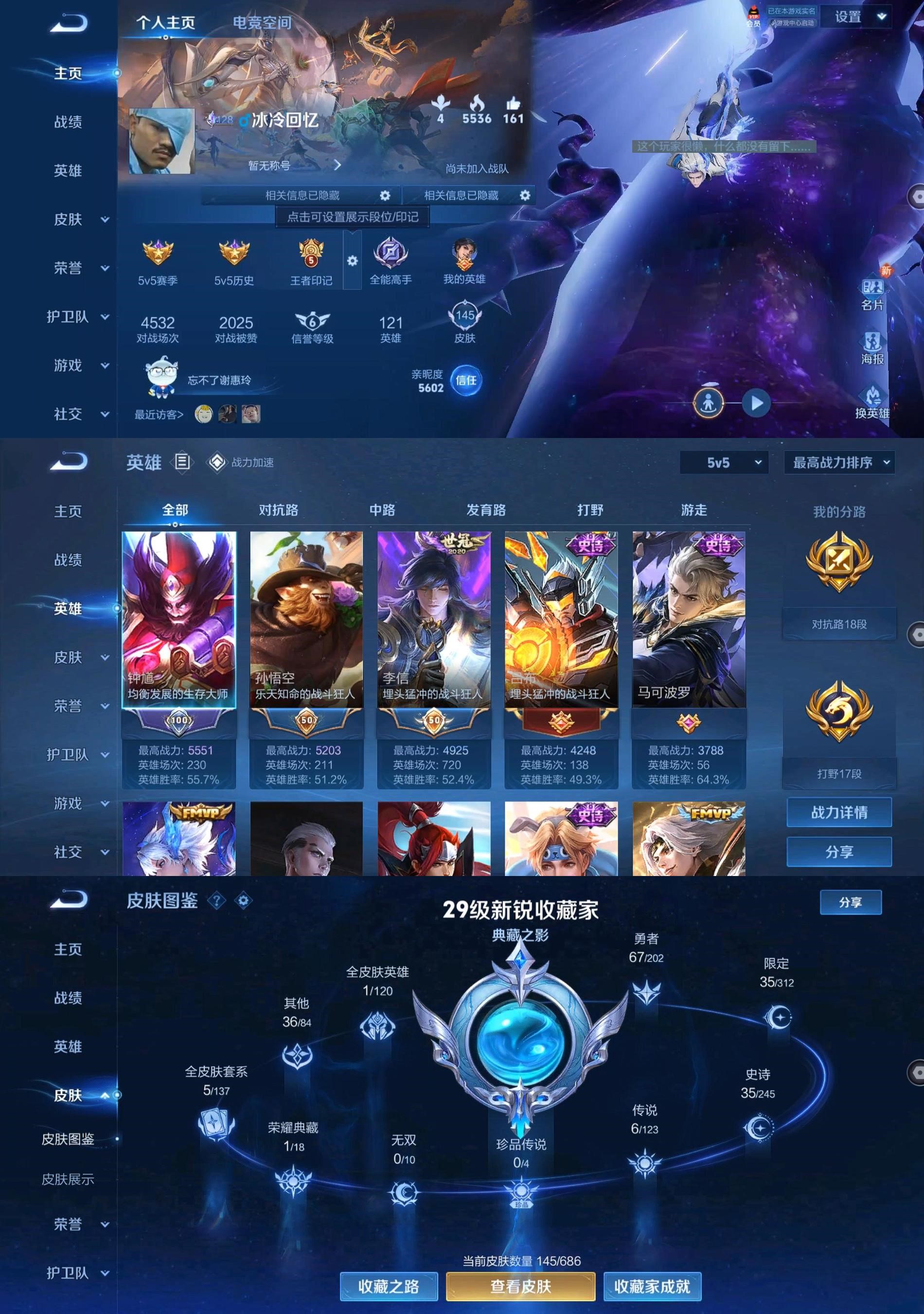 [王者荣耀]V61典藏6传说35史诗145皮肤绝世王者