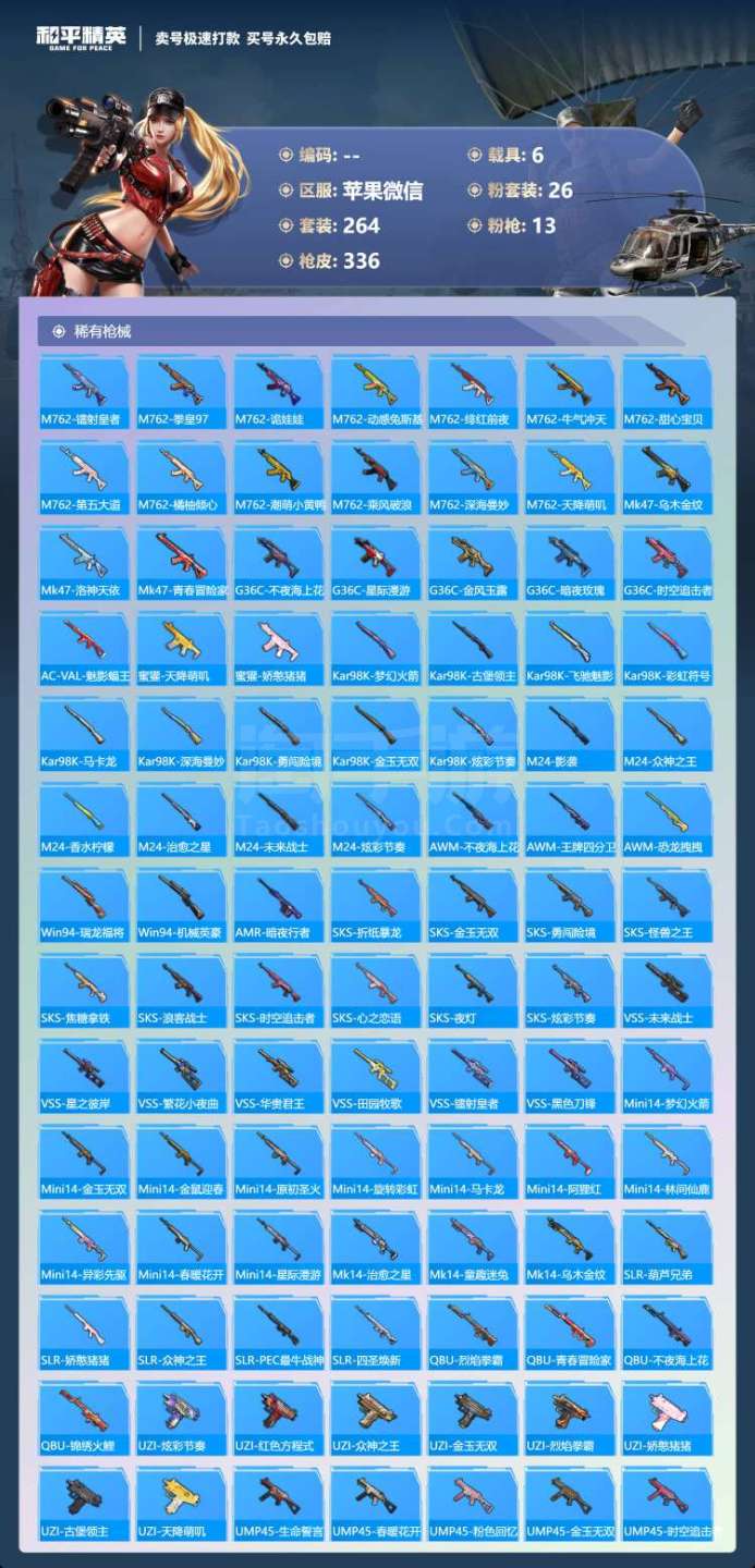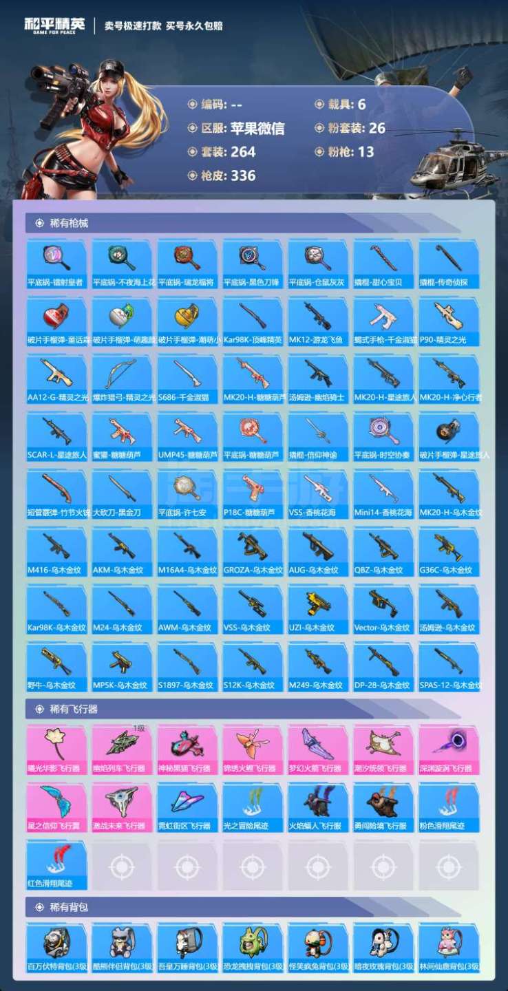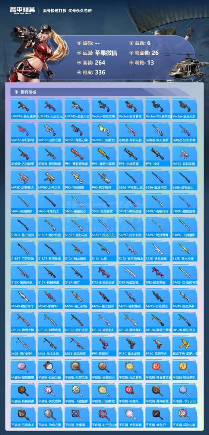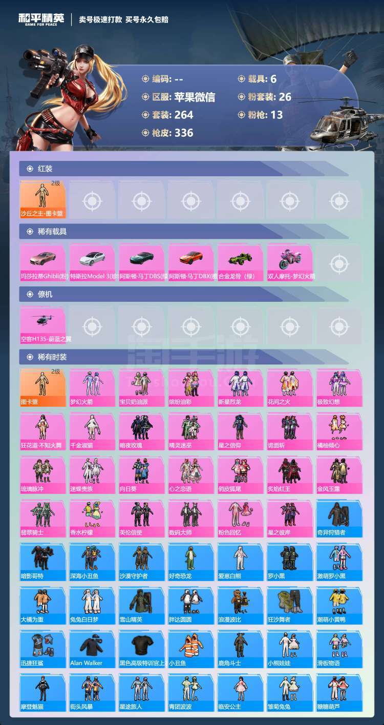 a2949/苹果微/-18王牌印记-26粉装-13特效枪-6载具-131167热力值-264套装-