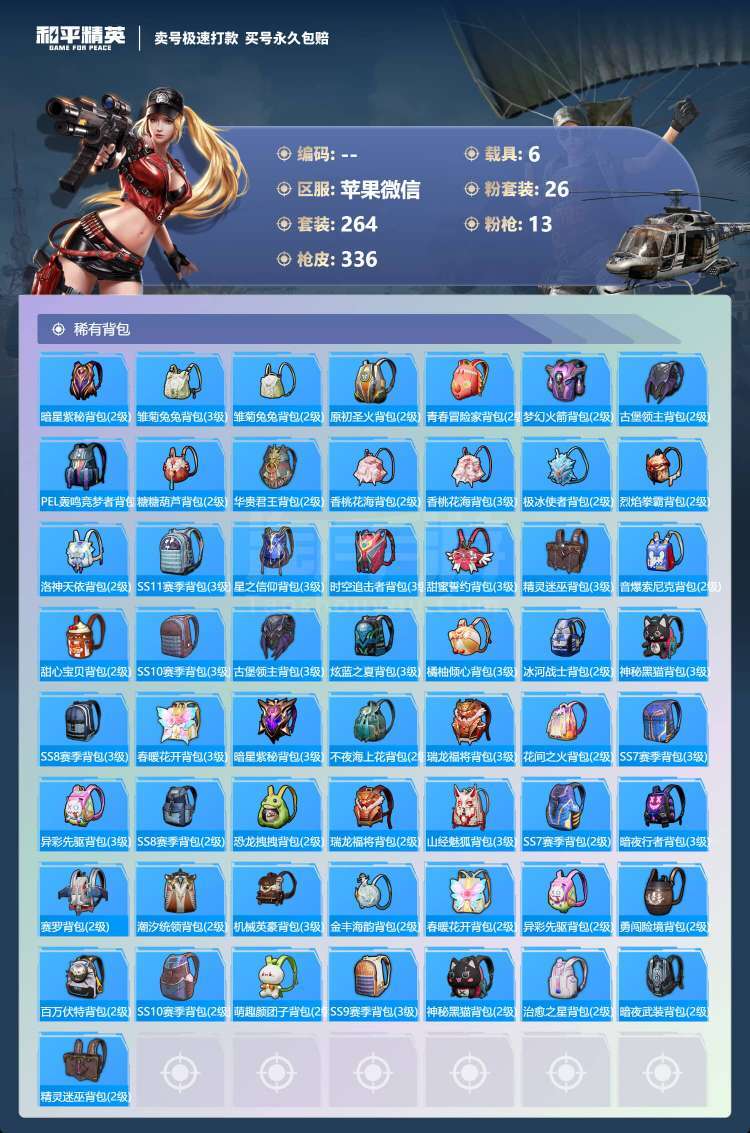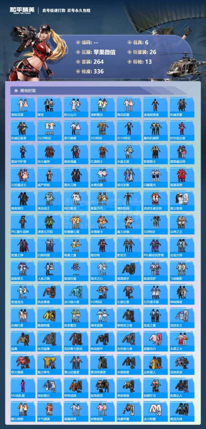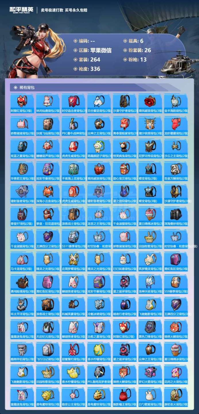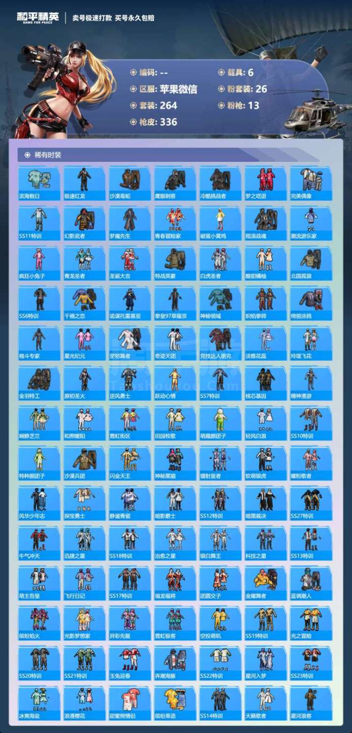 a2949/苹果微/-18王牌印记-26粉装-13特效枪-6载具-131167热力值-264套装-