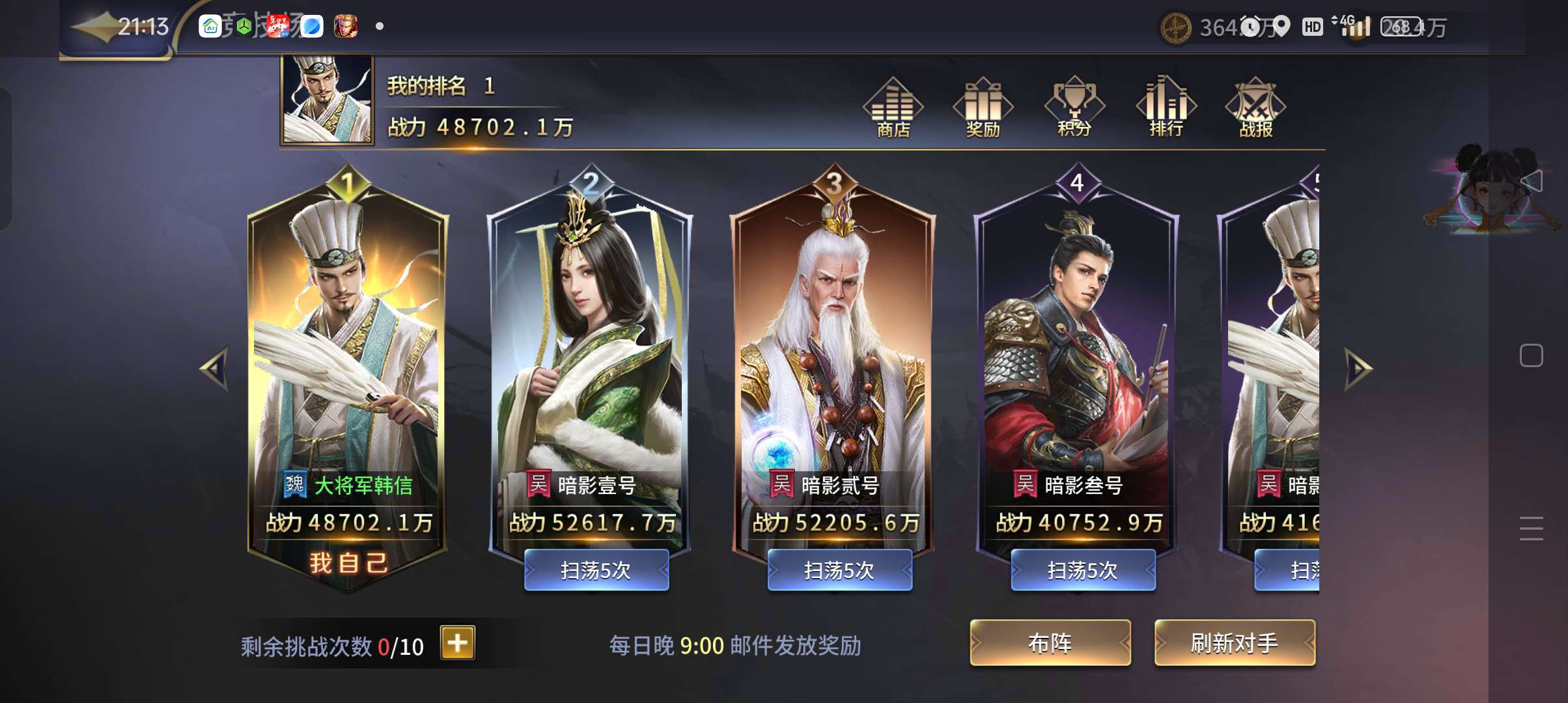 能打能抗,买到赚到,古将全,盖世古将全,竞技场排行第一,三星诸葛,