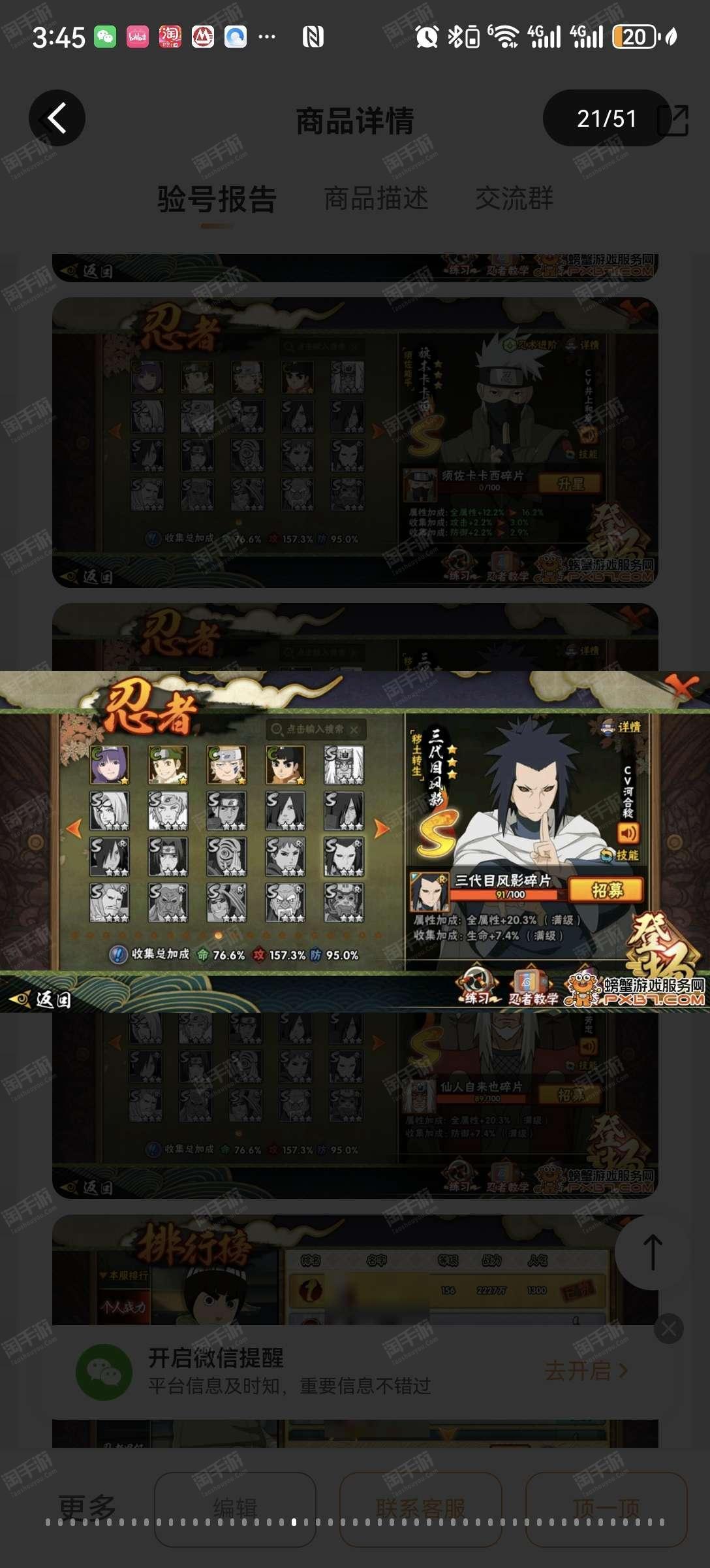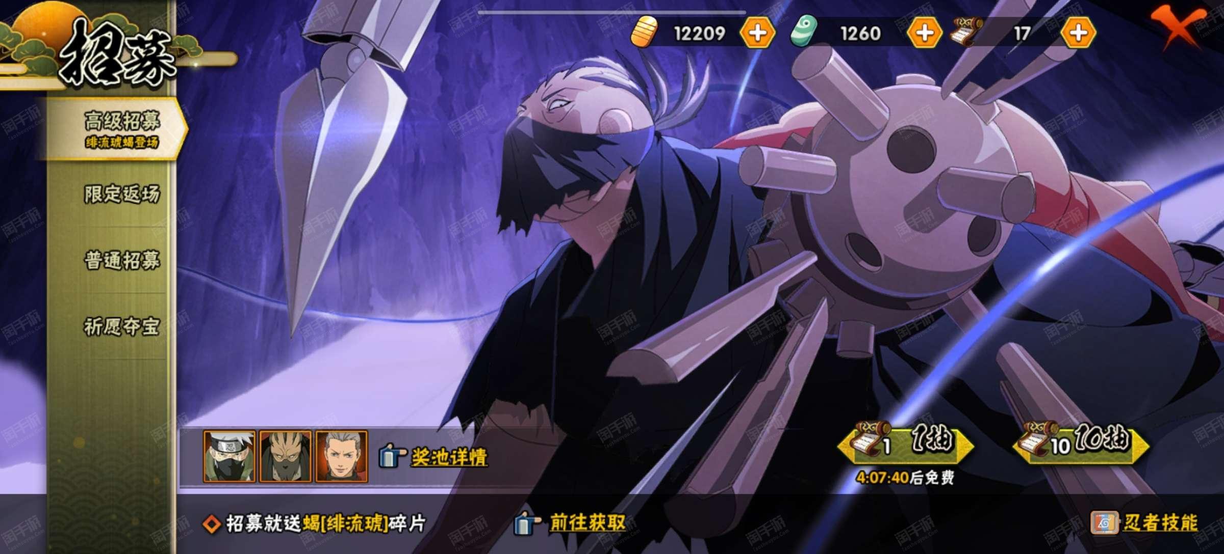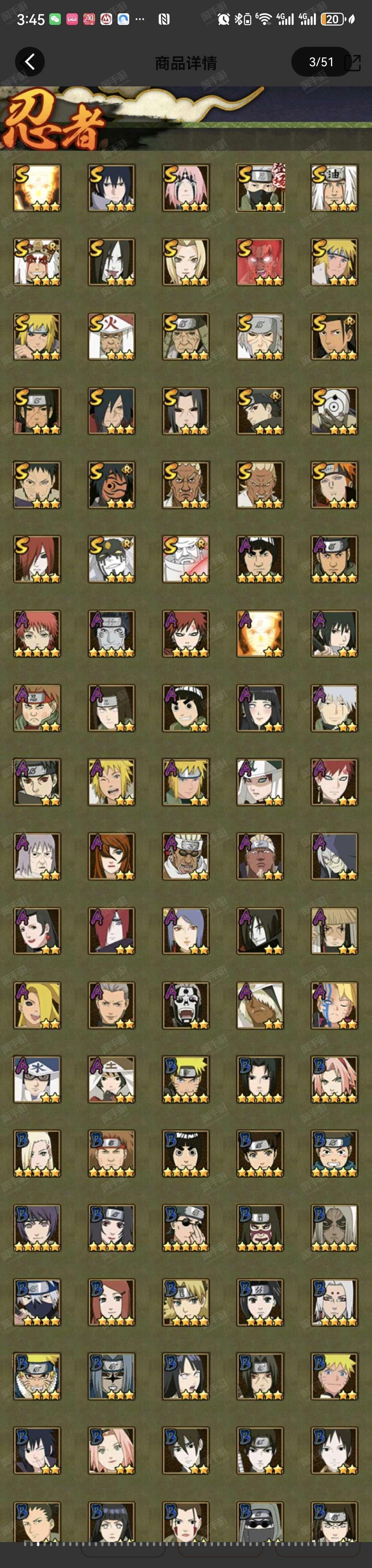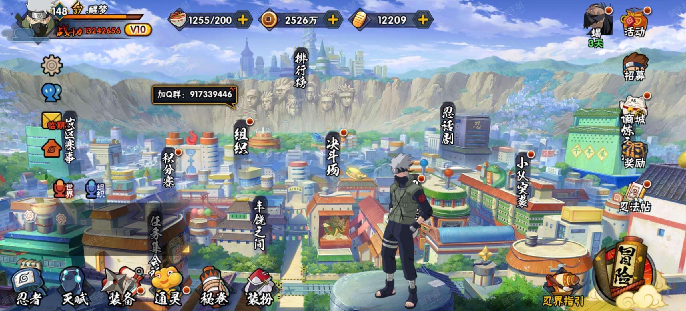 火影忍者【安卓QQ】卡卡西已出,金币12000月卡5000,17高招卷,三代风91仙自95,已买忍法帖点券1260
