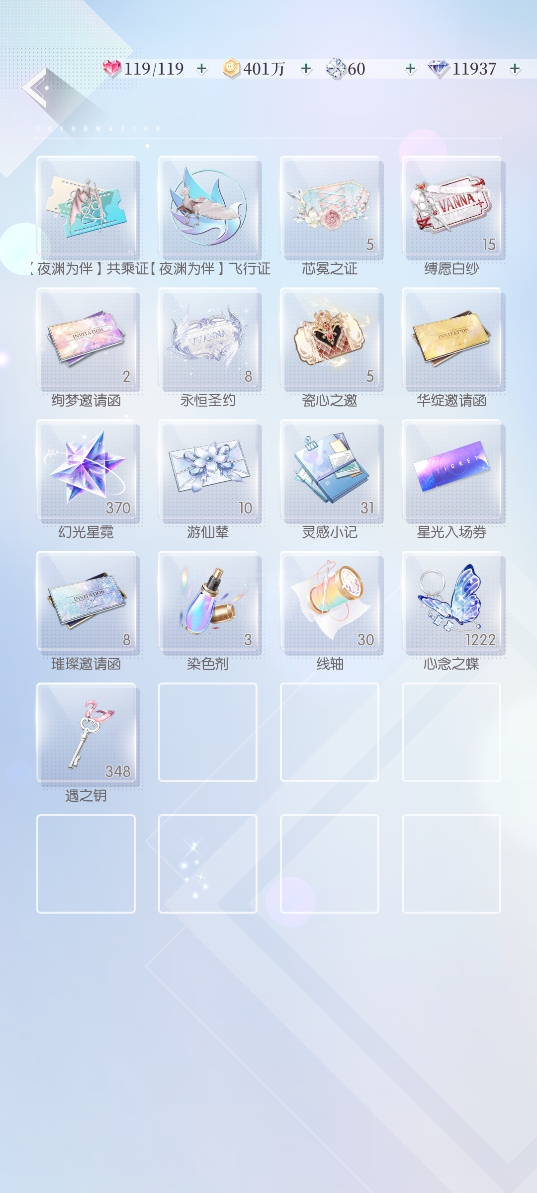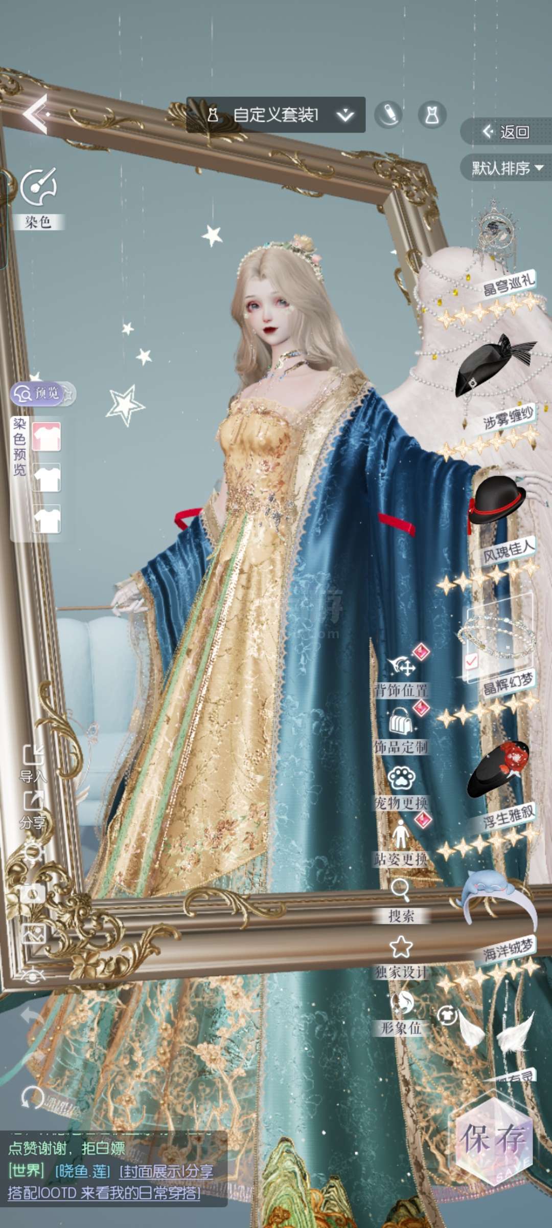 拥有35件6星时装,140件5星时装,218件4星时装,189件3星时装,以及19套4星套装