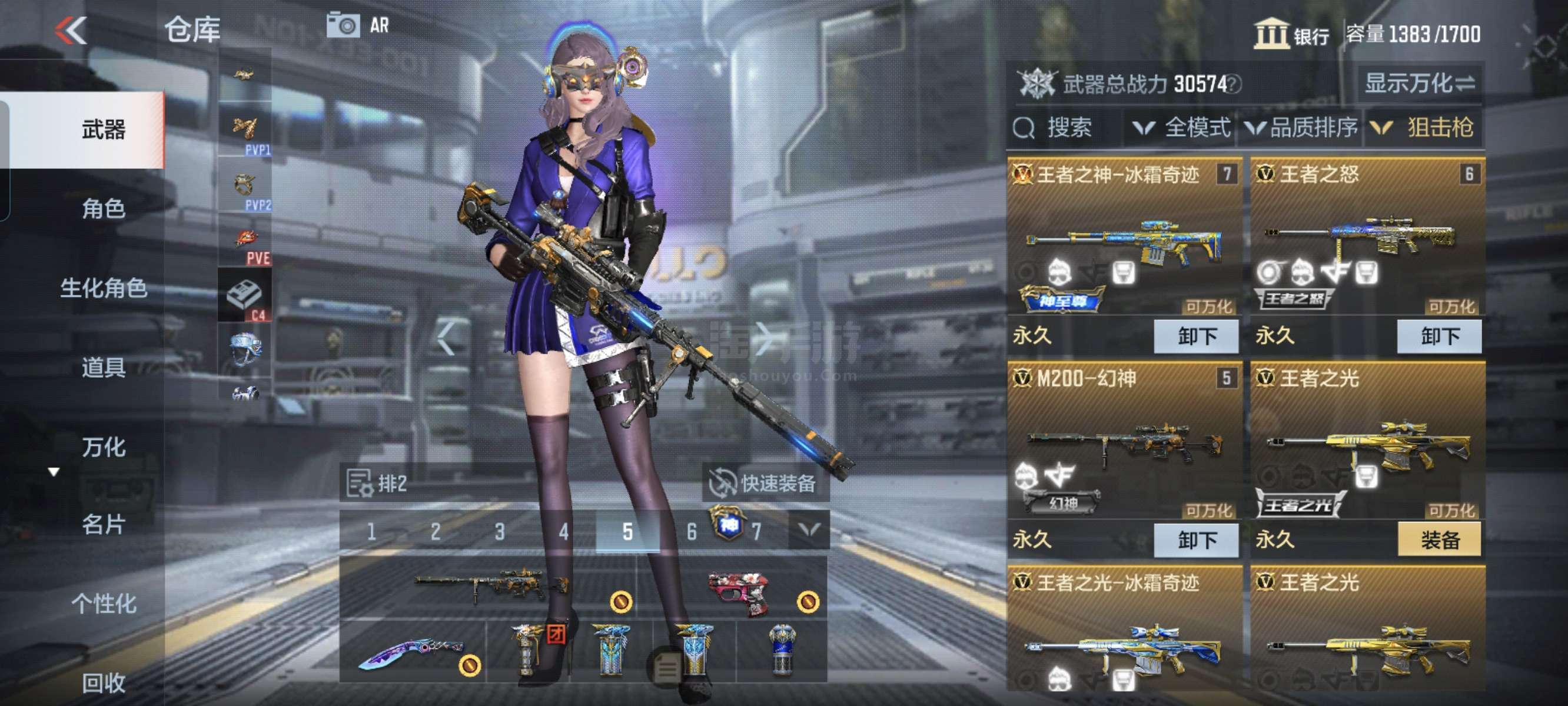 王神套、星象套、5套王者雷带皮肤。王怒,王光,m200等王者武器多多