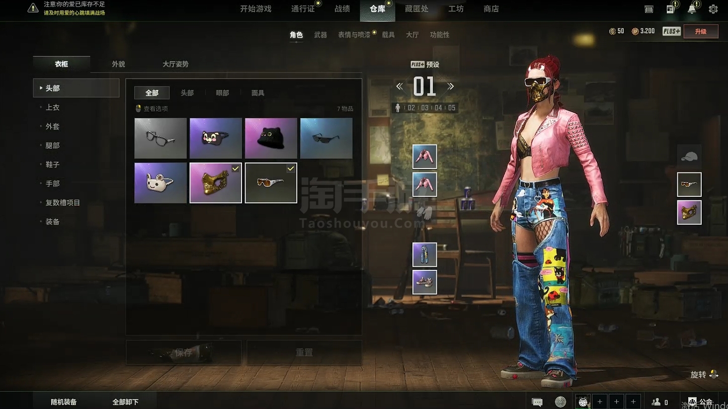 B68t 2成长 无信号M4 成长98K 金色滑雪镜 金面 猎手猫 虎头夹克 可爱睡衣 2车皮 卡通袭击 经典特工