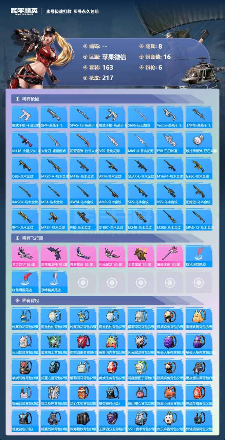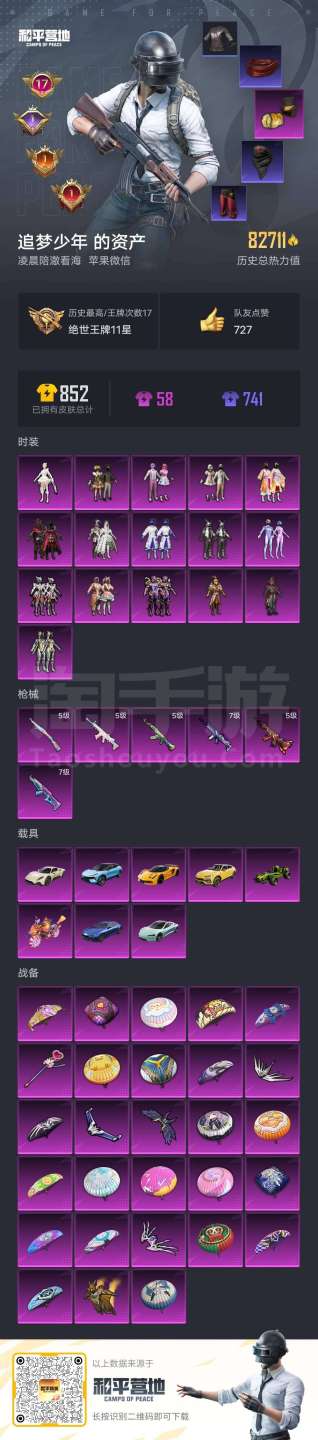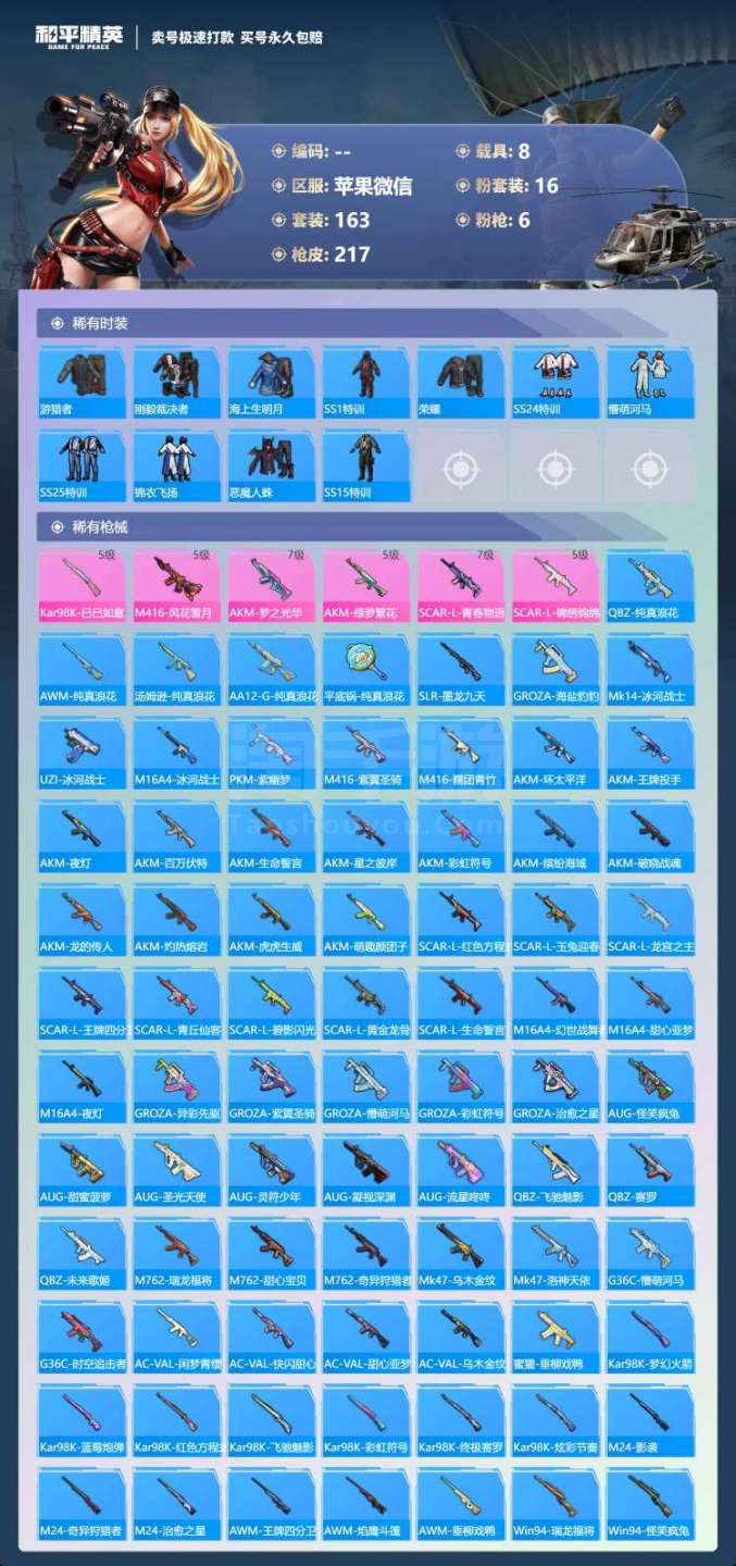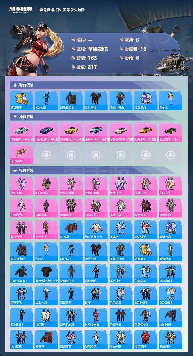 a3155/苹果微/S1赛事巡查员/-17王牌印记-16粉装-6特效枪-8载具-82711热力值-