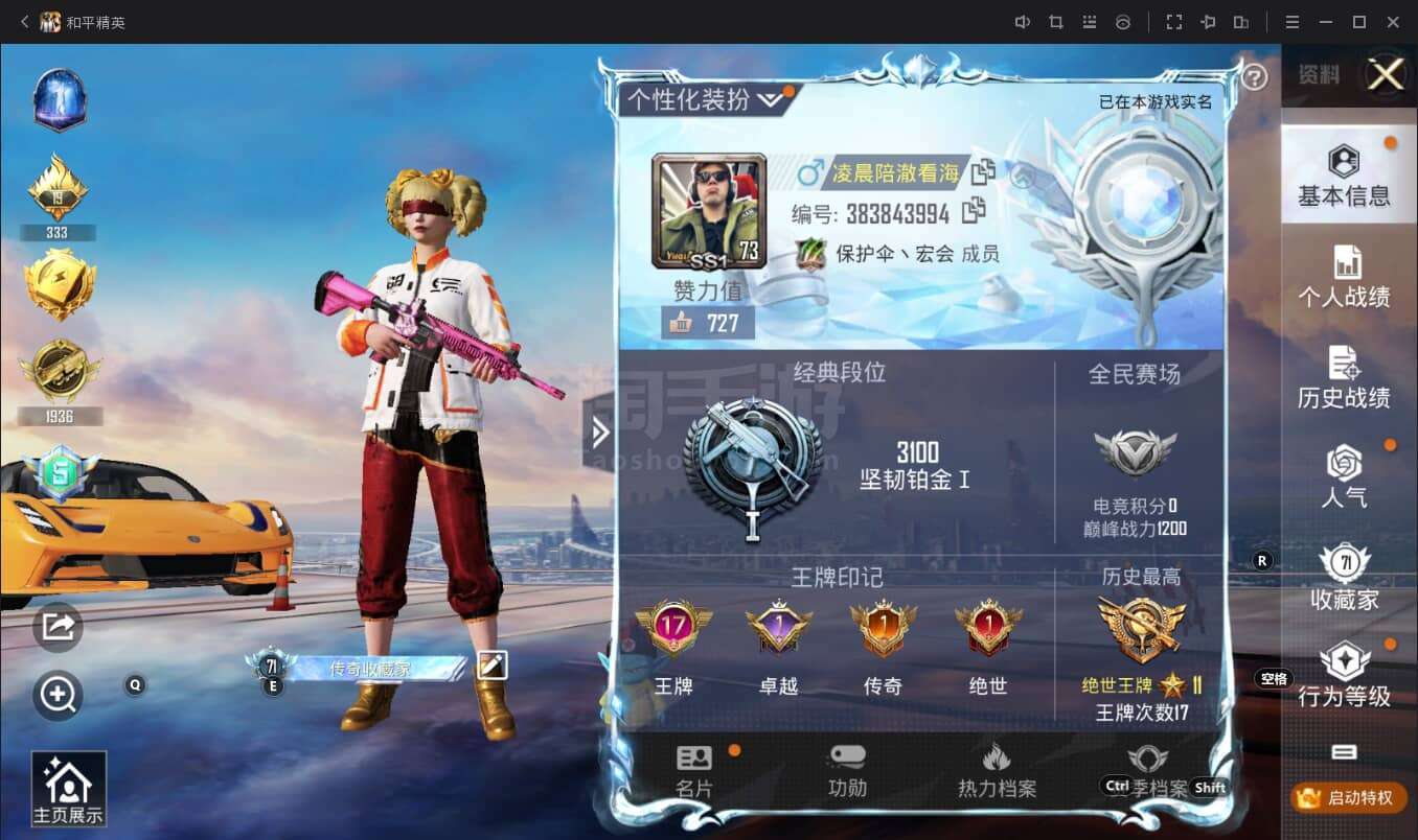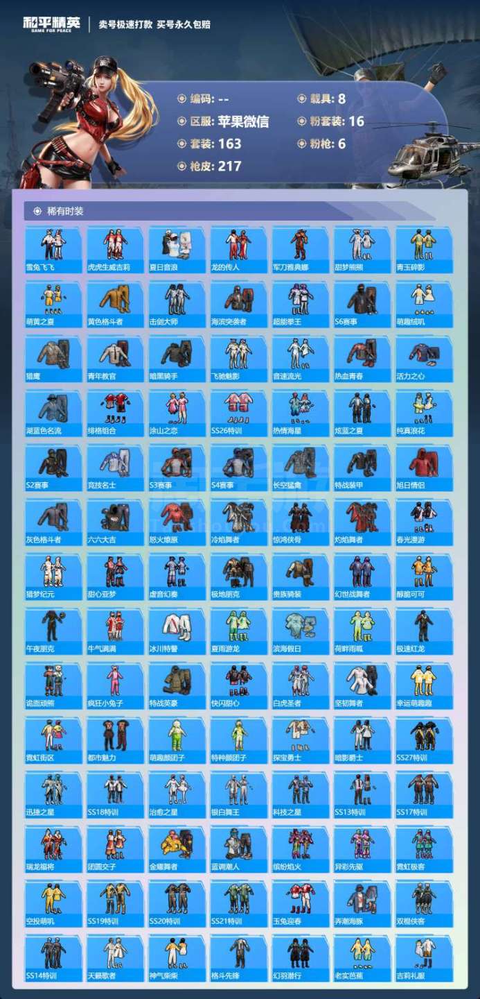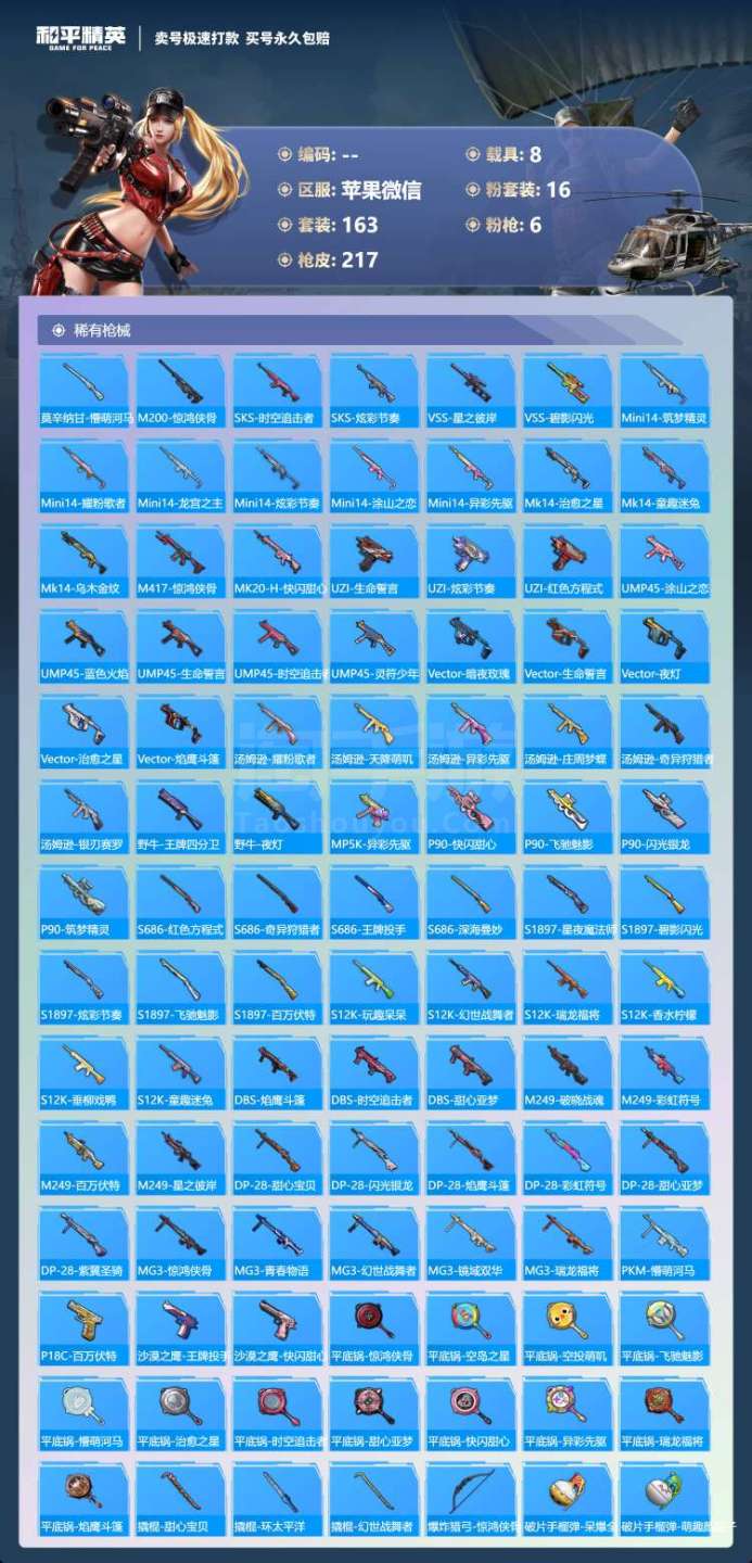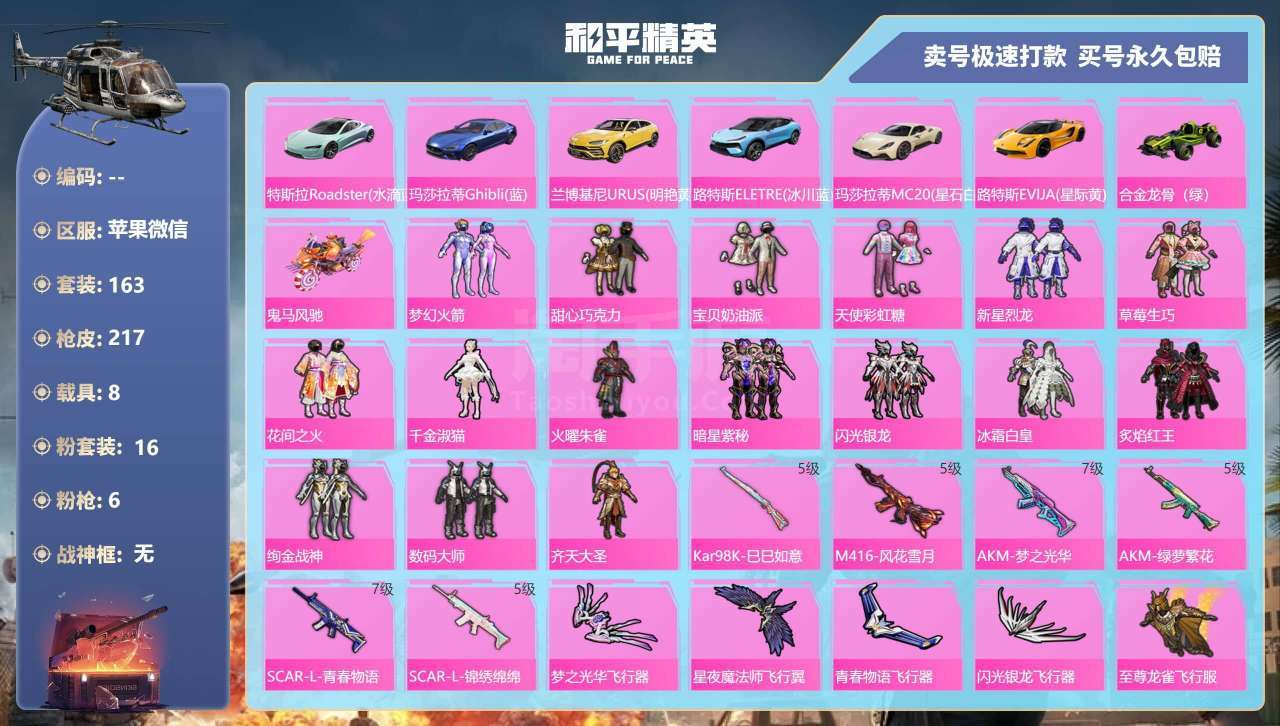 a3155/苹果微/S1赛事巡查员/-17王牌印记-16粉装-6特效枪-8载具-82711热力值-