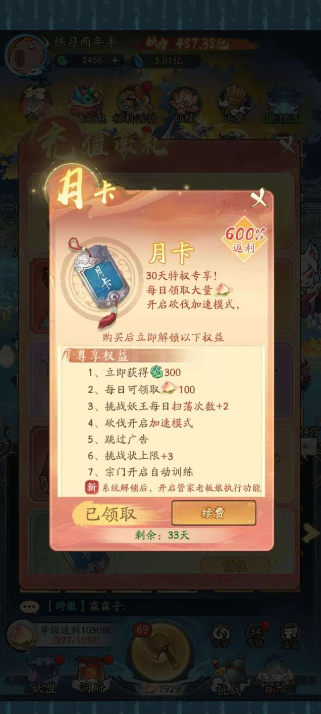 金仙480e微氪账号,只有月卡无终身,十几个金仙友,一个月的仙官每天可领上千玉,看得上的来