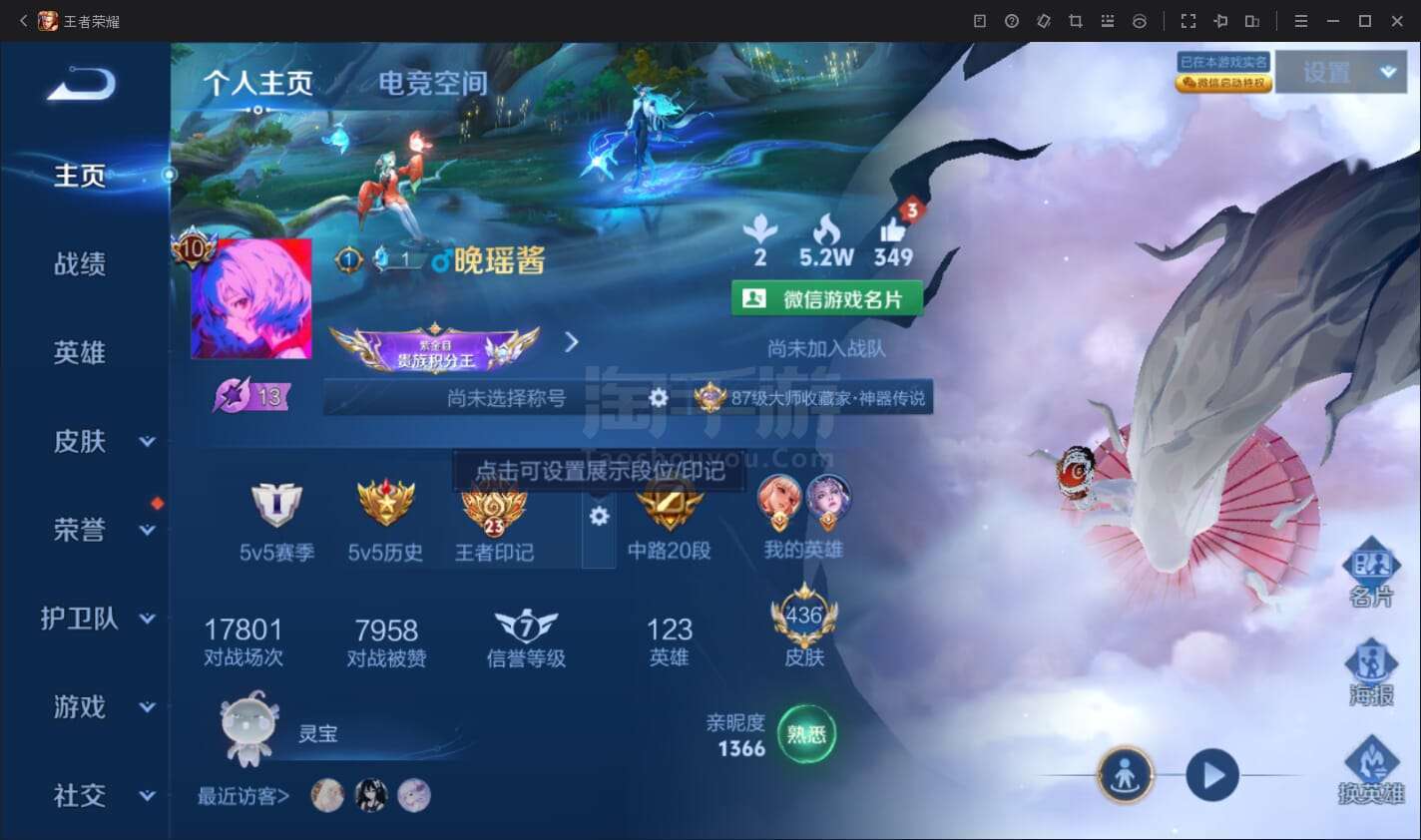 王者荣耀【苹果微信】WZ764苹果V/不可二次/营地号2126440661-贵族10-贵族积分30万-123英雄-436