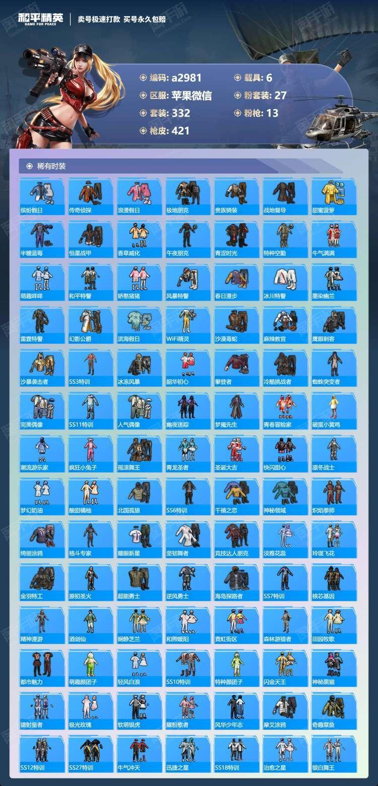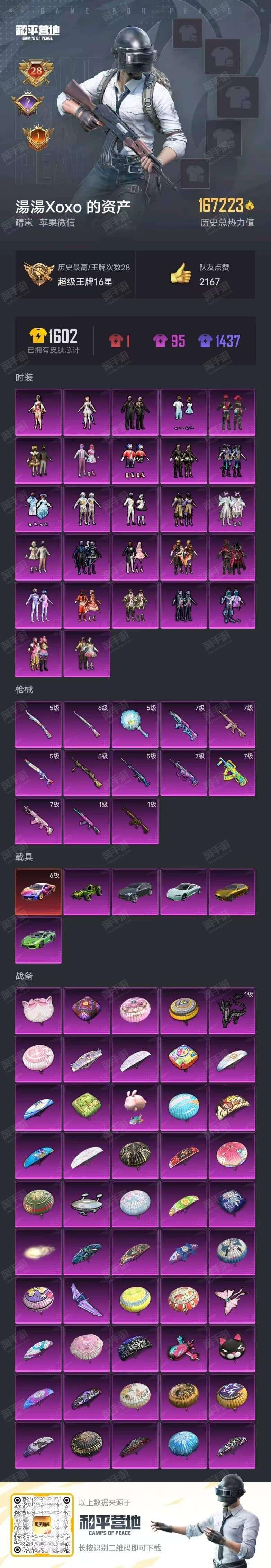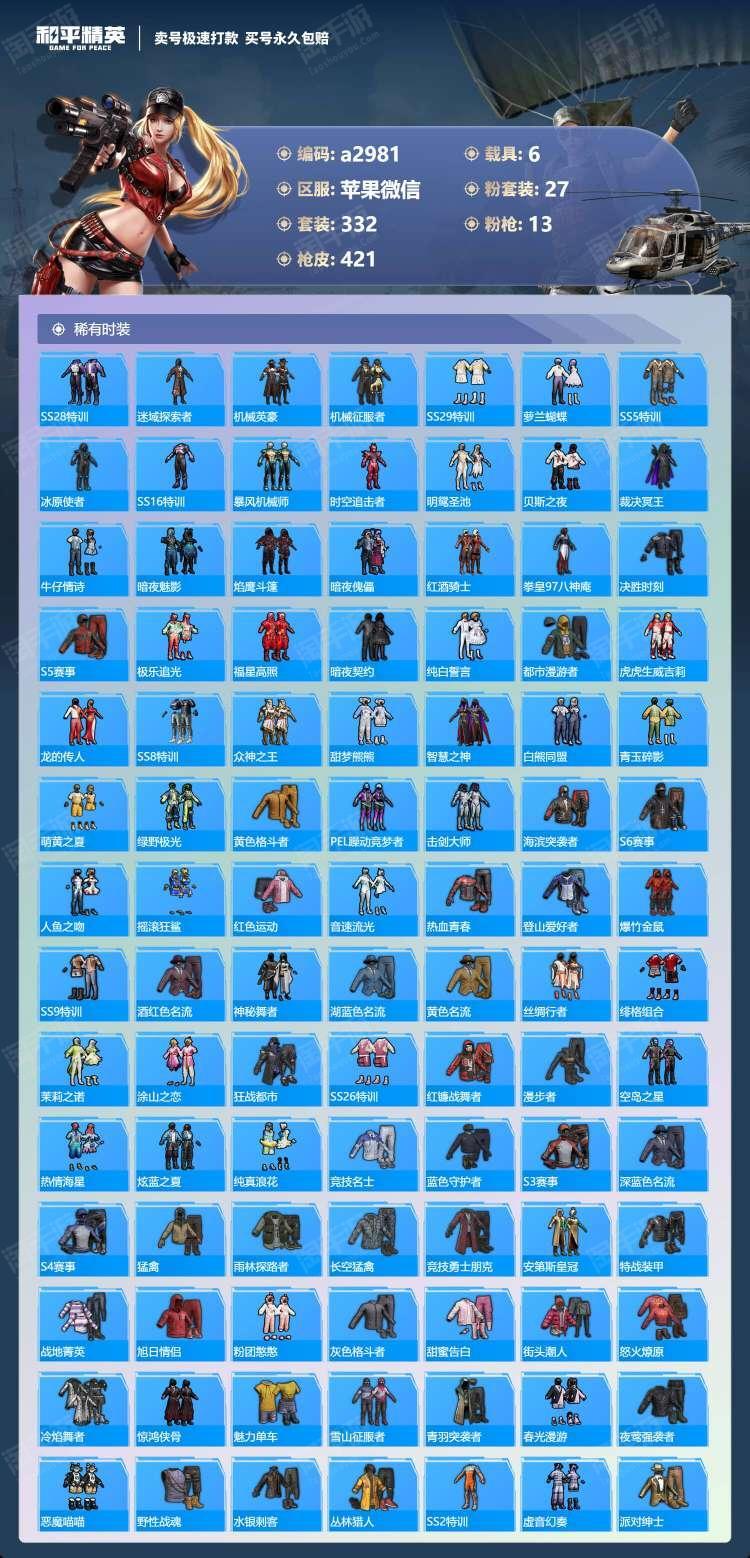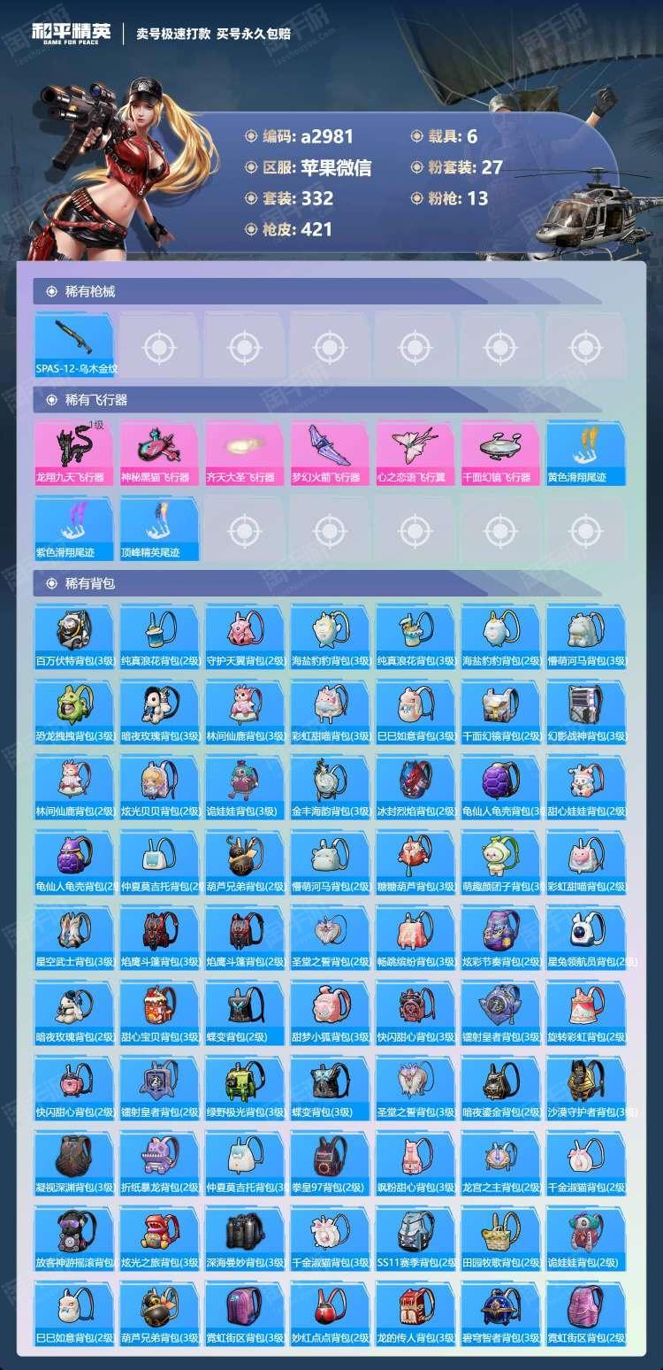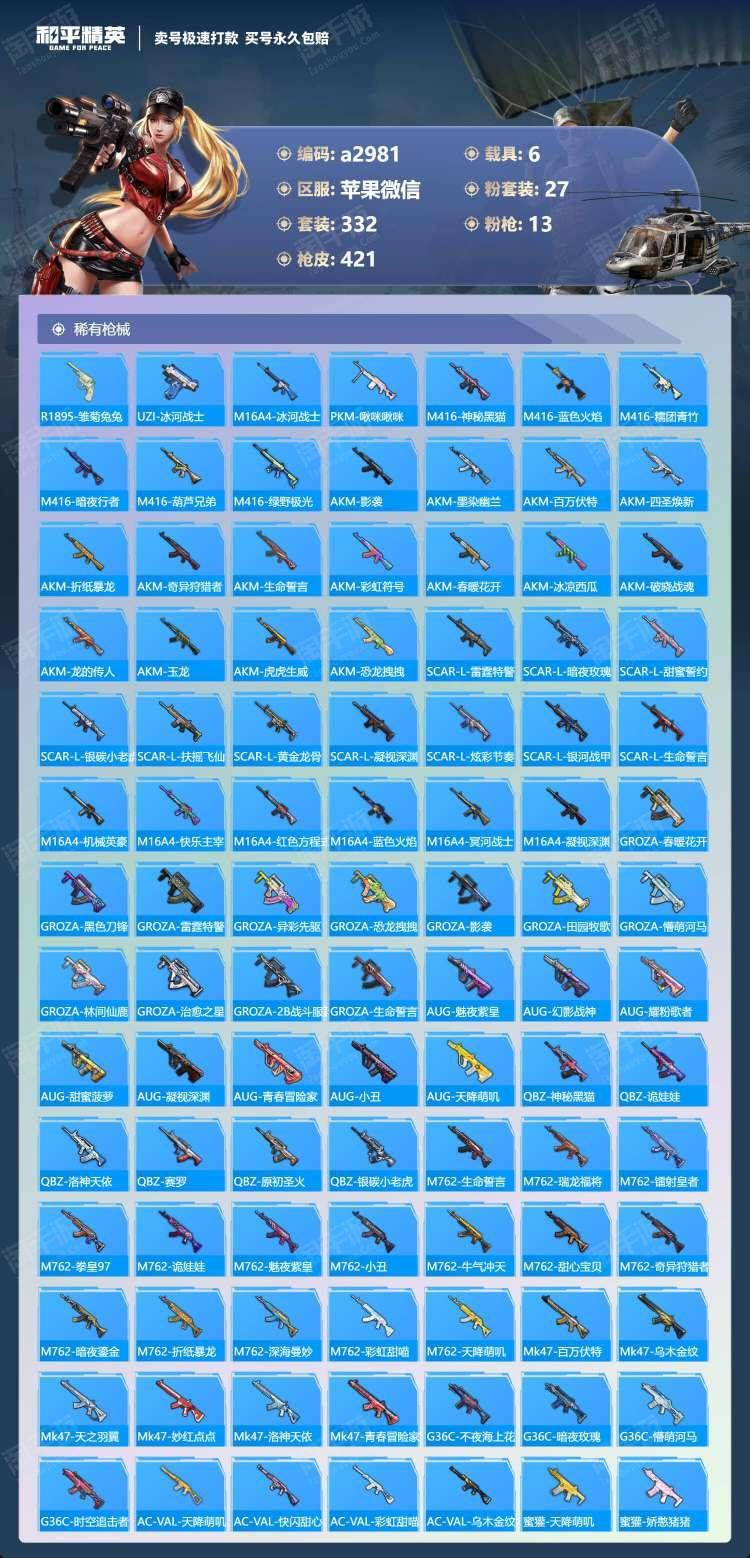 和平精英【苹果微信】a2981/苹果微/热门套装/满级迈凯伦/-28王牌印记-27粉装-13特效枪-6载具-16722