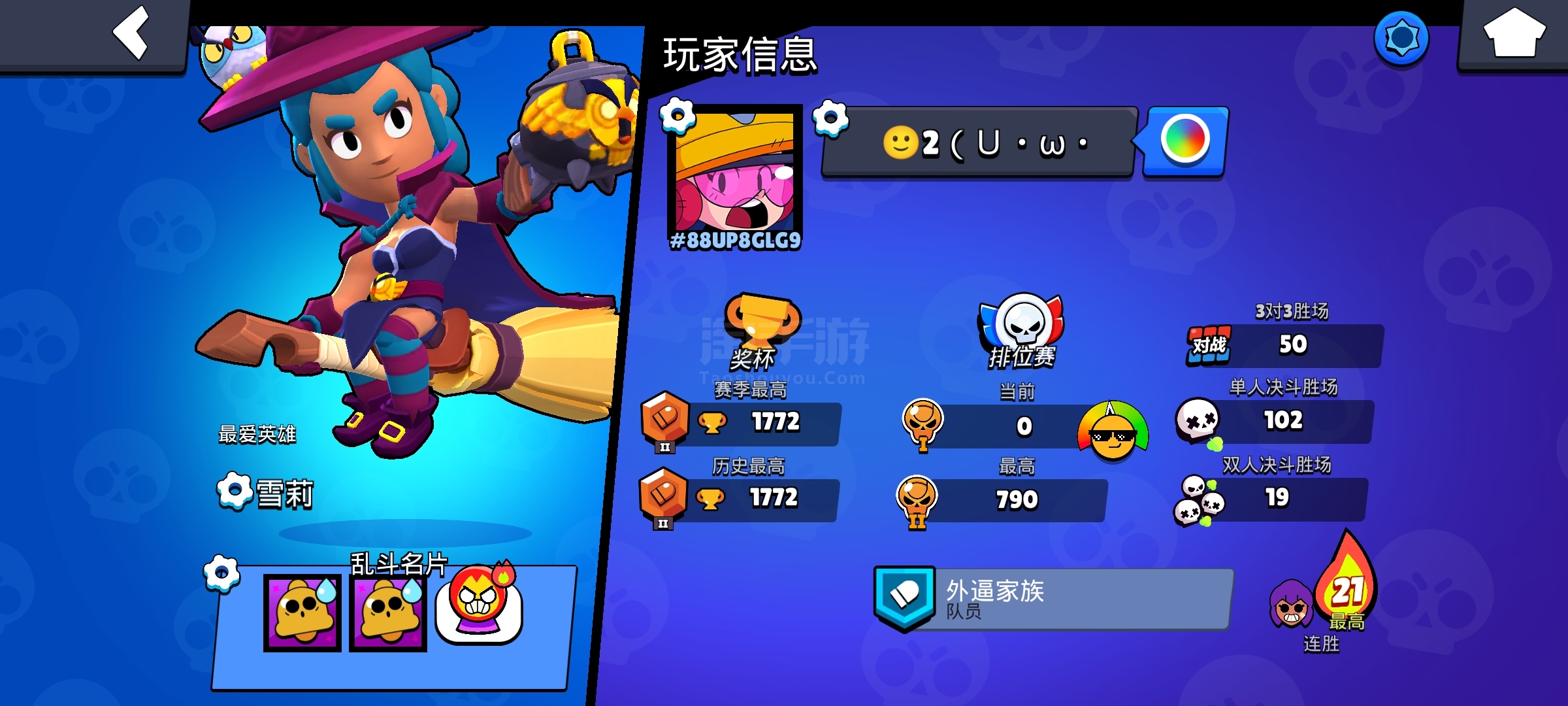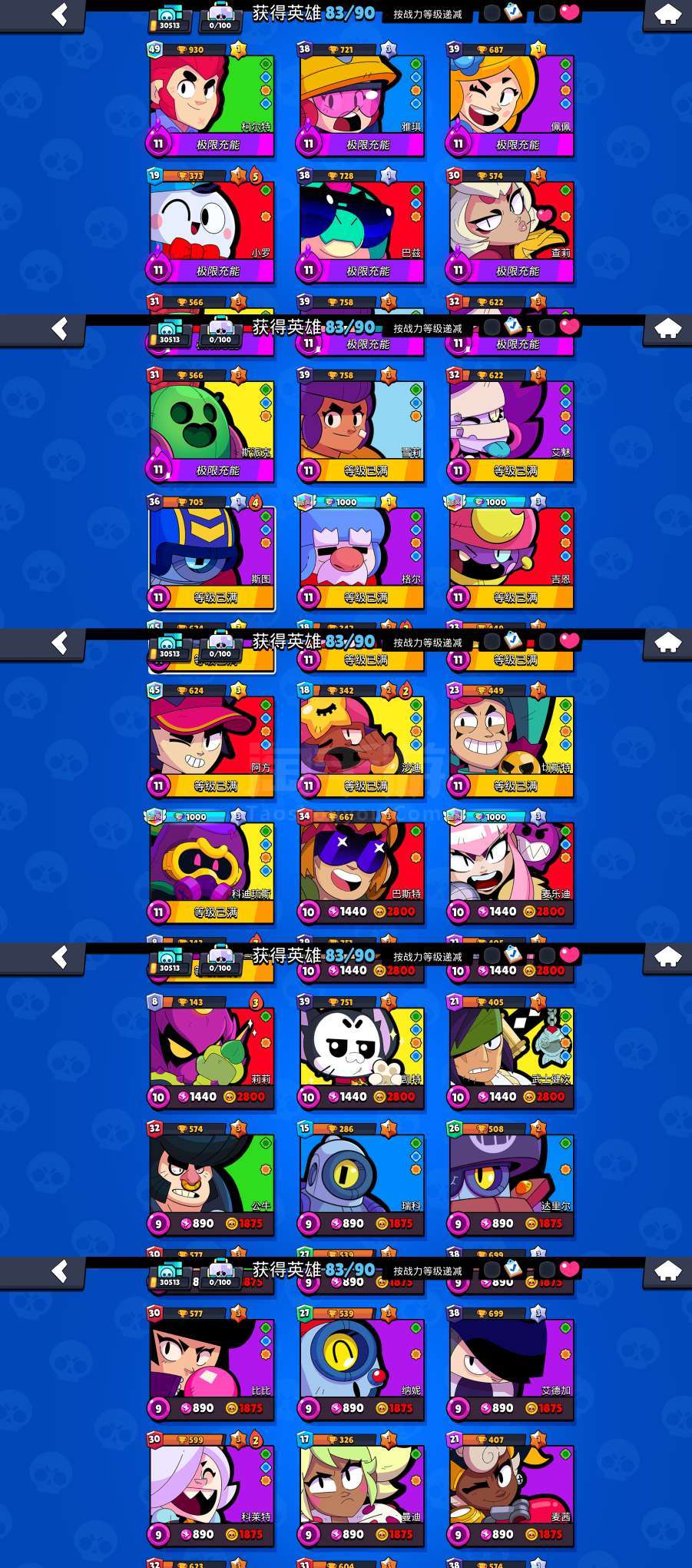 b荒野乱斗国际服3万杯83英雄✔16个11级✔22极限充能✔11个充能已解锁未启用✔140皮肤✔可换