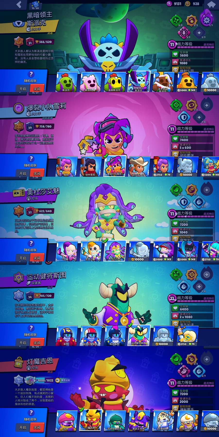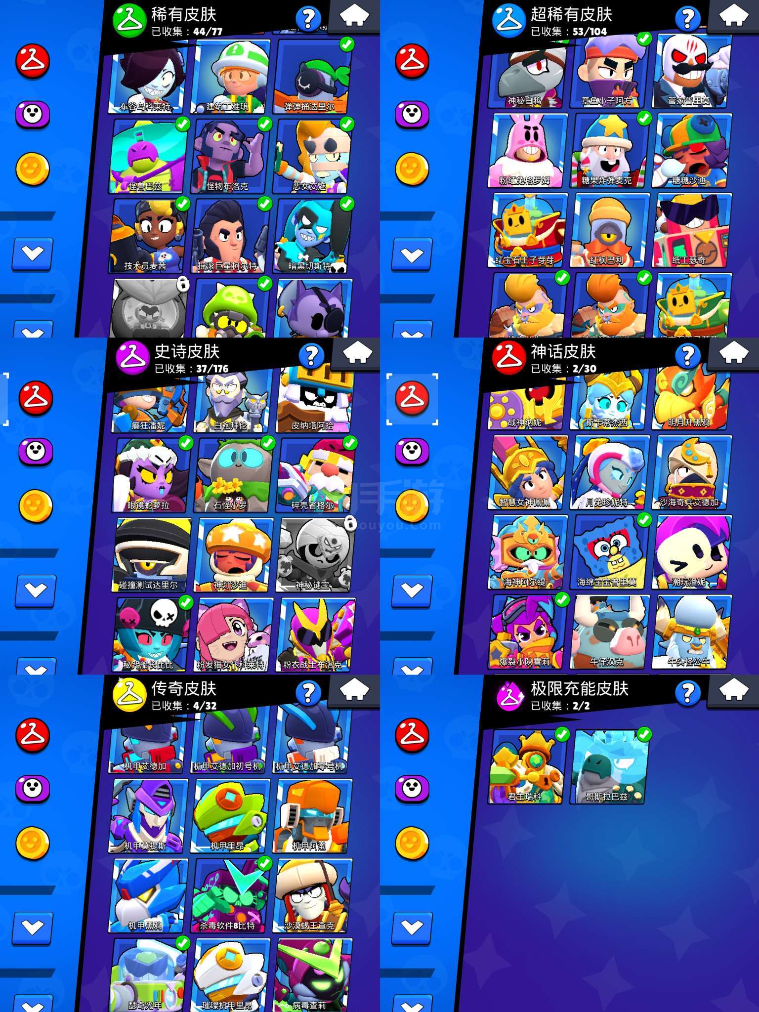荒野乱斗【安卓其他】荒野乱斗国际服3万杯83英雄✔16个11级✔22极限充能✔11个充能已解锁未启用✔140皮肤✔可换邮