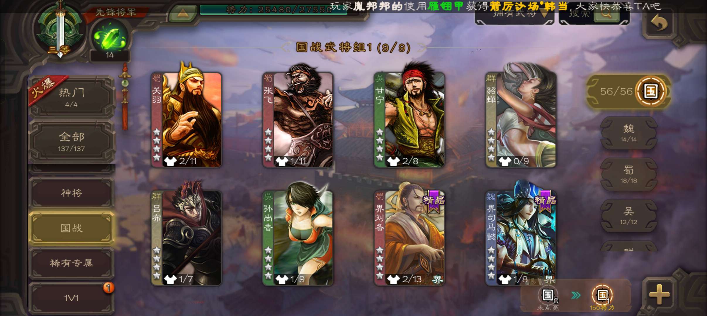 3史诗双神先锋,天工木鹿大王,界钟会沙摩柯谯周3史诗,神周瑜神吕蒙关银屏界曹植阮慧137将