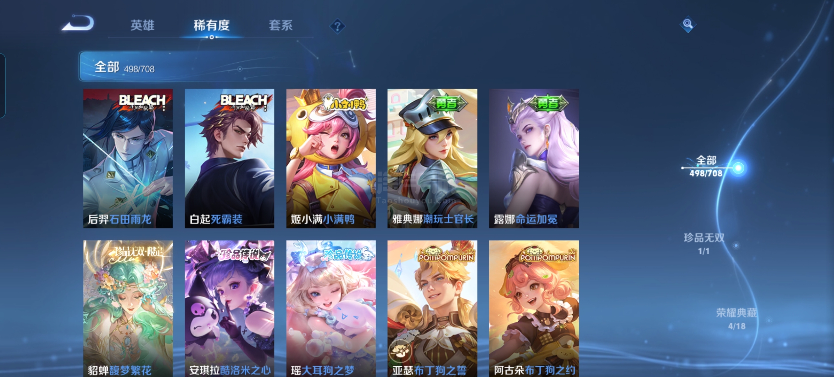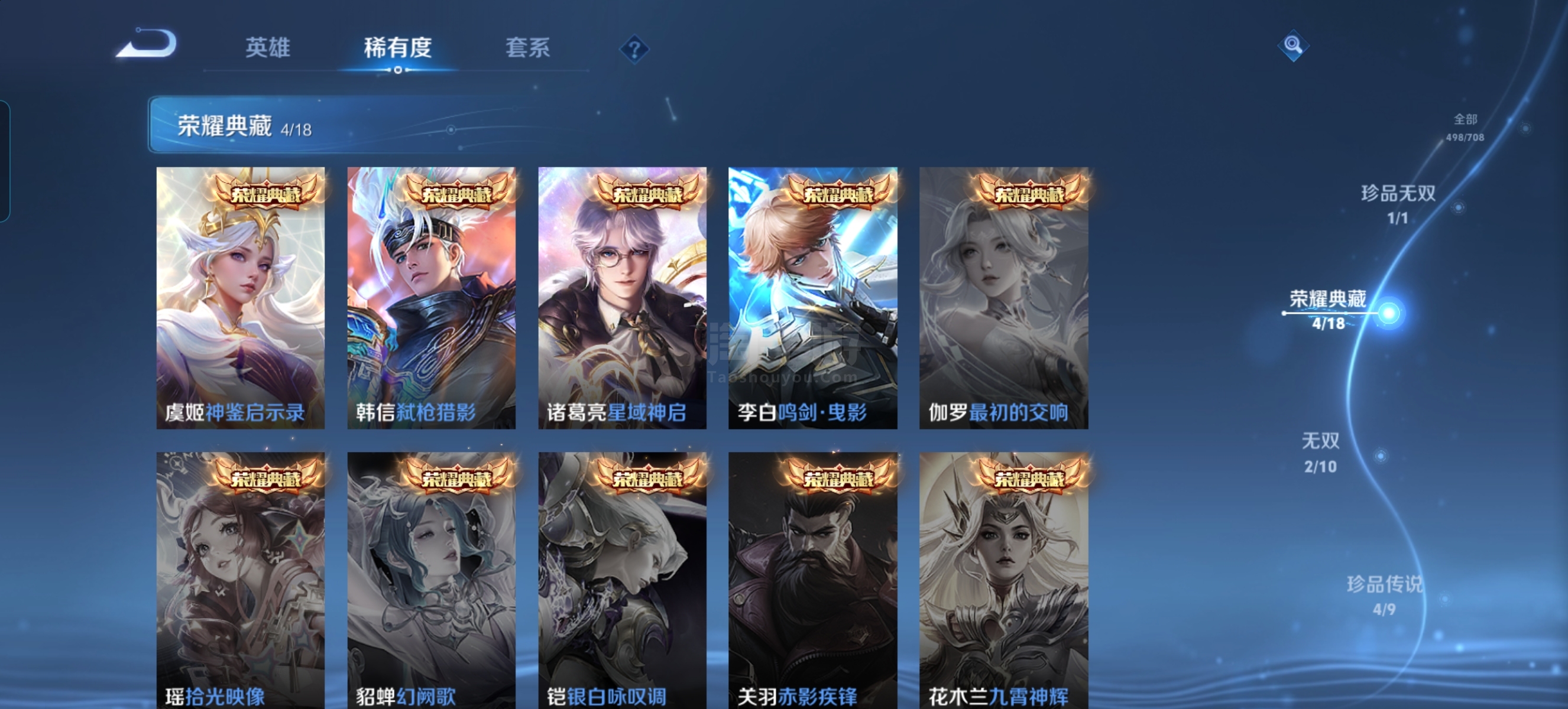 王者荣耀【安卓QQ】皮肤498,全英雄,有武则天,绝版皮肤有189个,传说皮45个,QQ钱包可二次,实名认证可二次