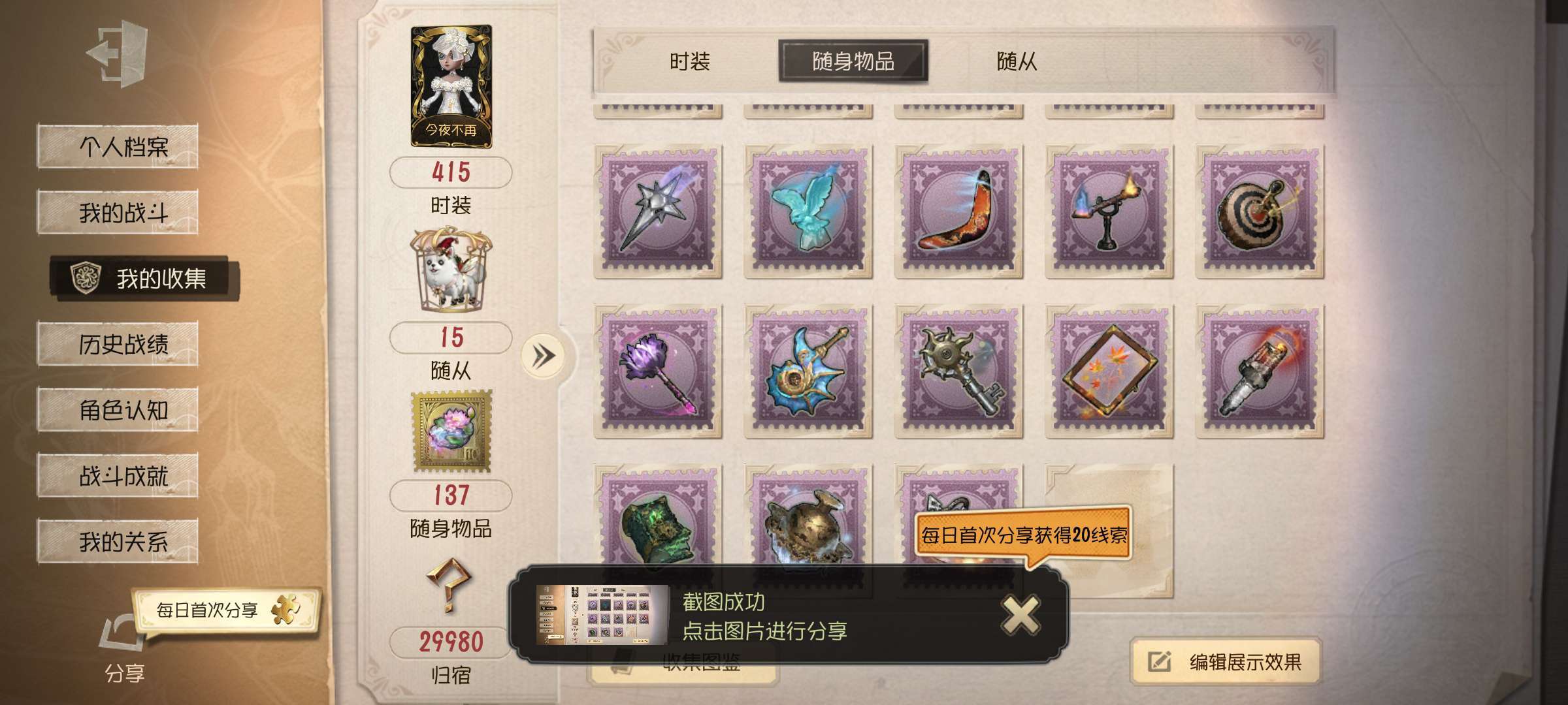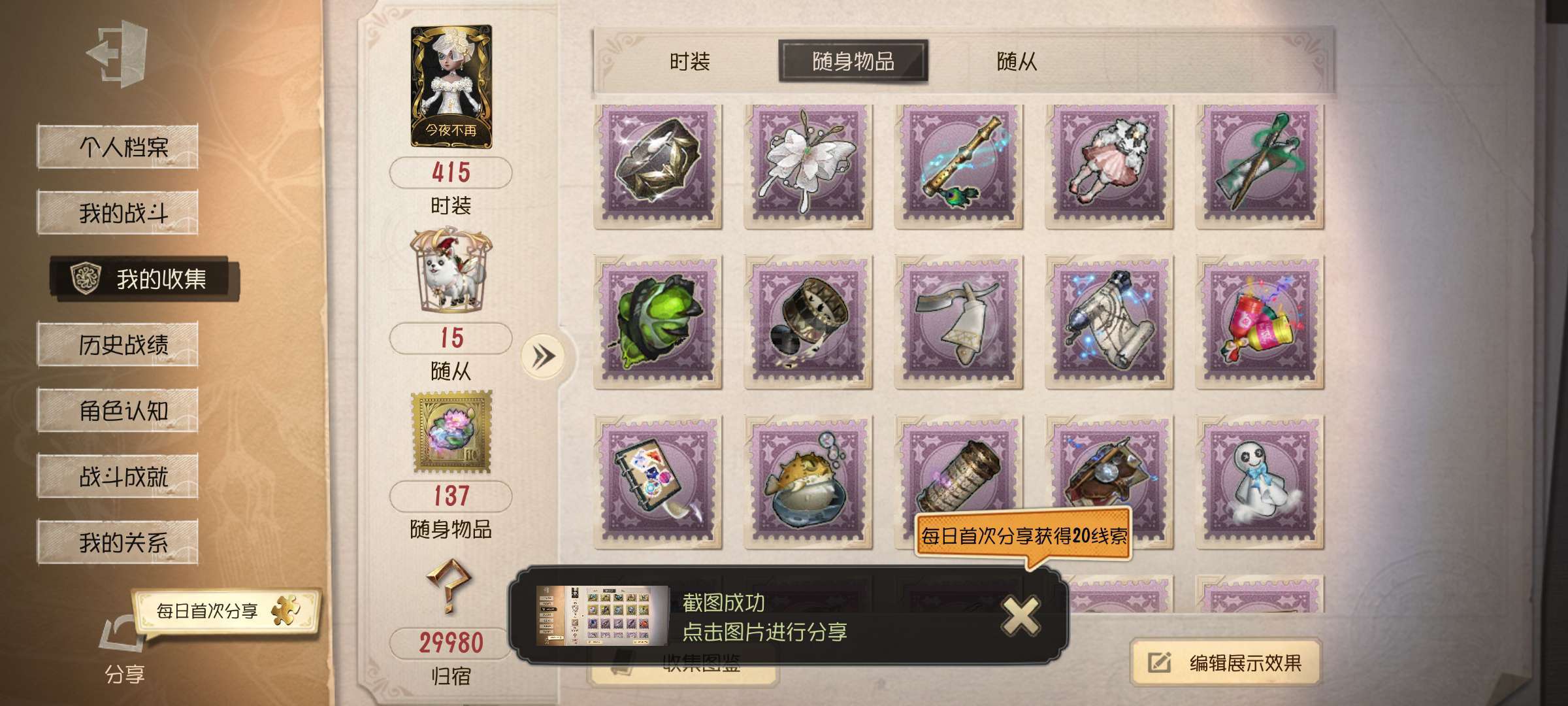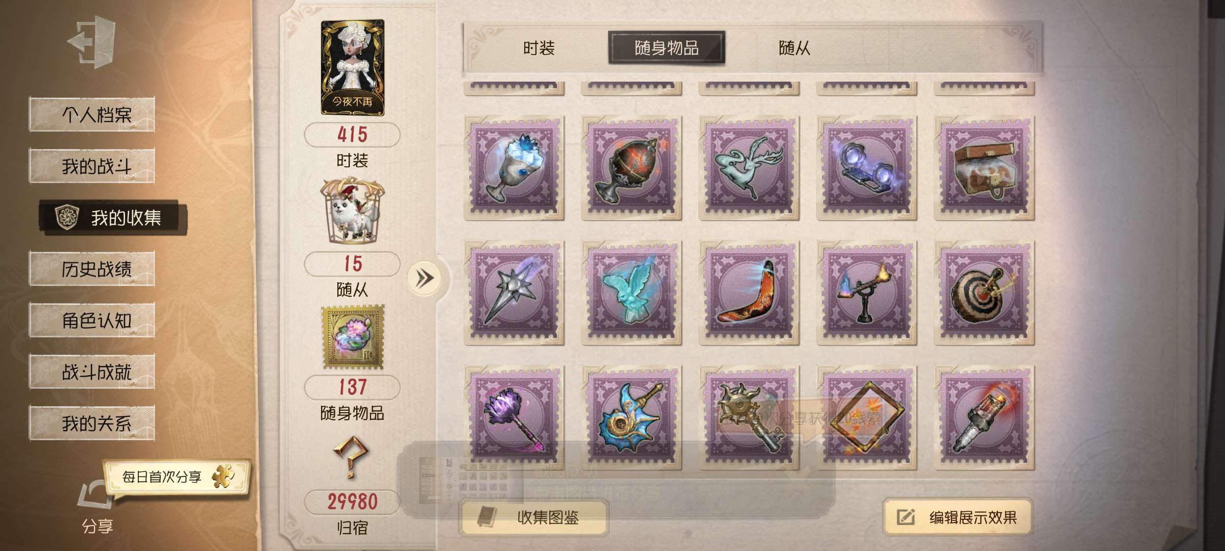 随身物品数量: