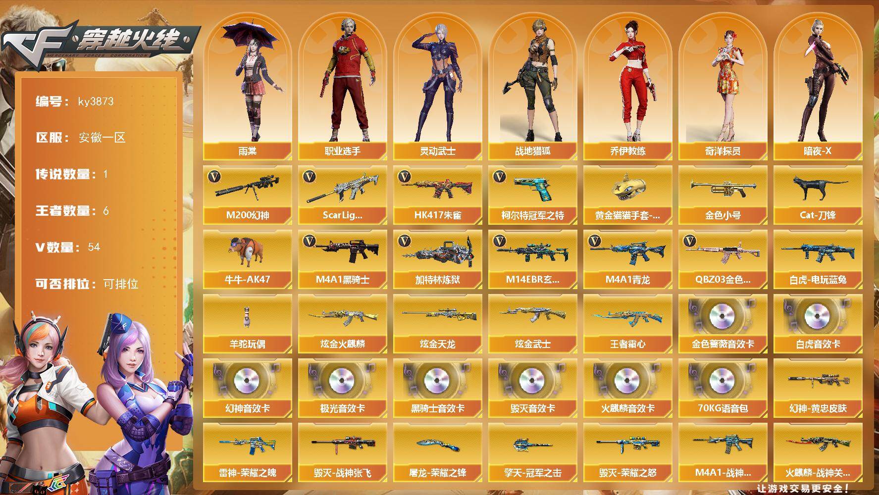 传说爱丽莎 幻神三件套 4皮肤 2音效卡 qbz+白鲨世冠皮肤 王者白虎 屠龙2皮肤 AG世冠 星火燎原 冠军之刃 蝴蝶刀 王者cop 毁灭荣耀加音效 王者白虎 双字id